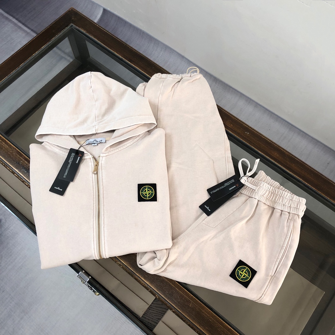 Stone Island 2025 early autumn hoodie & straight-leg pants set. Premium washed fabric, custom fit, embroidered logo. Vintage fade, comfortable breathable Italian material. Sizes: S-XXL.