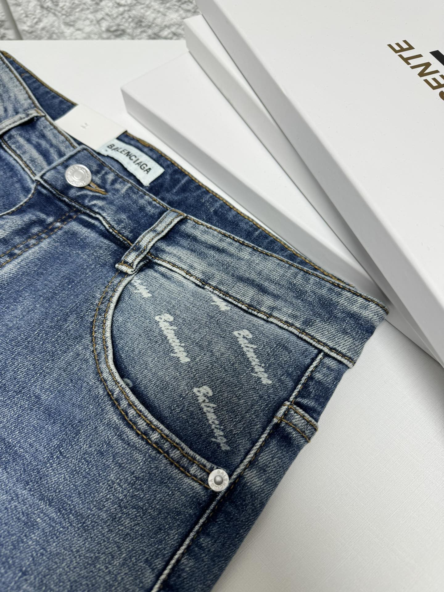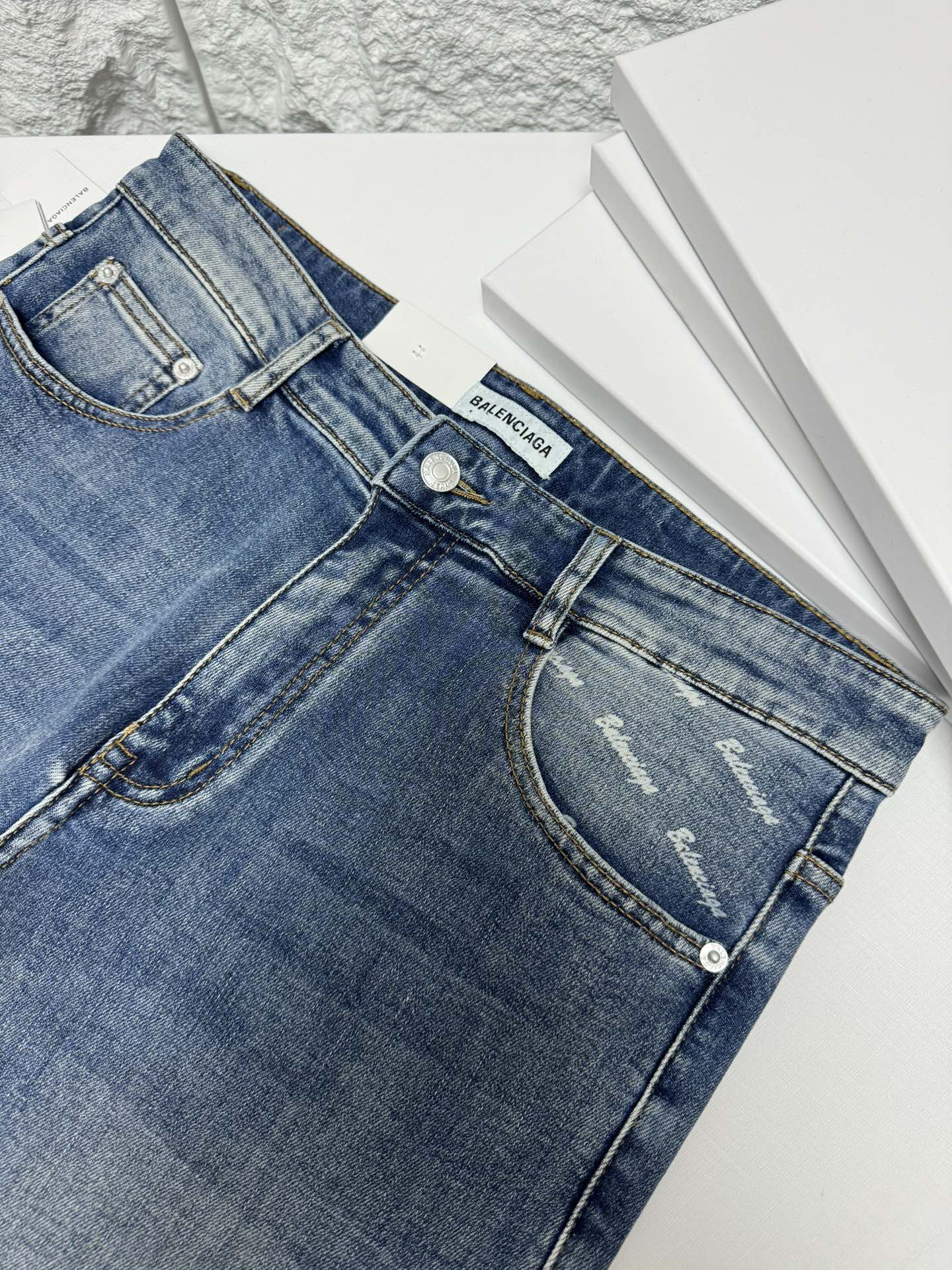 Balenciaga men's straight-leg jeans. Classic, elegant, comfortable & breathable. Retro style with subtle print logo. Sizes 30-38.