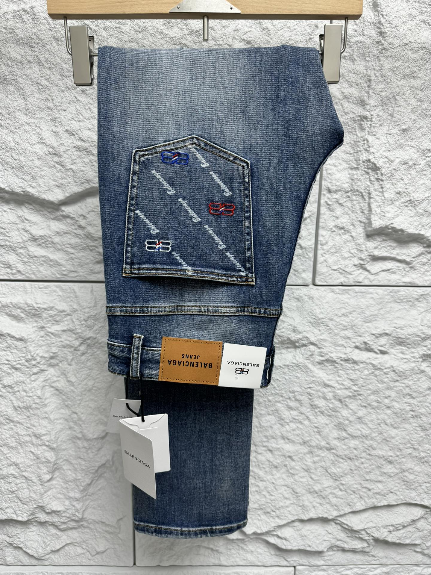 Balenciaga men's straight-leg jeans. Classic, elegant, comfortable & breathable. High-end design with a retro feel. Perfect for urban commuters. Sizes: 30-38.