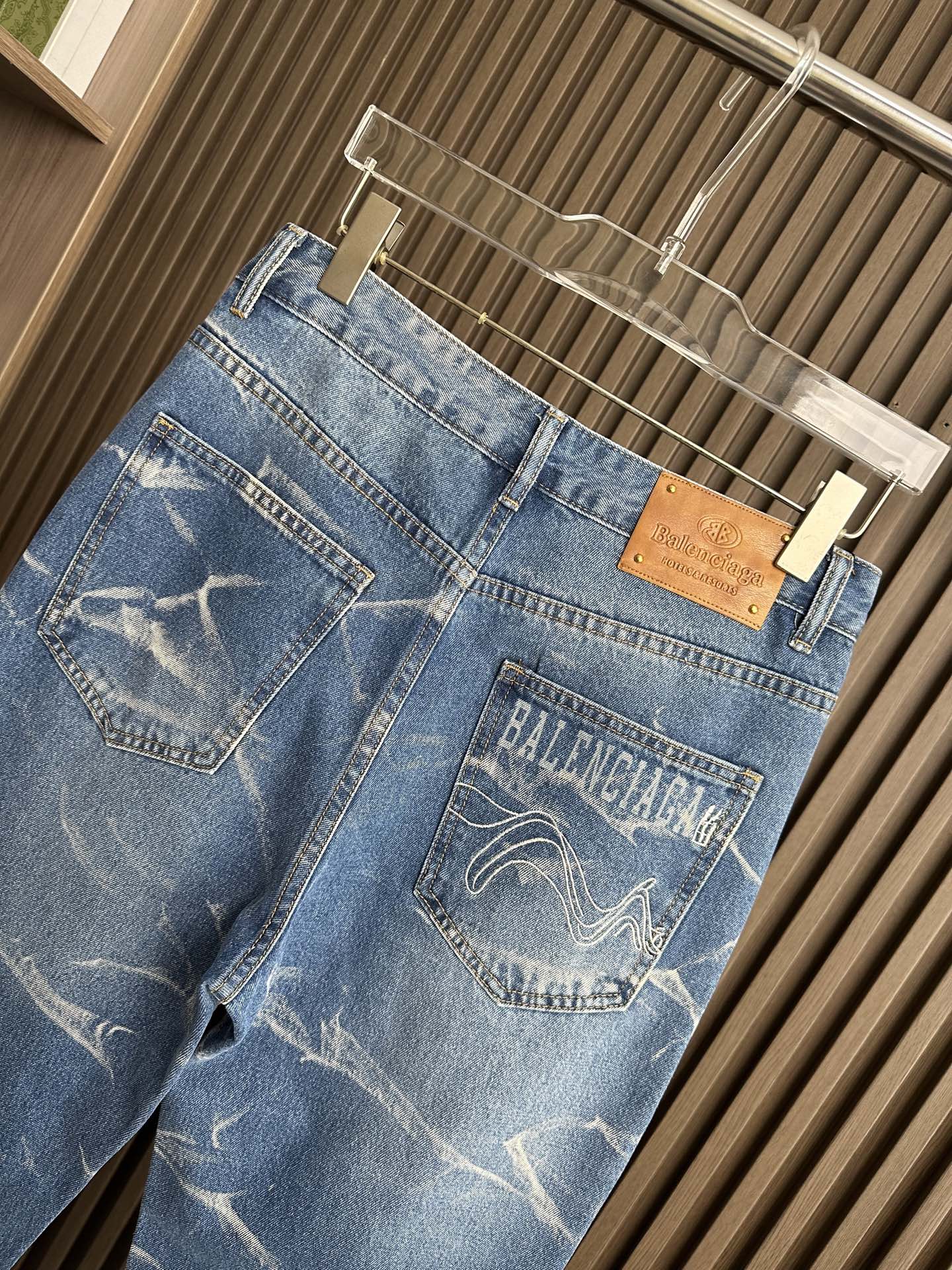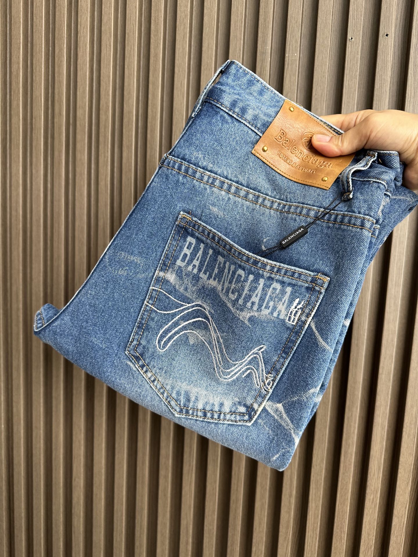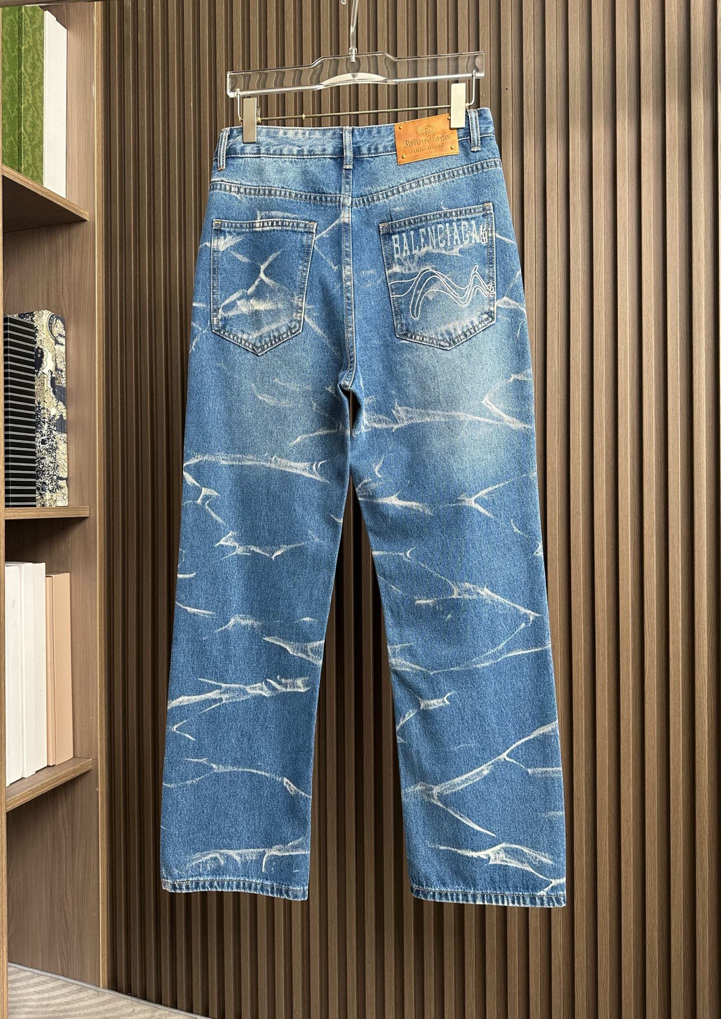 Balenciaga 25SS wide-leg jeans. Made with premium Japanese denim, eco-friendly enzyme wash for soft texture & retro hue. Perfect fit, versatile styling. Sizes: 29-38 (excl. 35, 37).