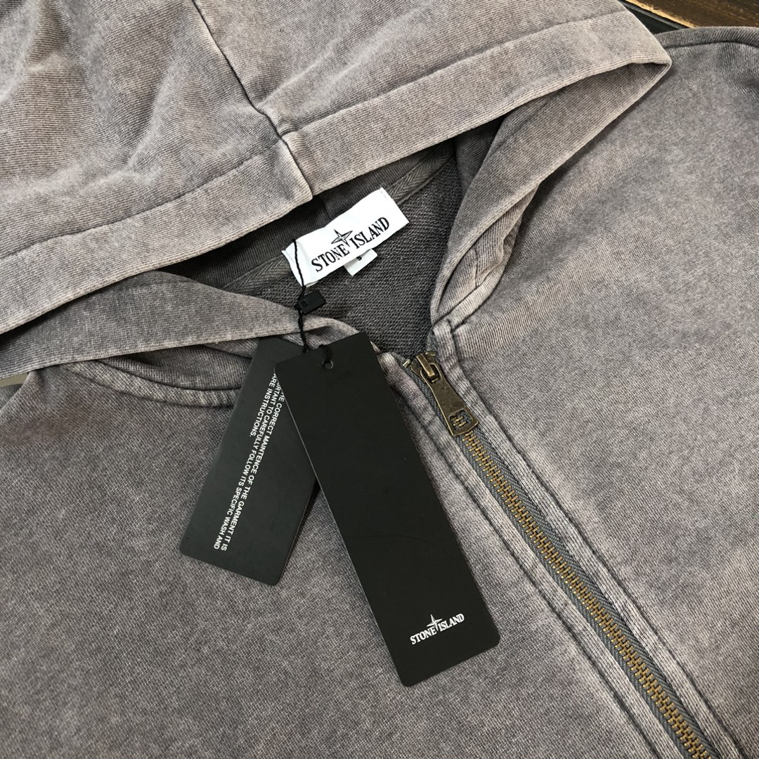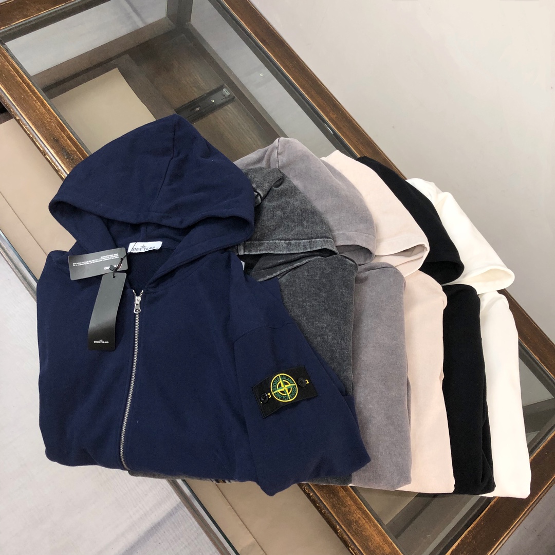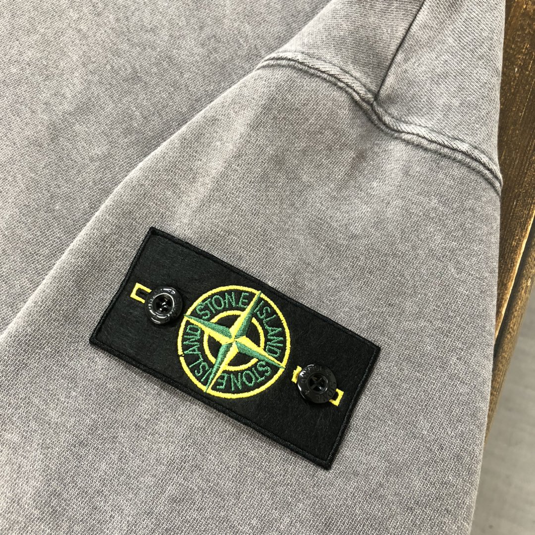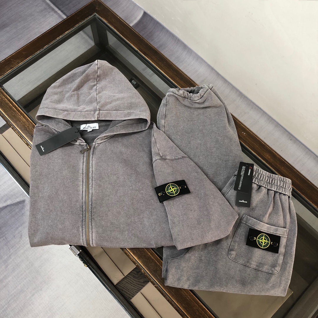 Stone Island 2025 early autumn couple's washed hoodie & straight-leg pants set. Top quality, custom fabric, 3D cut, iconic logo. Vintage wash, soft breathable. Sizes S-XXL.