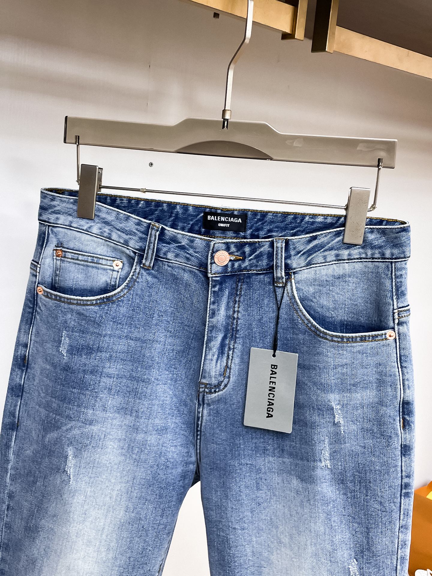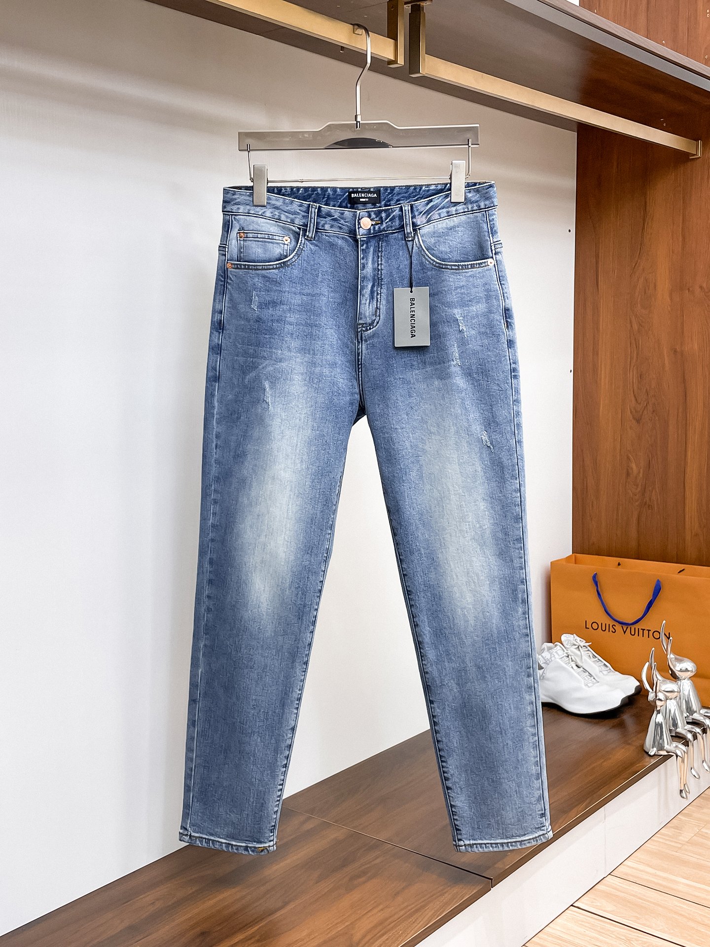 Balenciaga autumn-winter distressed jeans. High-quality replica with custom hardware, embroidery, soft denim. Slim fit, comfortable. Sizes S-XL.