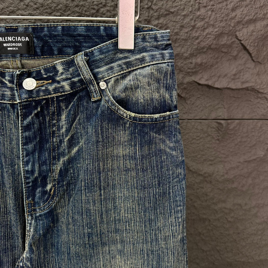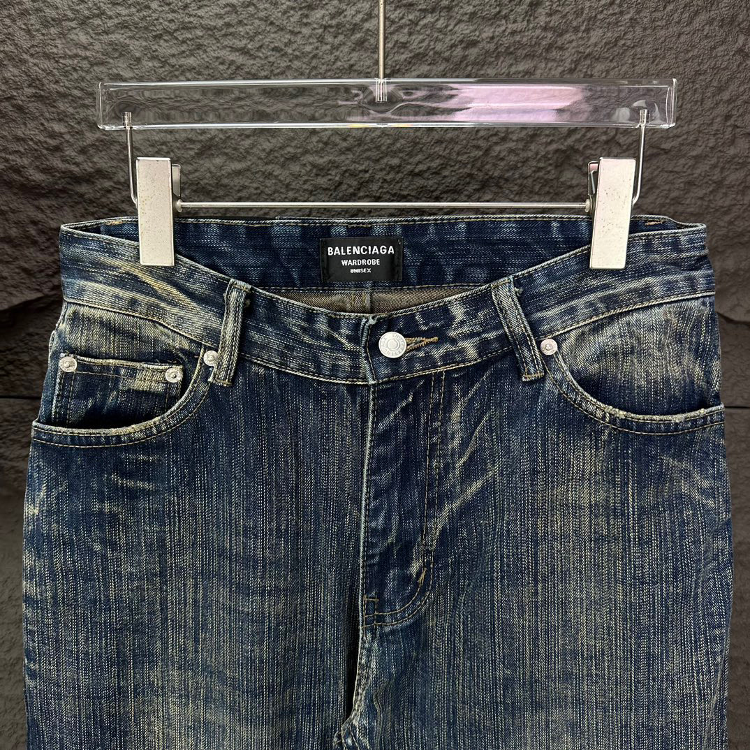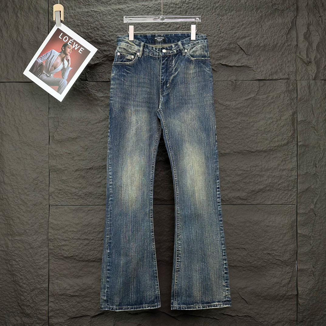 Balenciaga 2025 washed distressed bamboo couples bootcut jeans. High-quality version, flattering loose fit. Comes with tags. Blue color, sizes S-XL (28-34).
