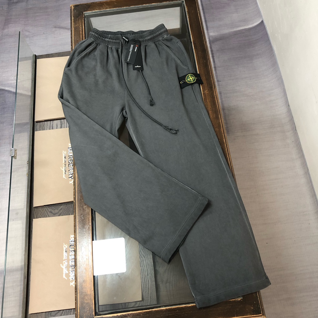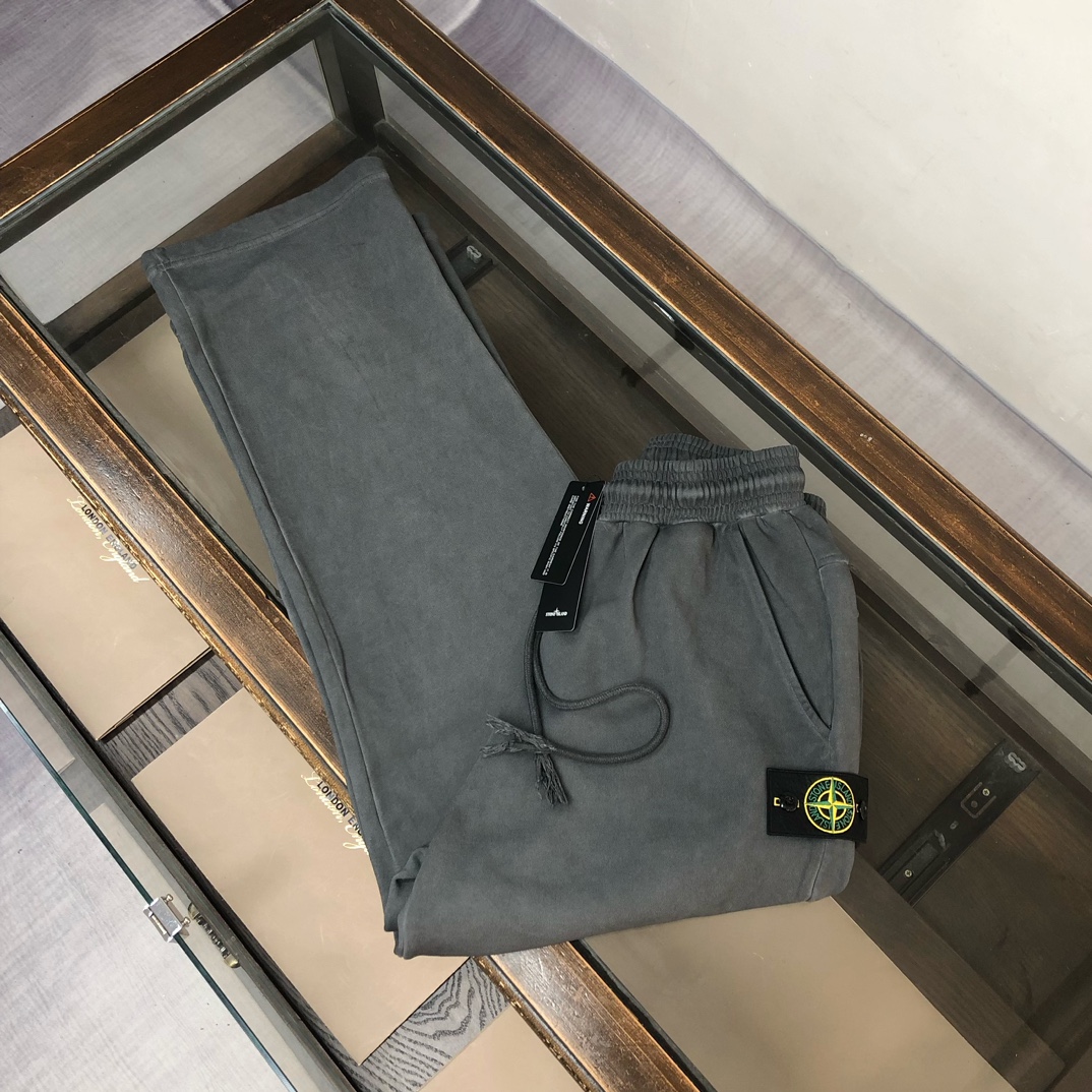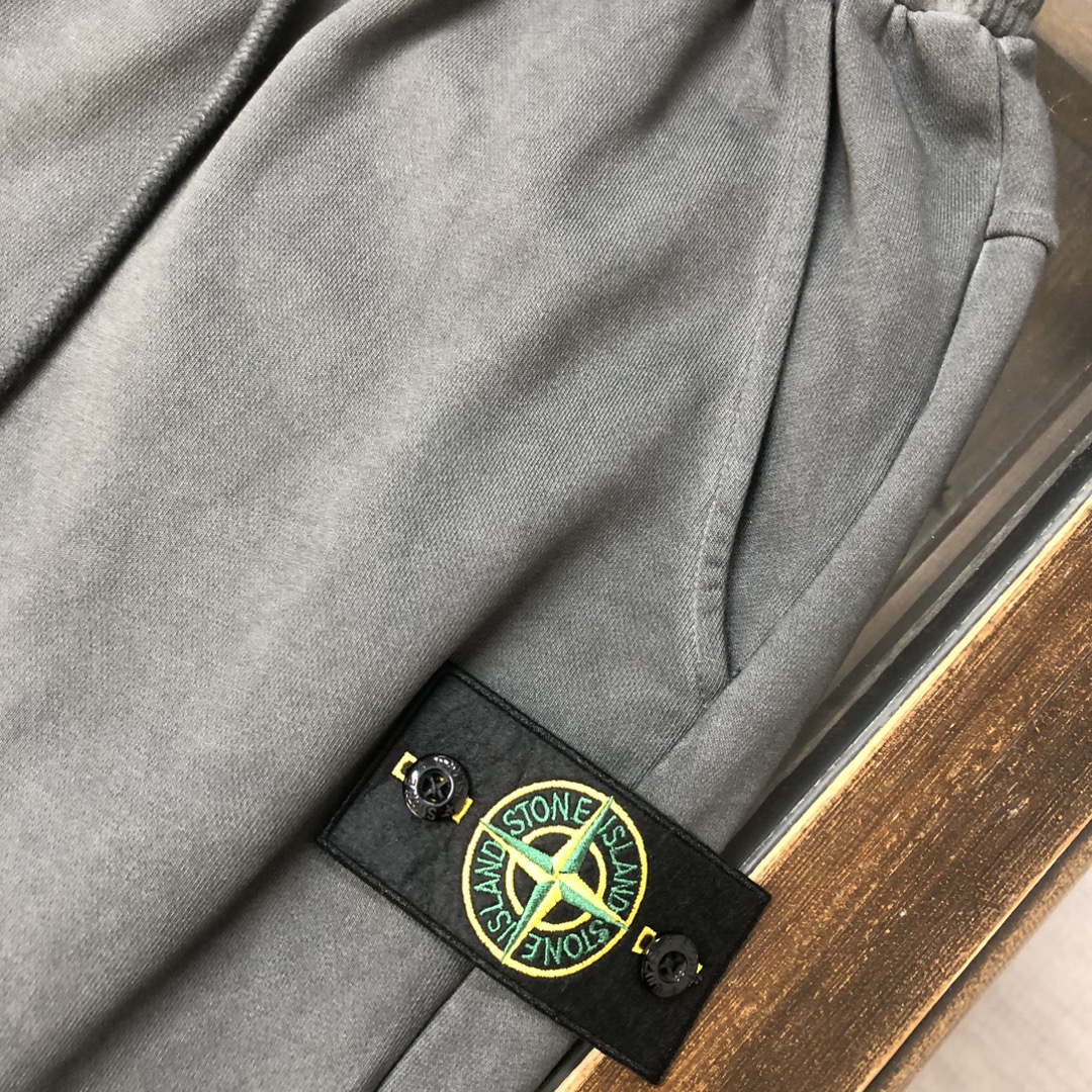 Stone Island 2025 early autumn unisex heavyweight washed hoodie & straight-leg pants set. Custom 420g cotton, relaxed fit. Sizes S/M/L/XL.