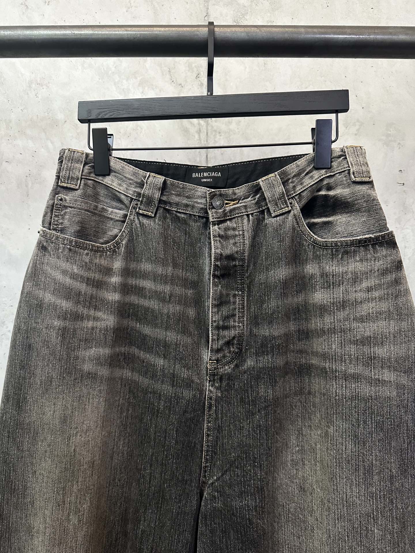 Balenciaga 25SS limited edition jeans. Japanese 13.5oz cotton denim, washed for vintage fade. Soft yet structured, comfortable, durable, unisex. Color: Distressed Black. Sizes: XS S M L.