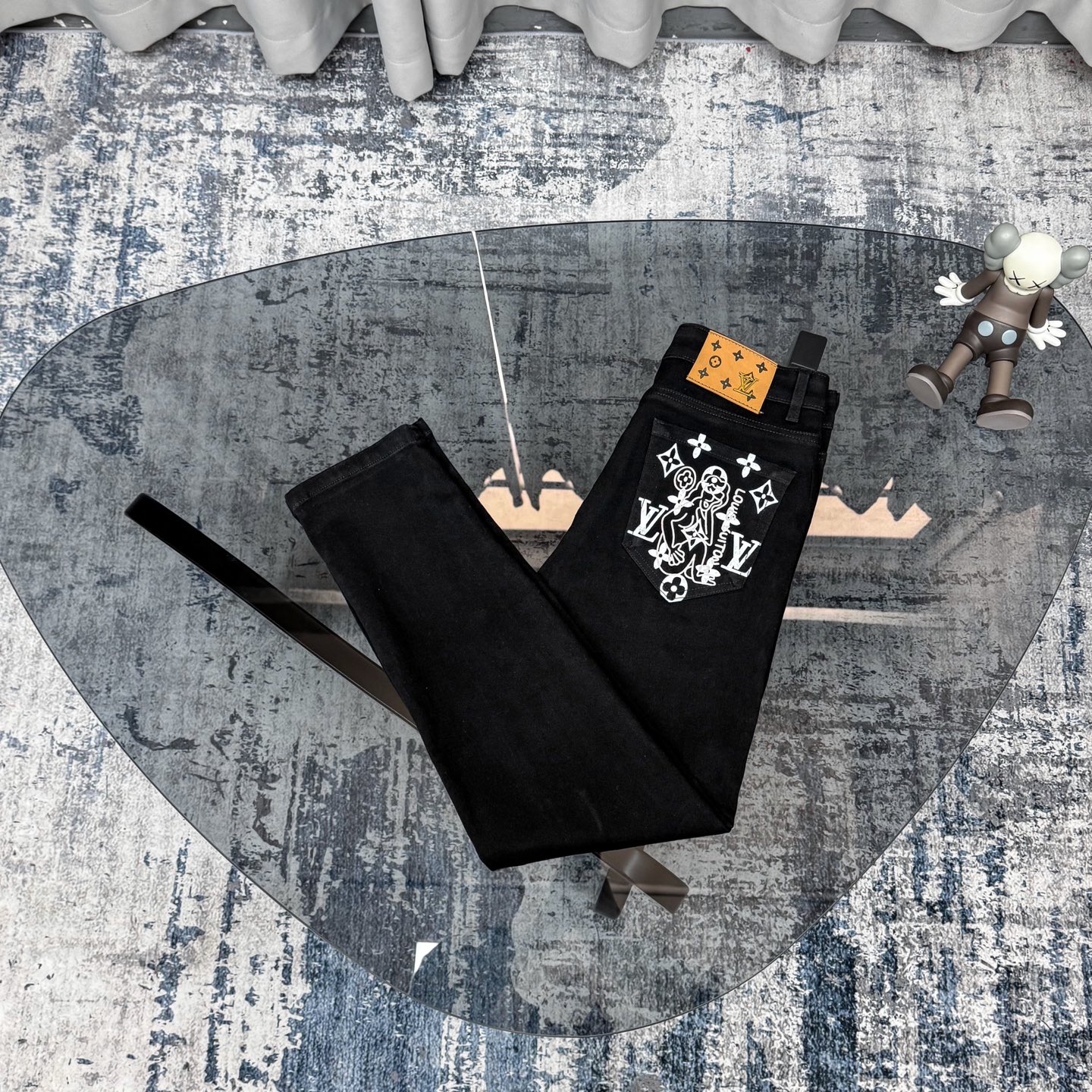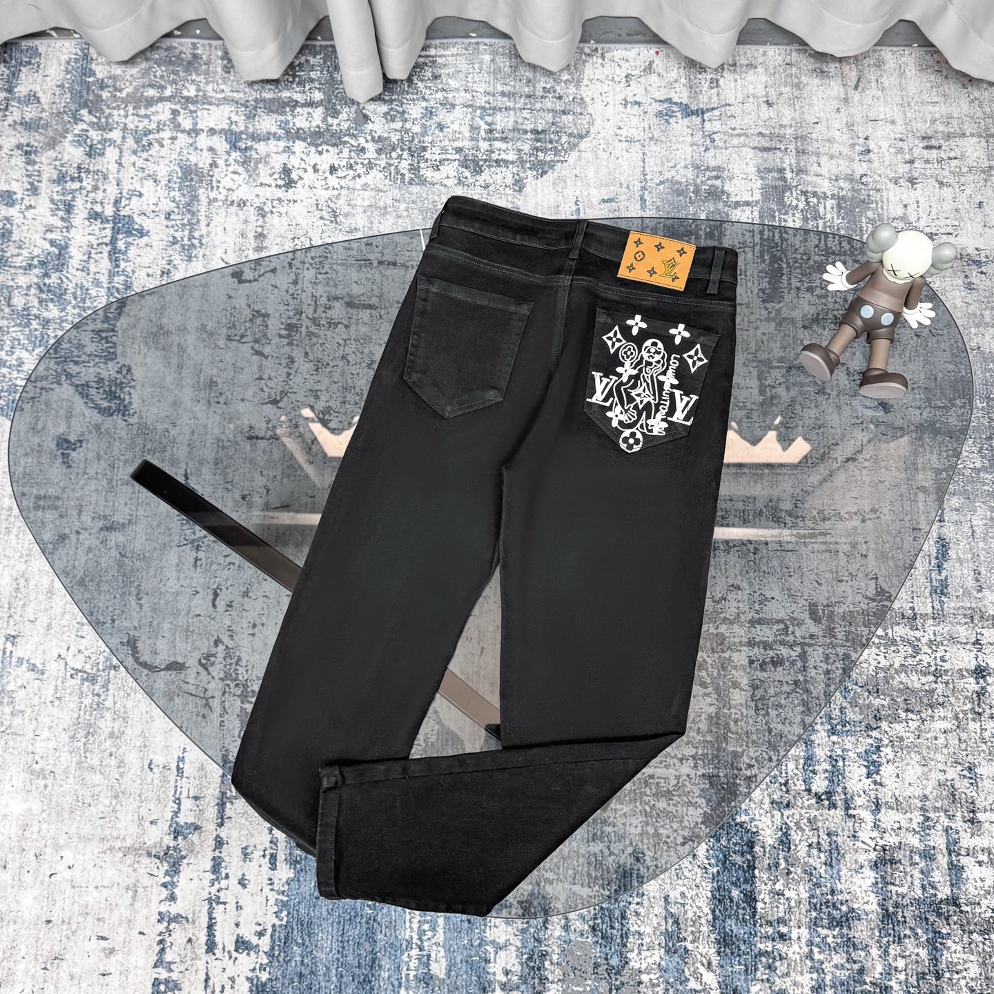 Louis Vuitton 25ss LV print slim jeans. Washed black stretch denim, custom buttons, many details. Sizes 30-36 (M-XXL).