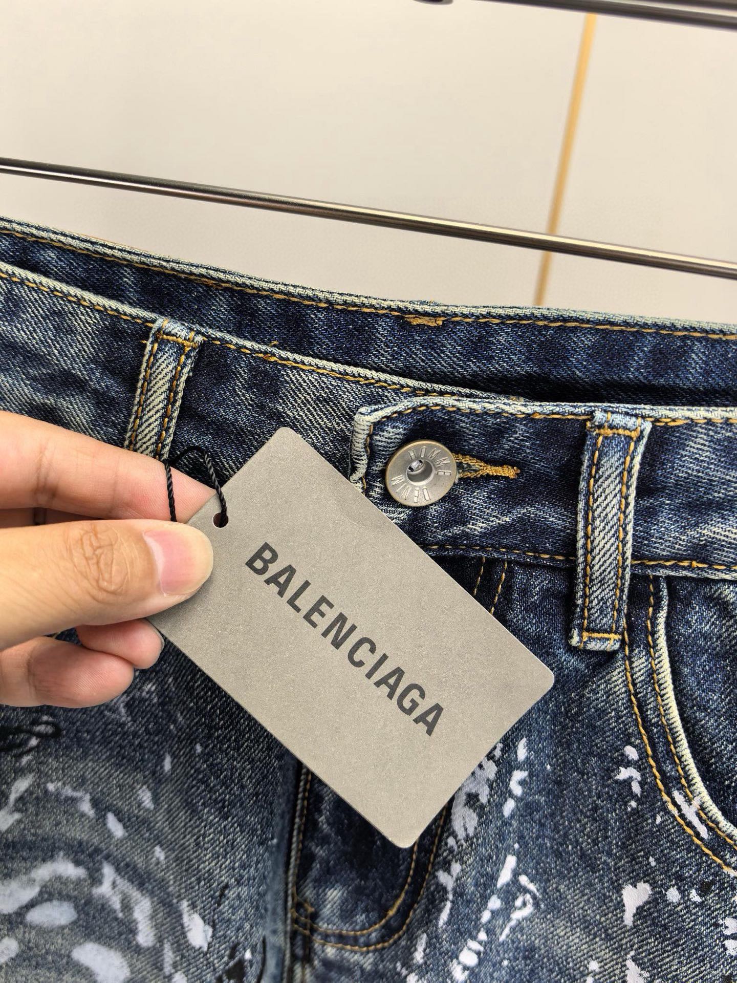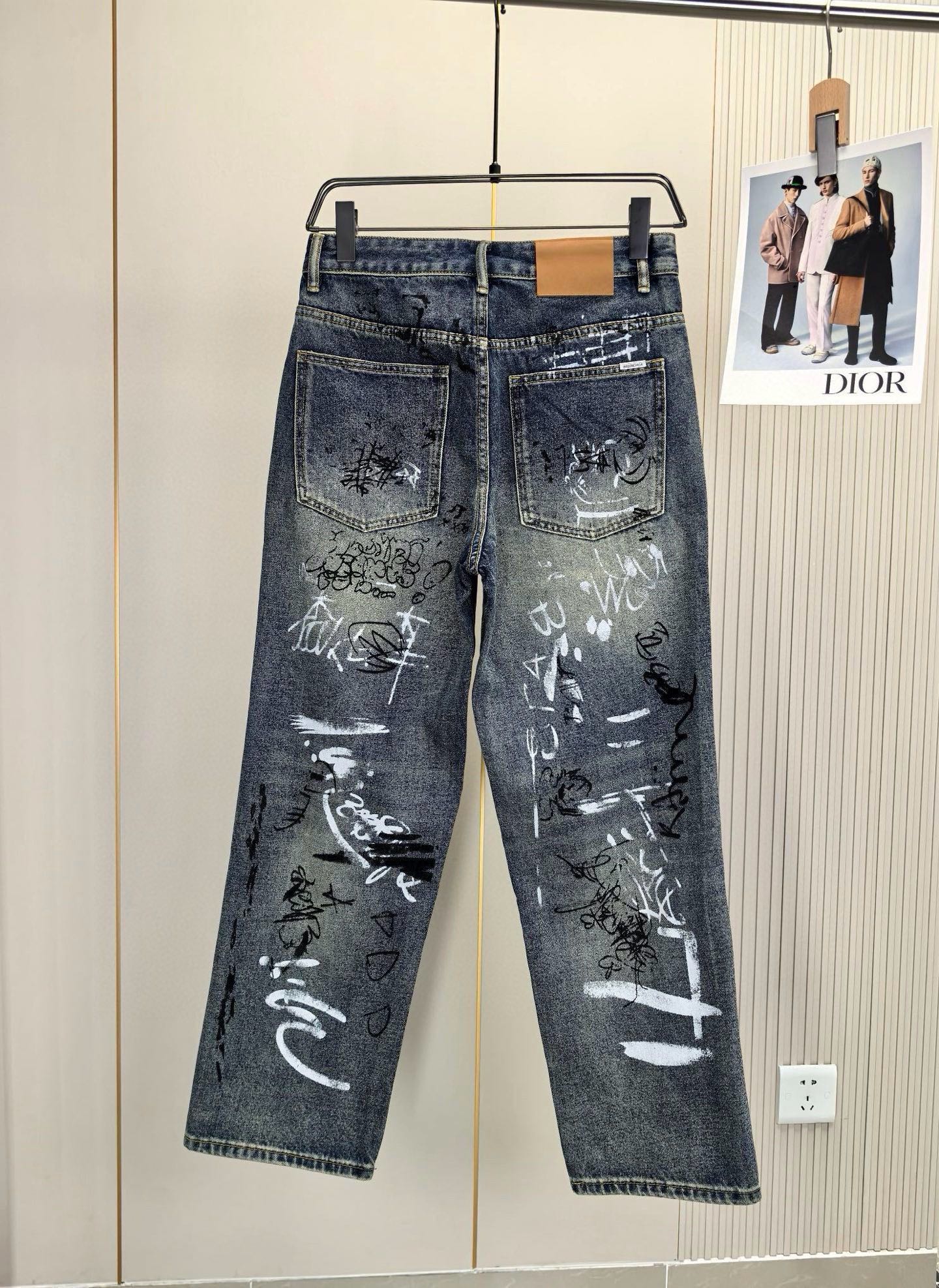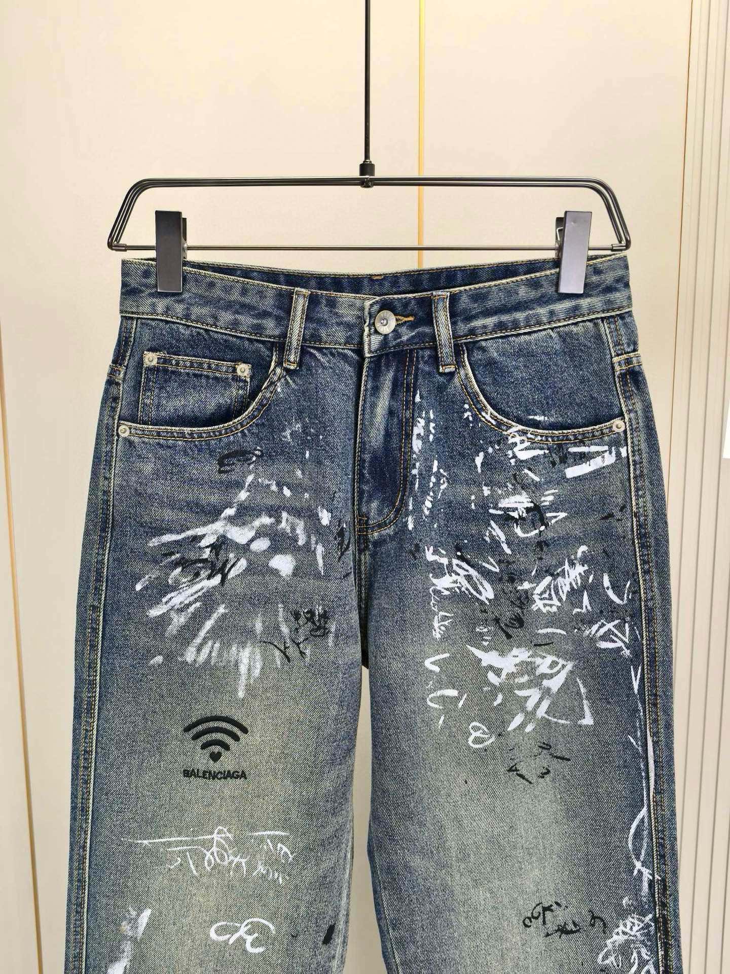 Balenciaga 2025 Autumn/Winter embroidered men's jeans. Wide-leg, custom soft denim, premium hardware. Sizes 28-40.