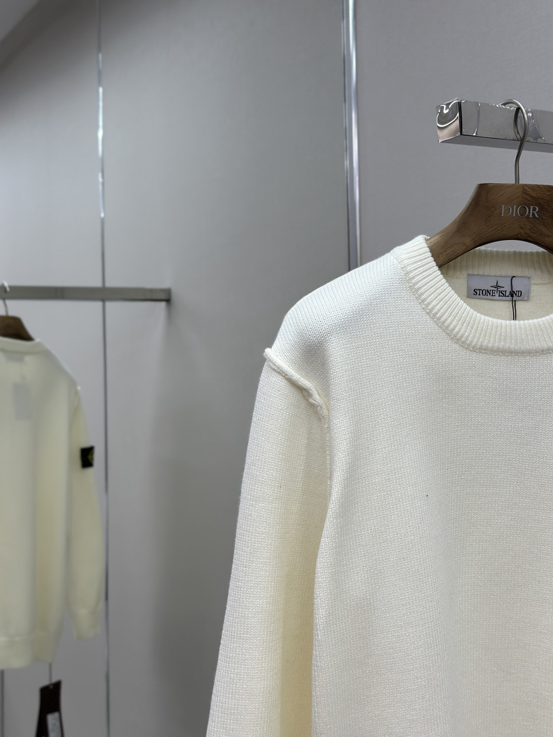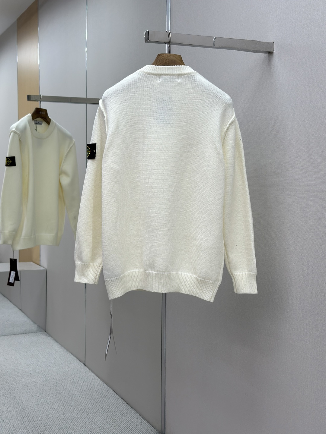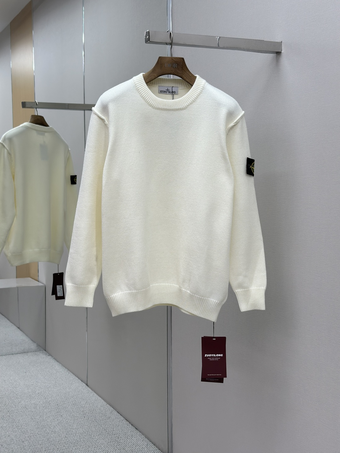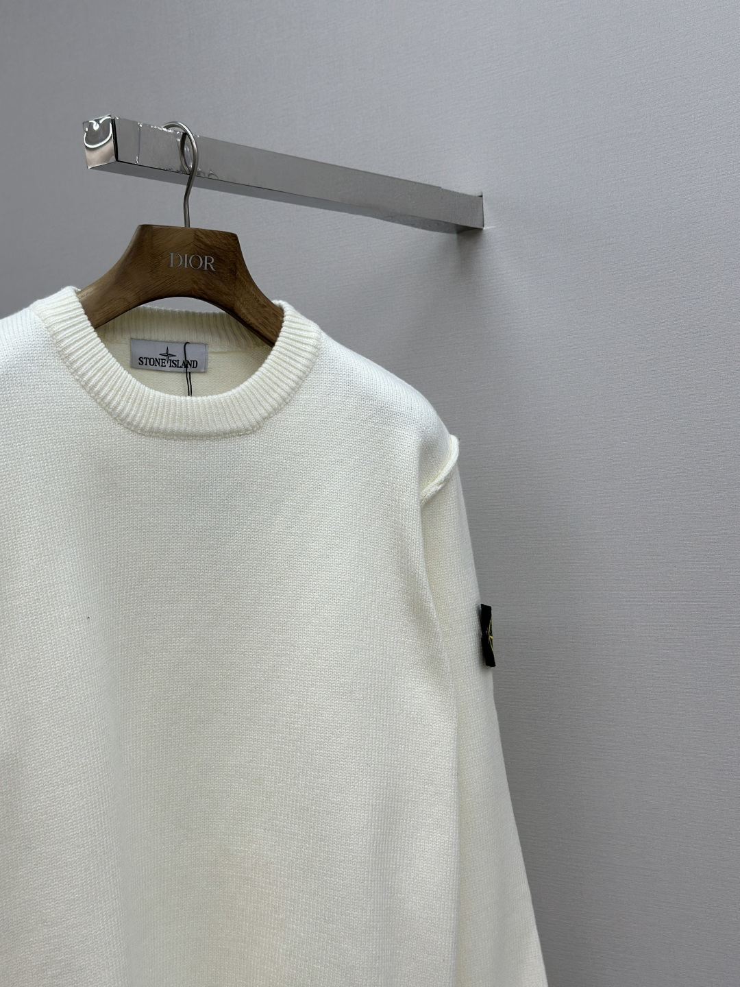 Stone Island 25FW round-neck sweater. Soft, warm, with iconic logo. Versatile round neck, durable knit. Double-sided design. Quality checked. Sizes: S/M/L/XL.