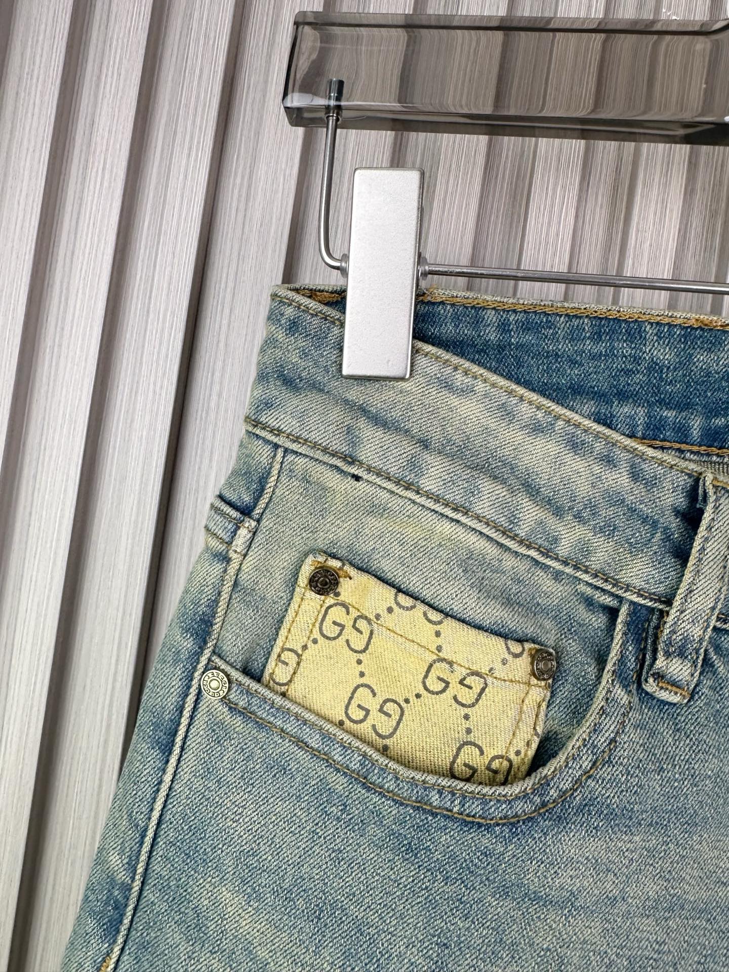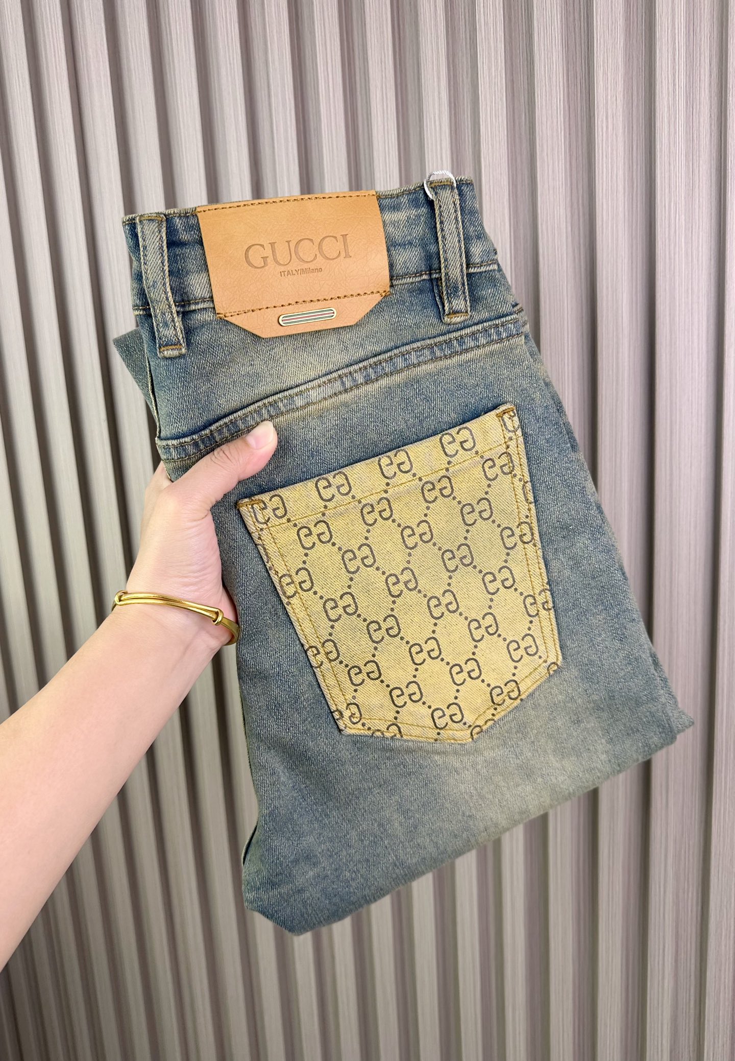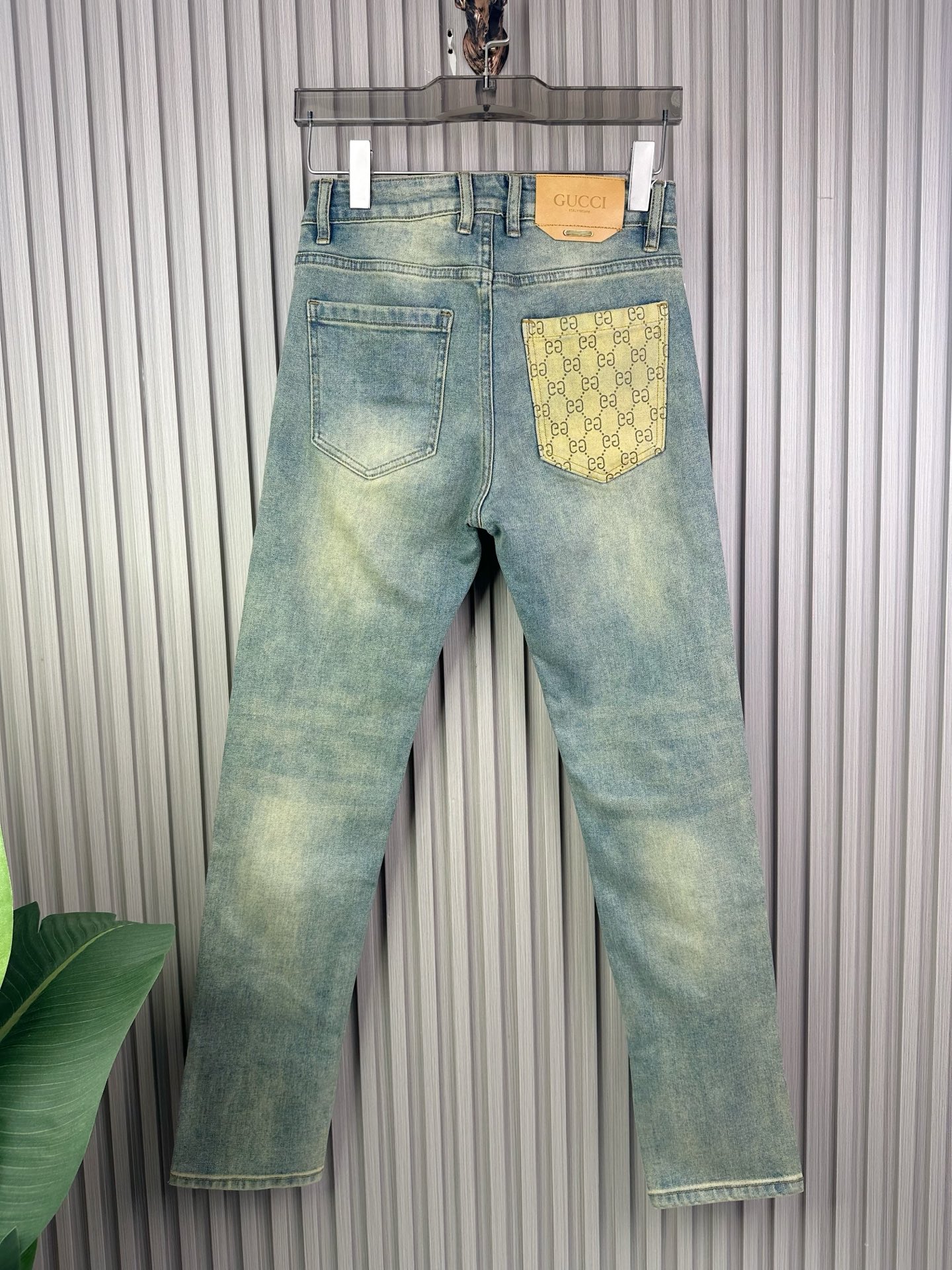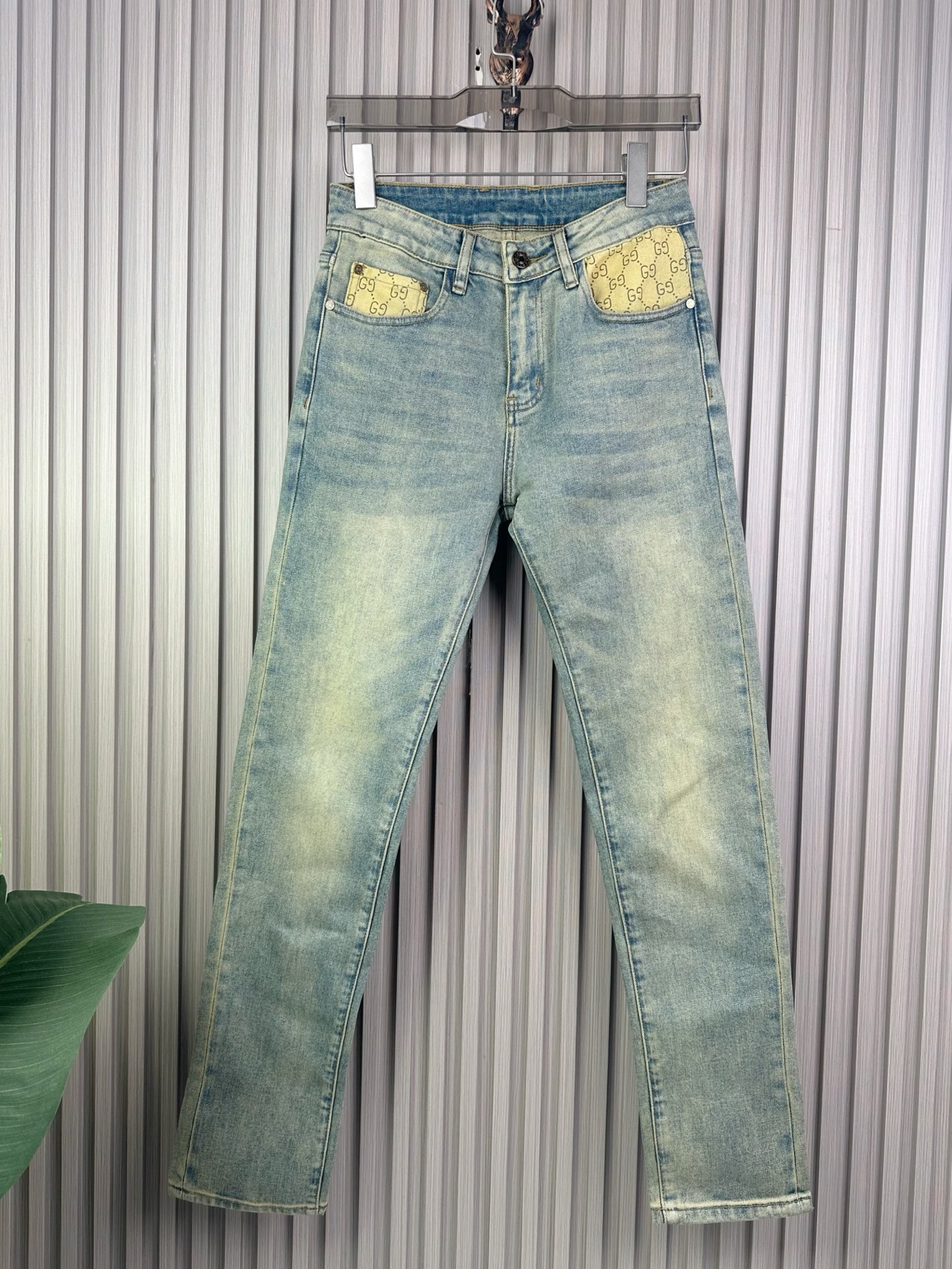 GUCCI classic jeans, slim fit stretch pants, comfortable breathable fabric, trendy essential item. Sizes 28-38 available.