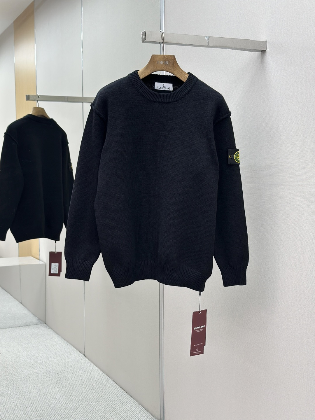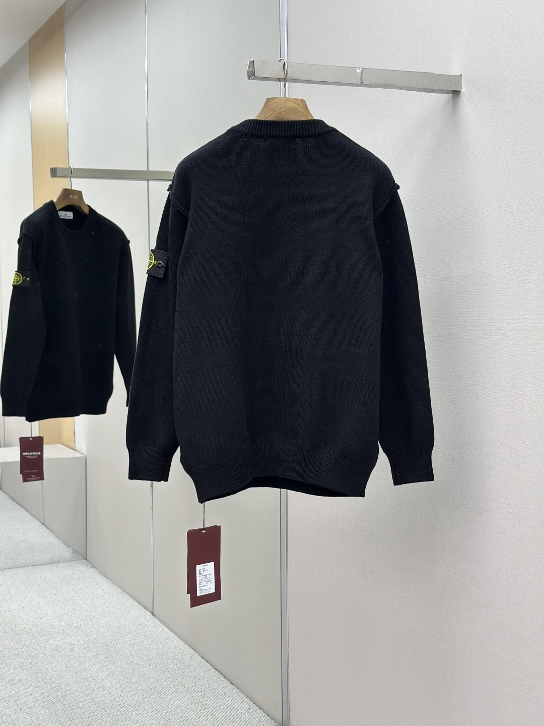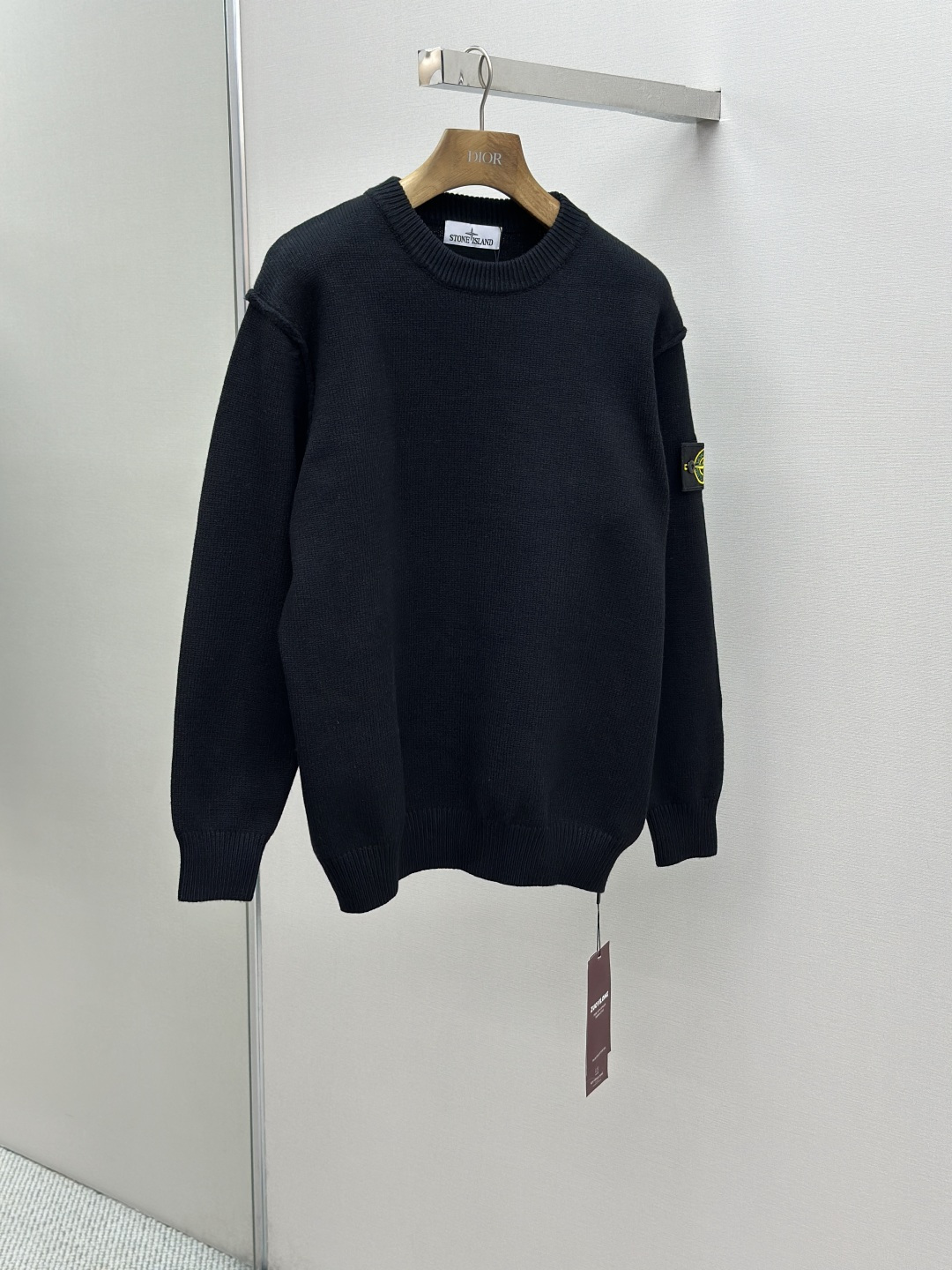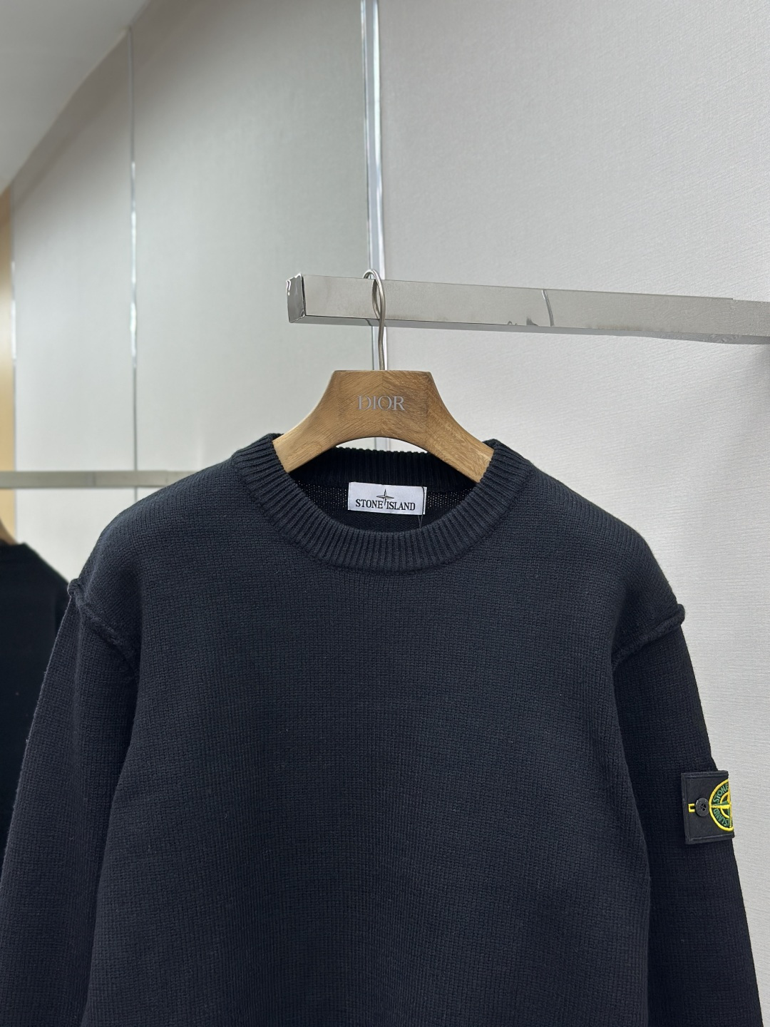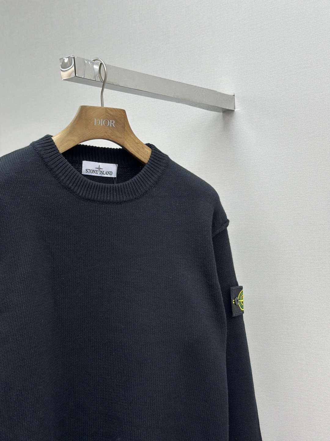 Stone Island 25FW round-neck sweater. Made with premium yarn for softness, warmth, and durable knit. Features iconic sleeve logo. Versatile design. Quality inspected. Sizes: S/M/L/XL.