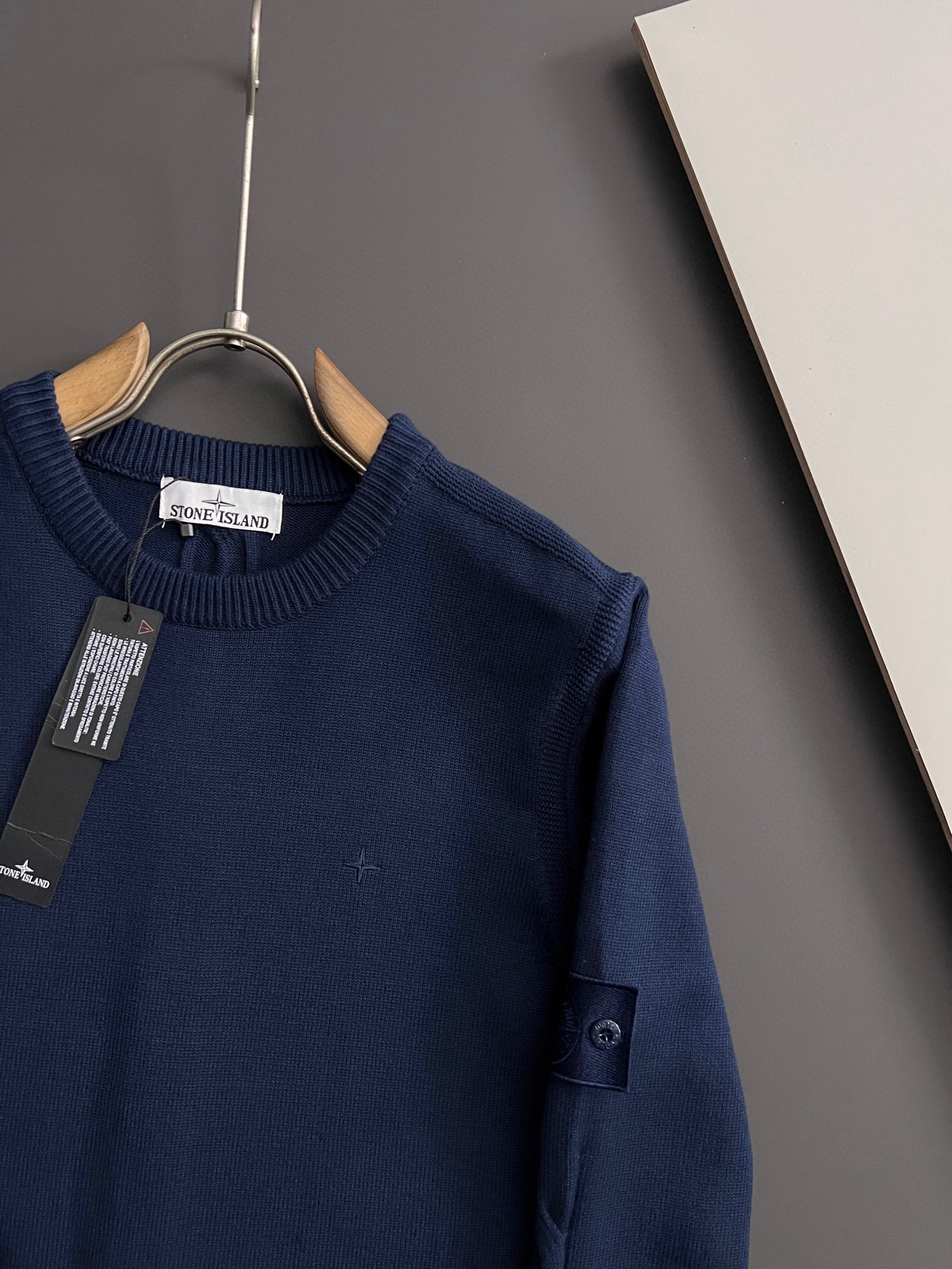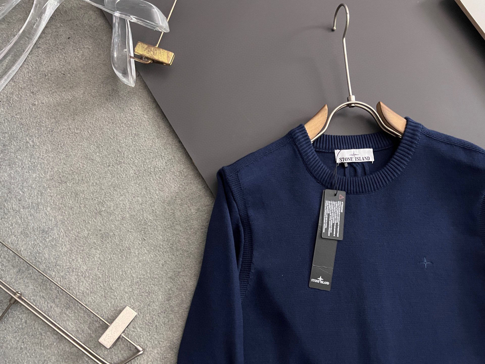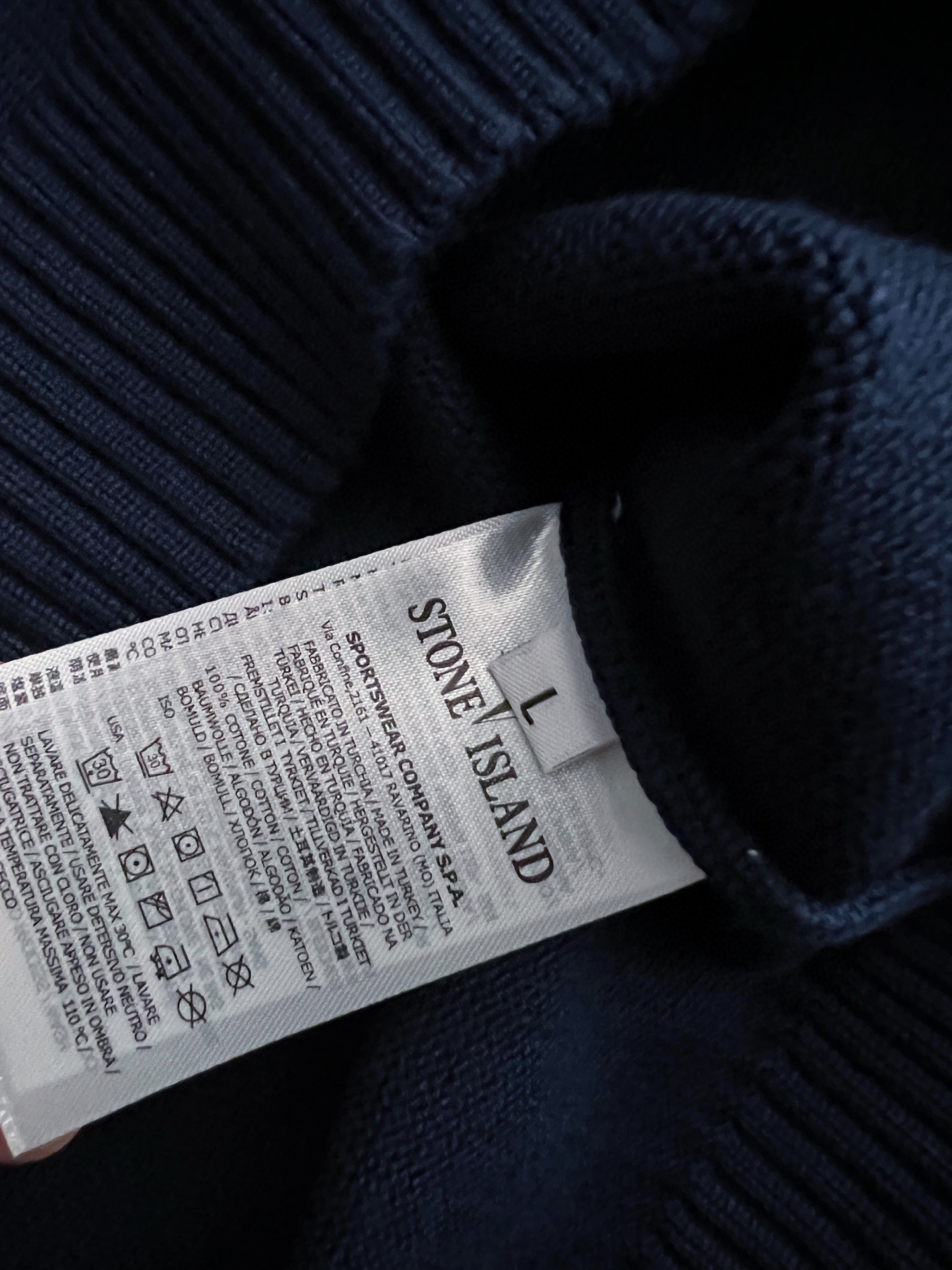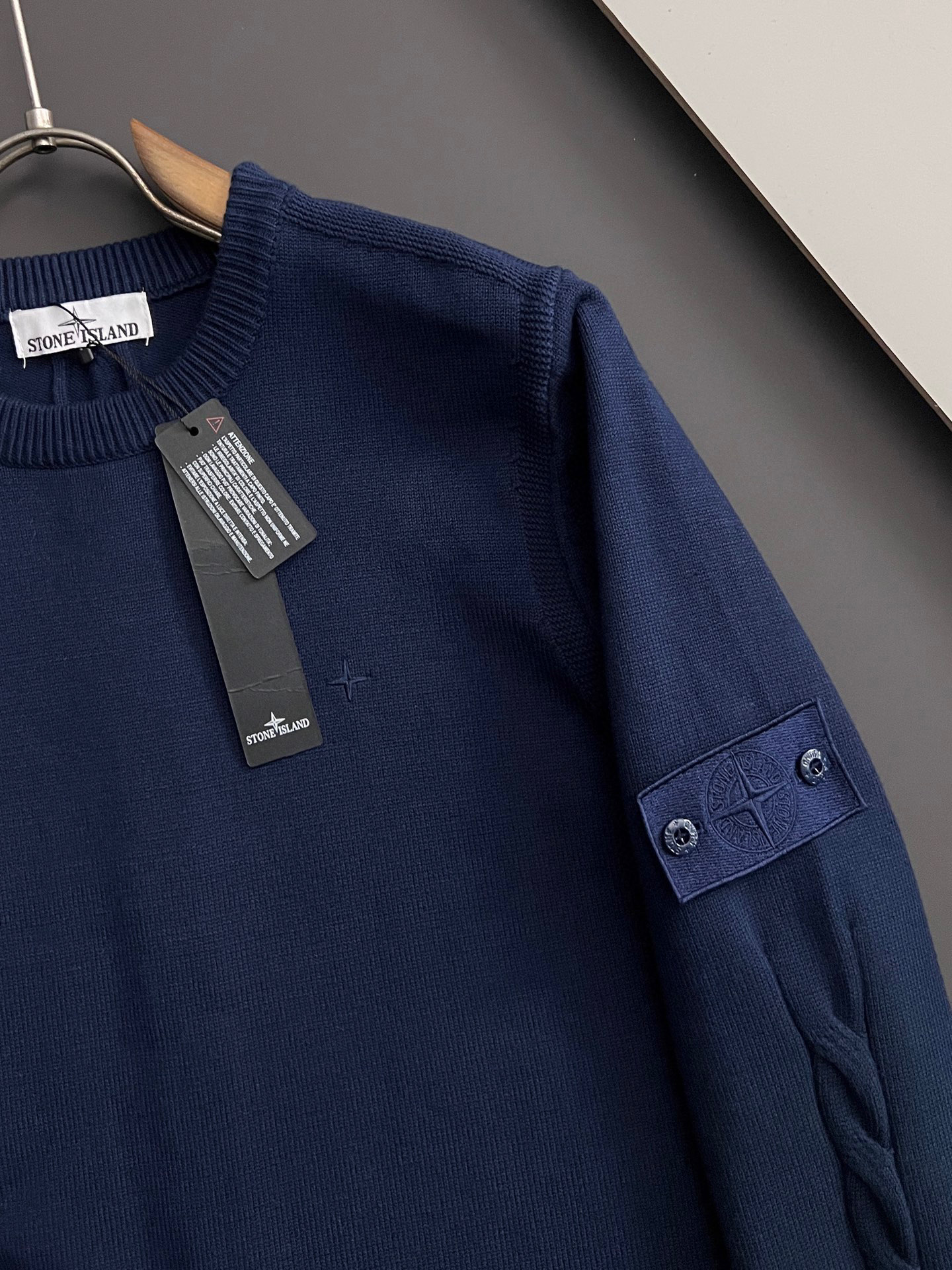 Stone Island 25SS black waffle knit sweater, round neck, top quality, comfortable fit. Sizes M-XXXL.