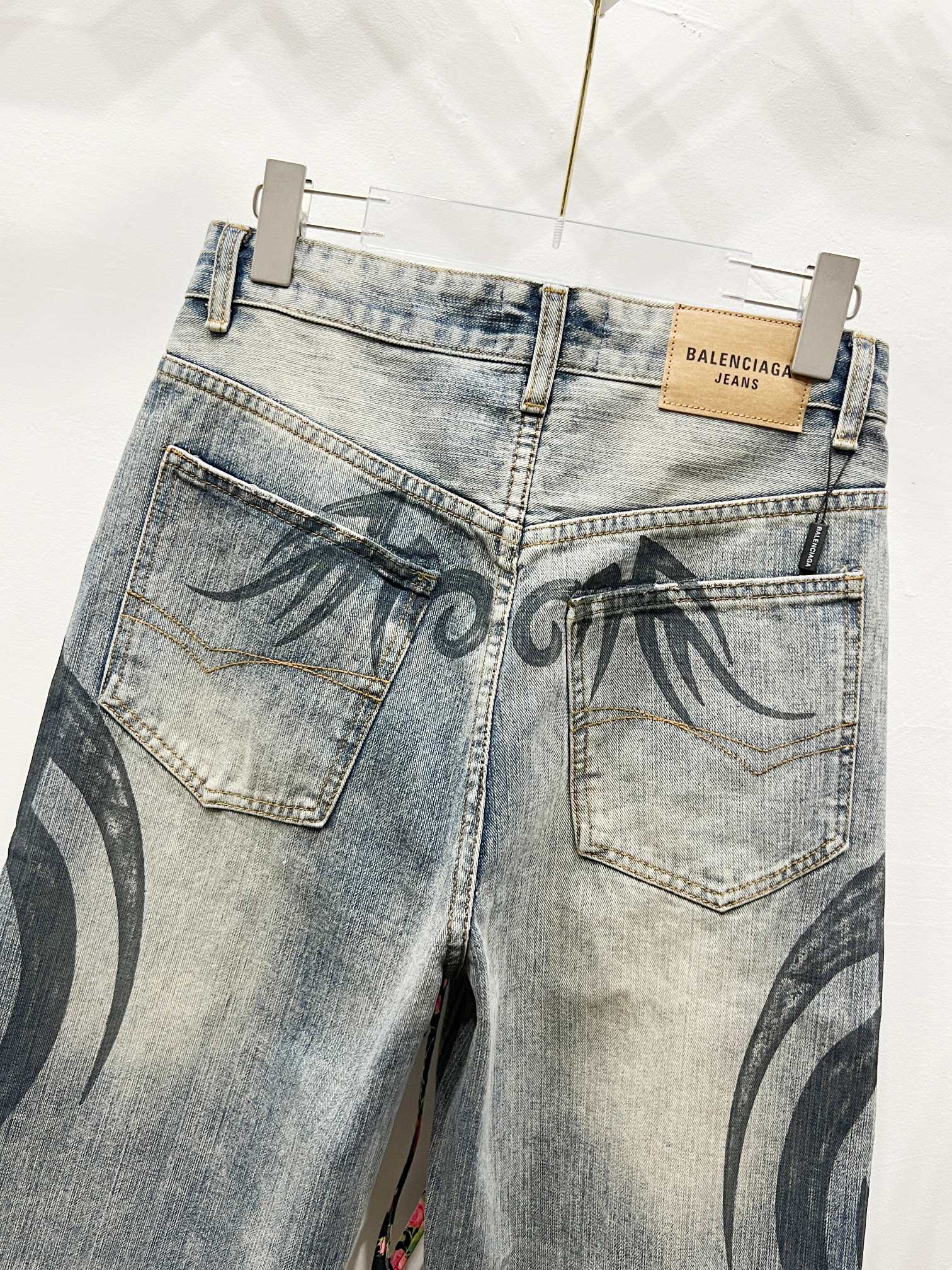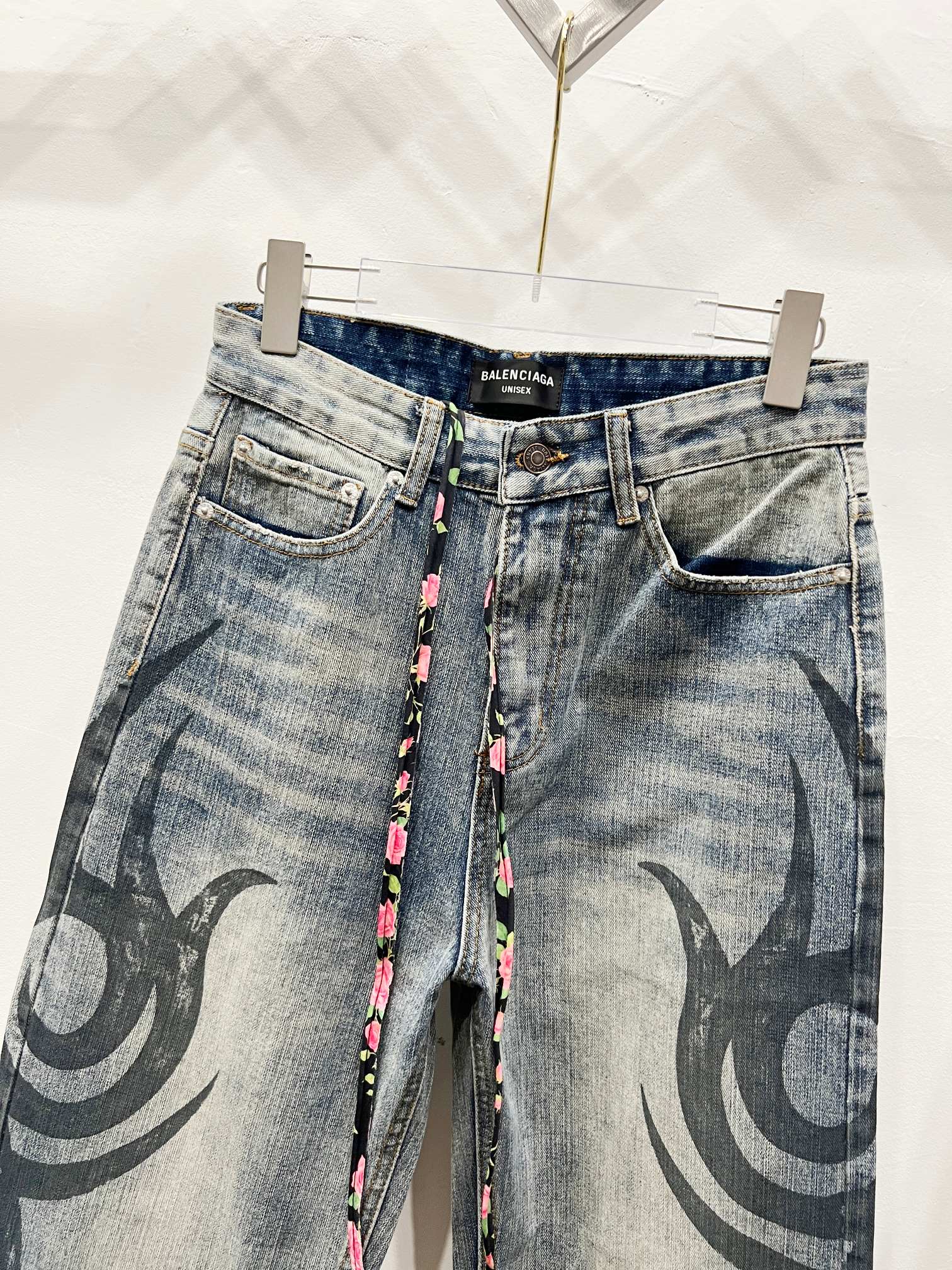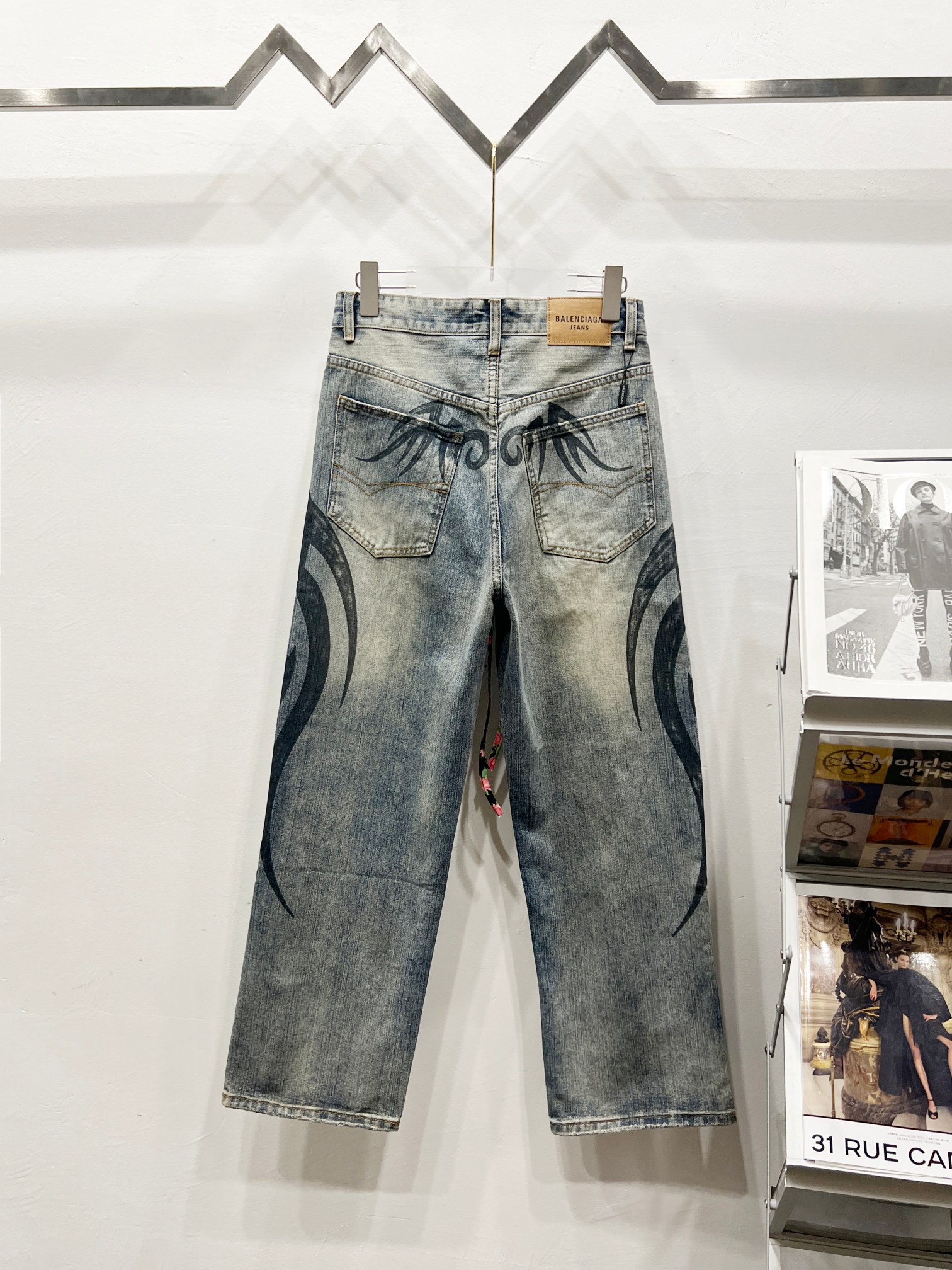 Balenciaga 2025 Y2K hand-drawn jeans. Loose fit, vintage blue. Sizes 30-36. High-quality, versatile essential.