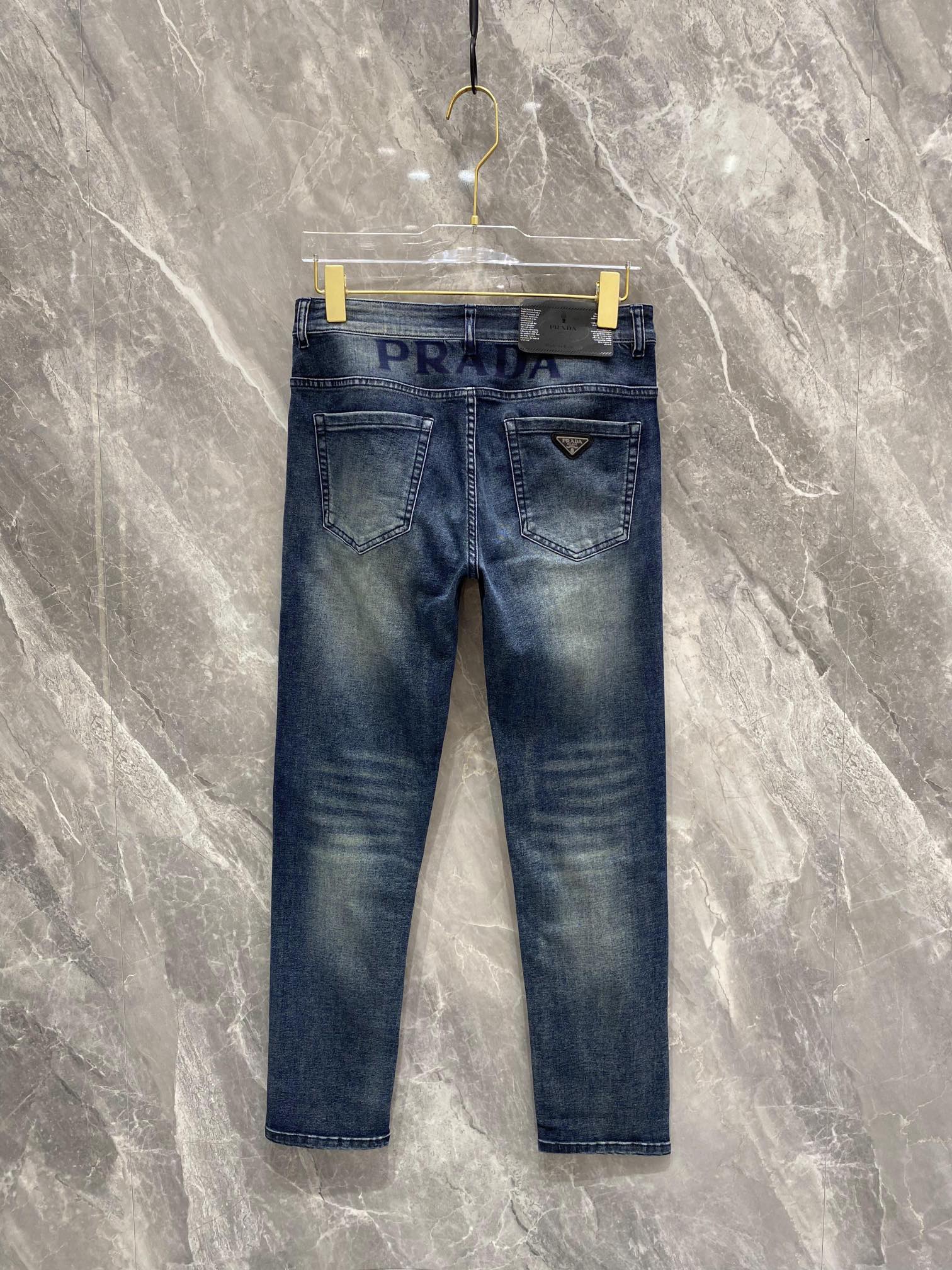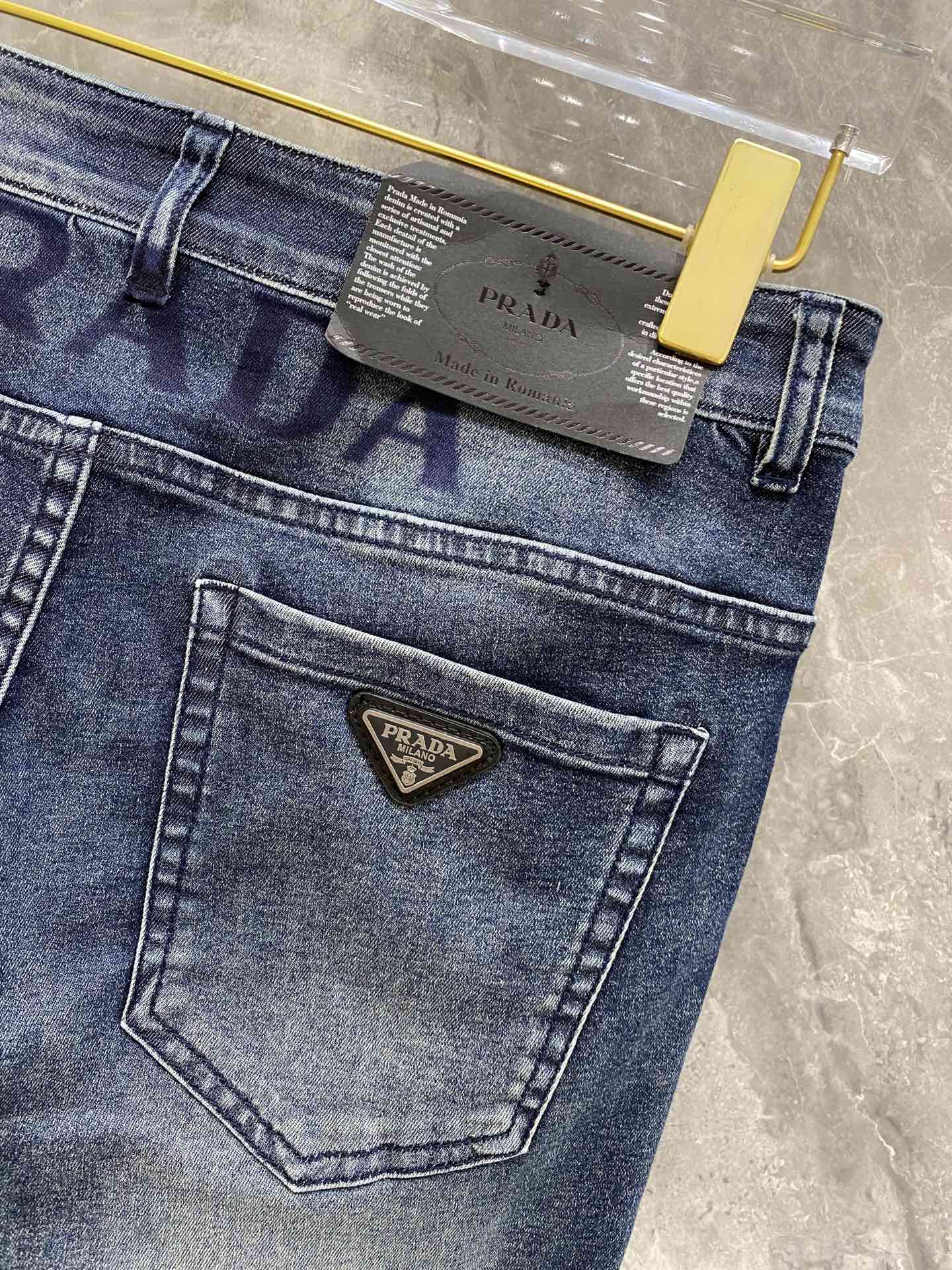 Home•Apparel•Jeans•Prada 2024 spring-summer men's jeans with elastic fabric, exclusive release. Features original yeast wash, imported denim, and branded hardware. Available in black, sizes M-XXXL.