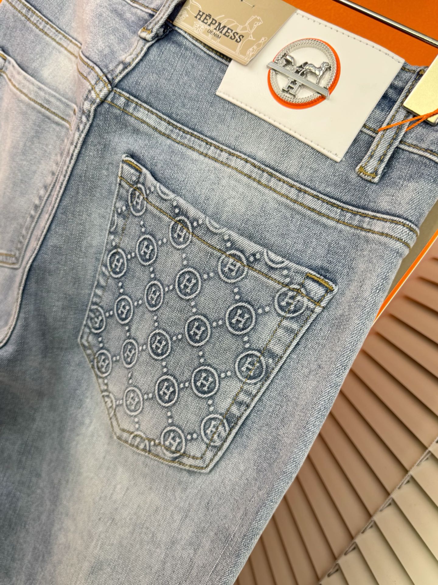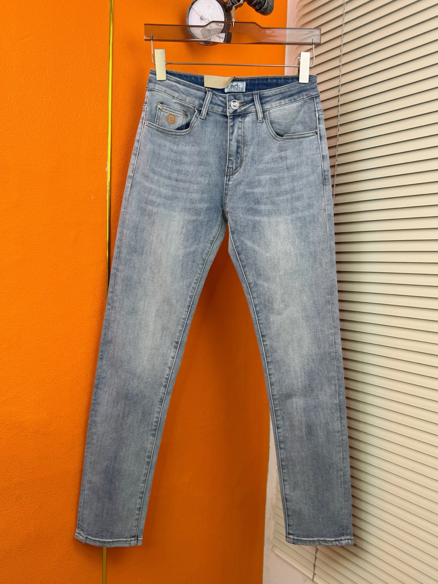 LV Thin Denim Jeans. 2025 latest style. 98% cotton, 2% spandex. Solid, slightly stretchy, comfortable. Simple design, hidden zipper, embossed pockets. Excellent fit.