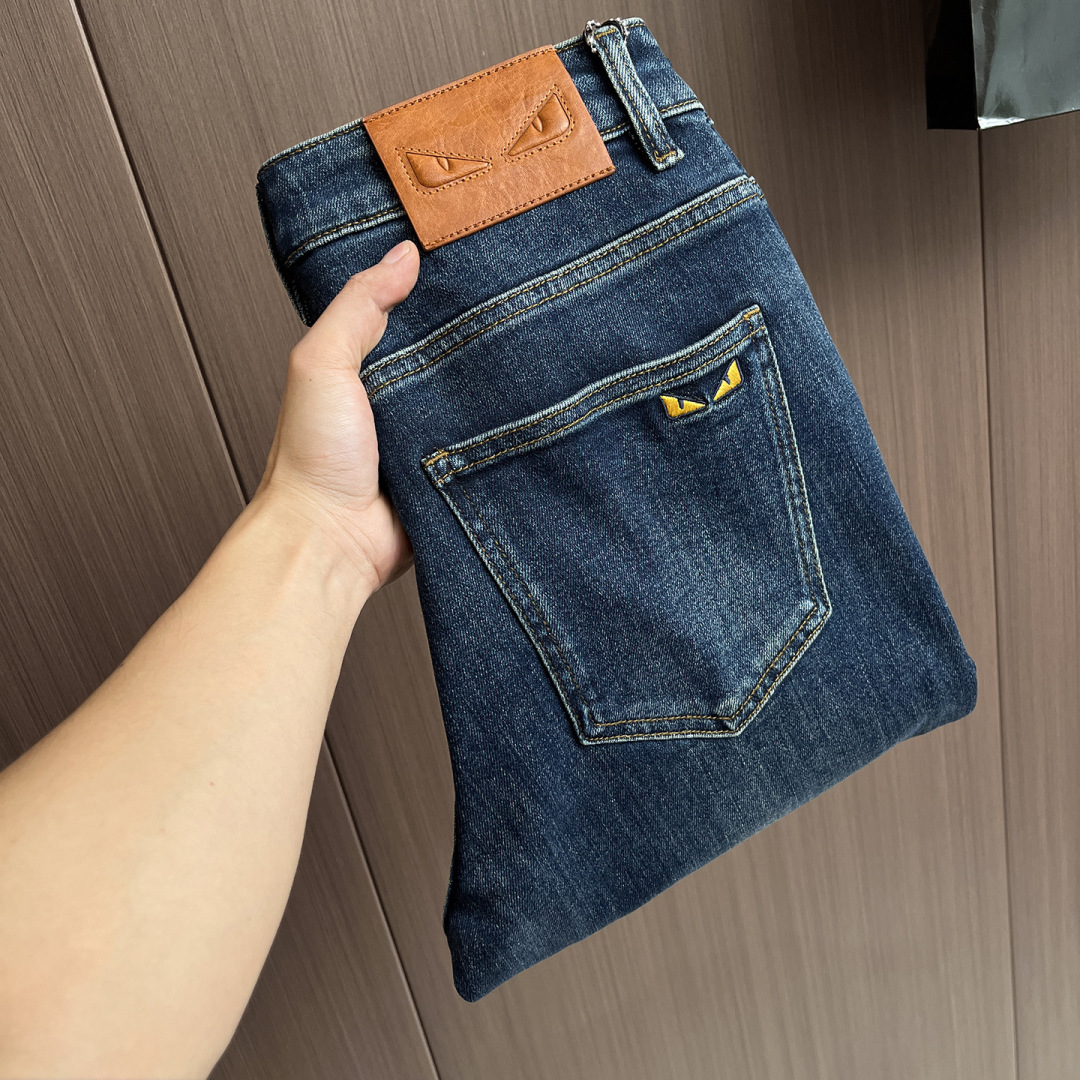Fendi 2025 latest wash jeans. Imported stretch fabric, comfortable, original hardware. Trendy fit, sizes 30-40.