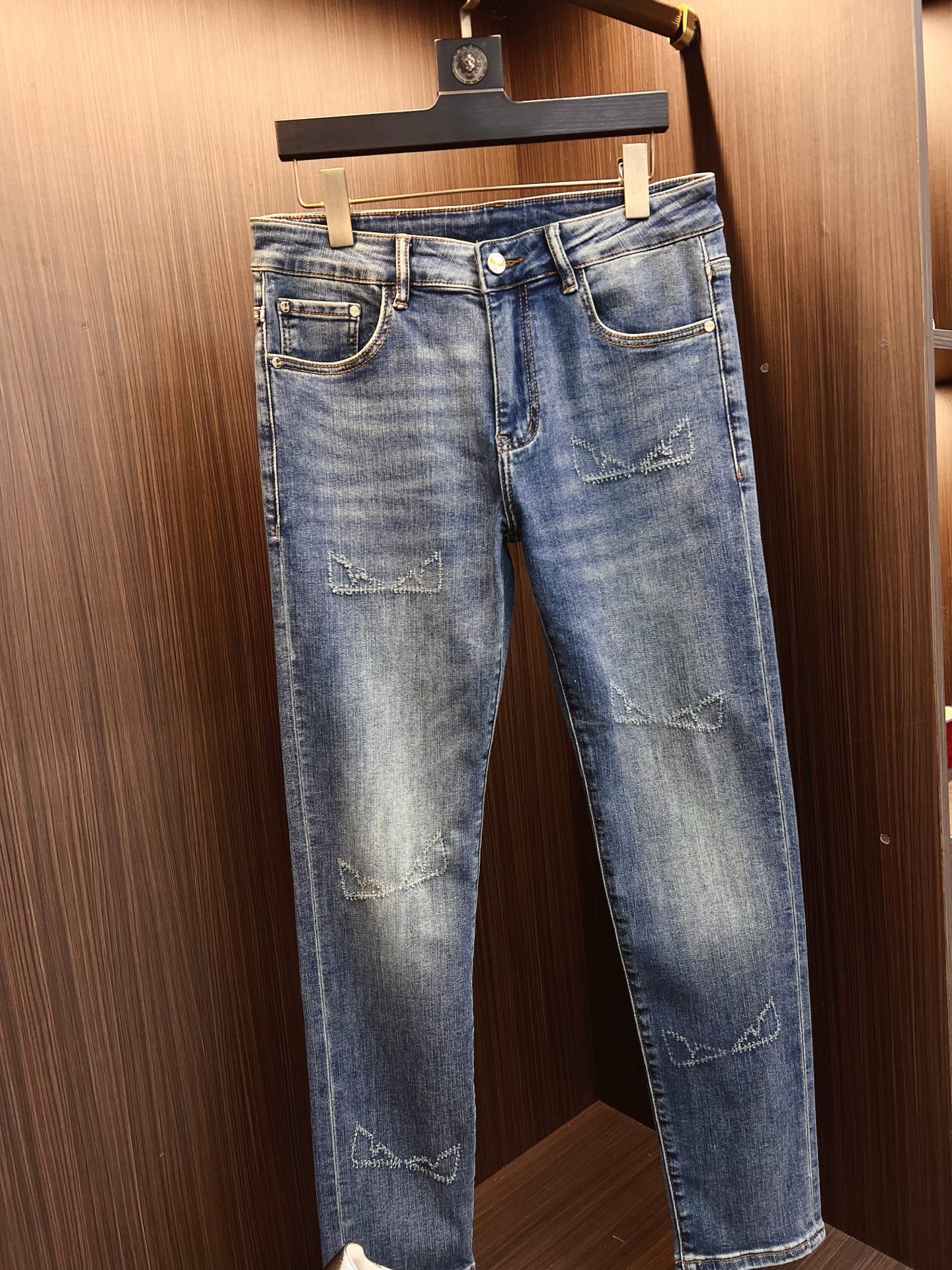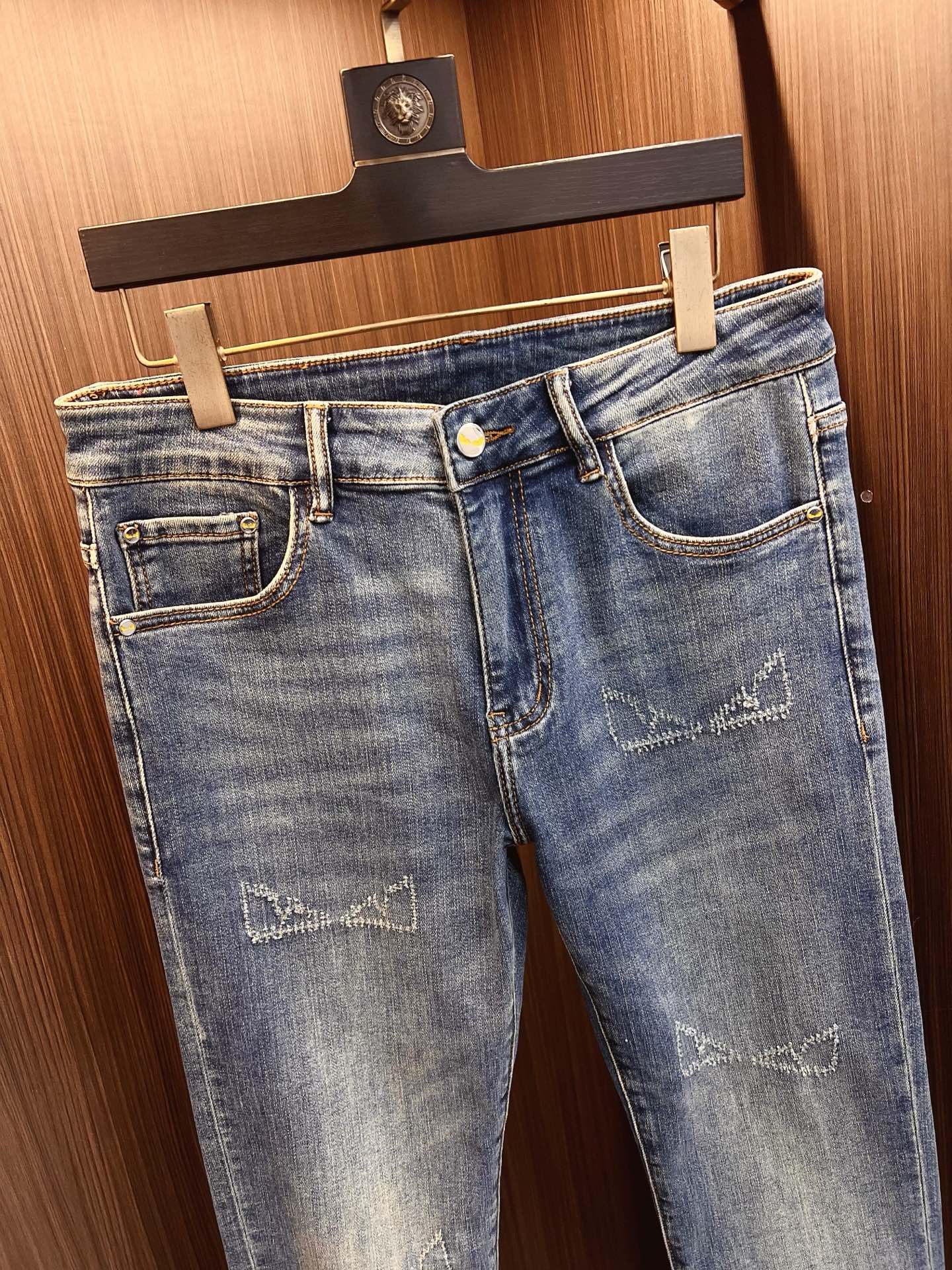 FENDI men's denim jeans. Premium Japanese 13oz fabric, eco-enzyme wash for soft vintage look. Perfect fit, versatile styling. Sizes 28-38 (excl 35,37).