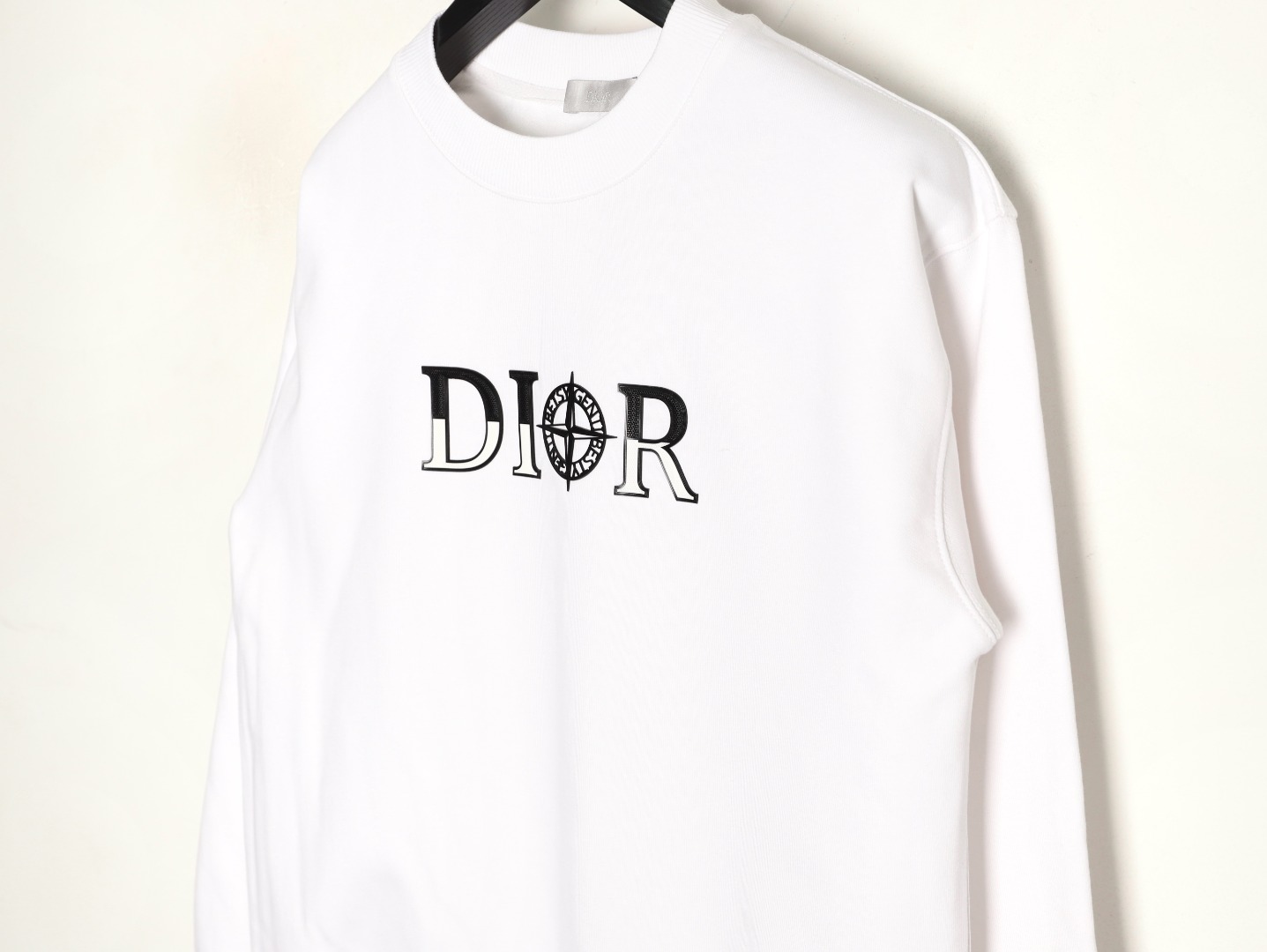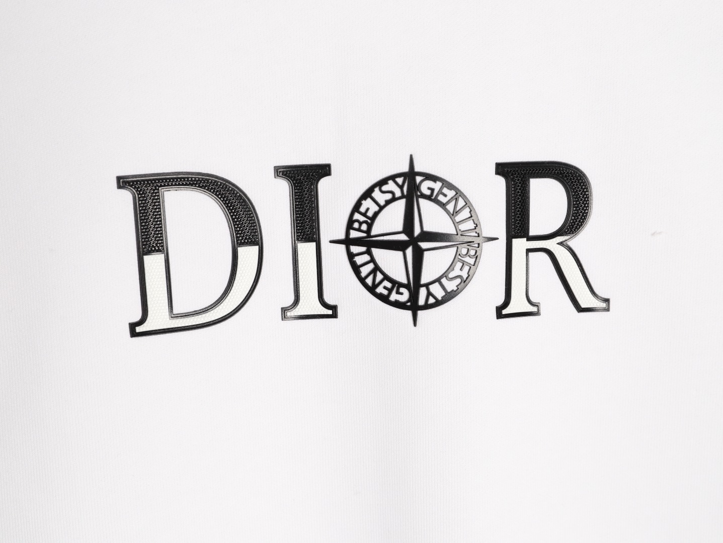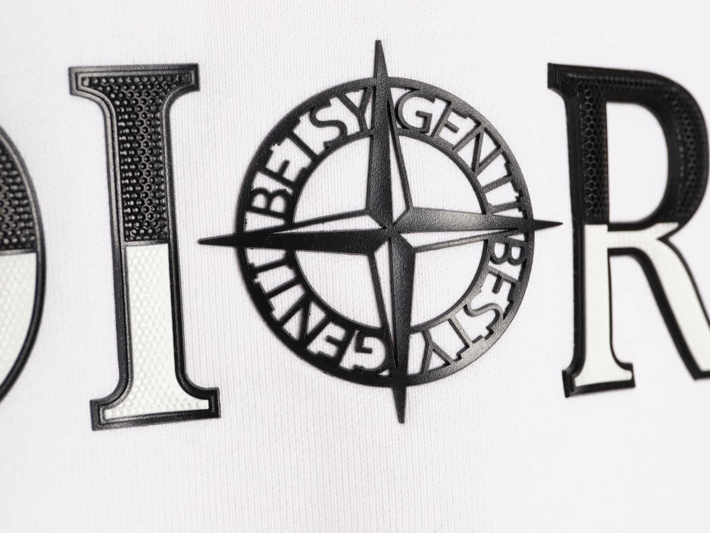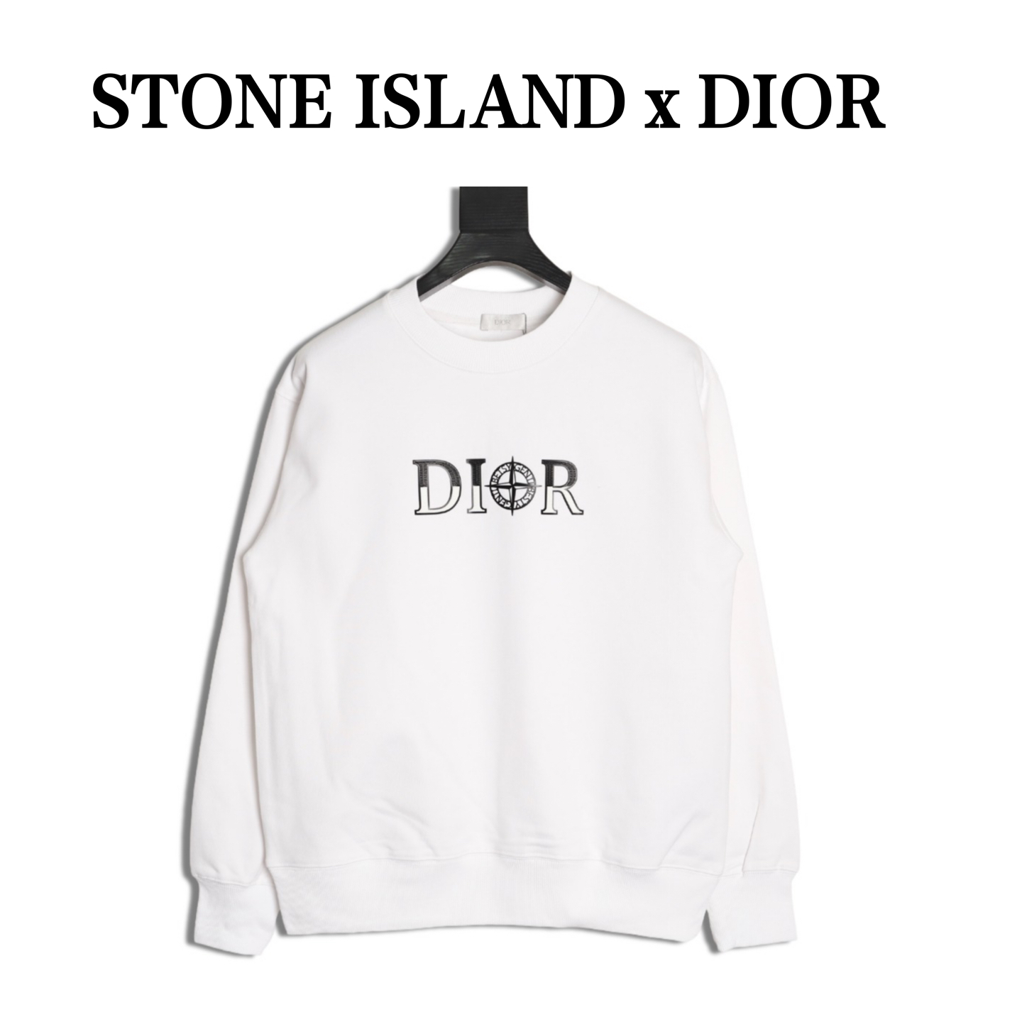 Dior x Stone Island 25FW crewneck sweatshirt. 480g premium combed cotton, puffy prints, unisex oversized fit. Sizes XS-L.
