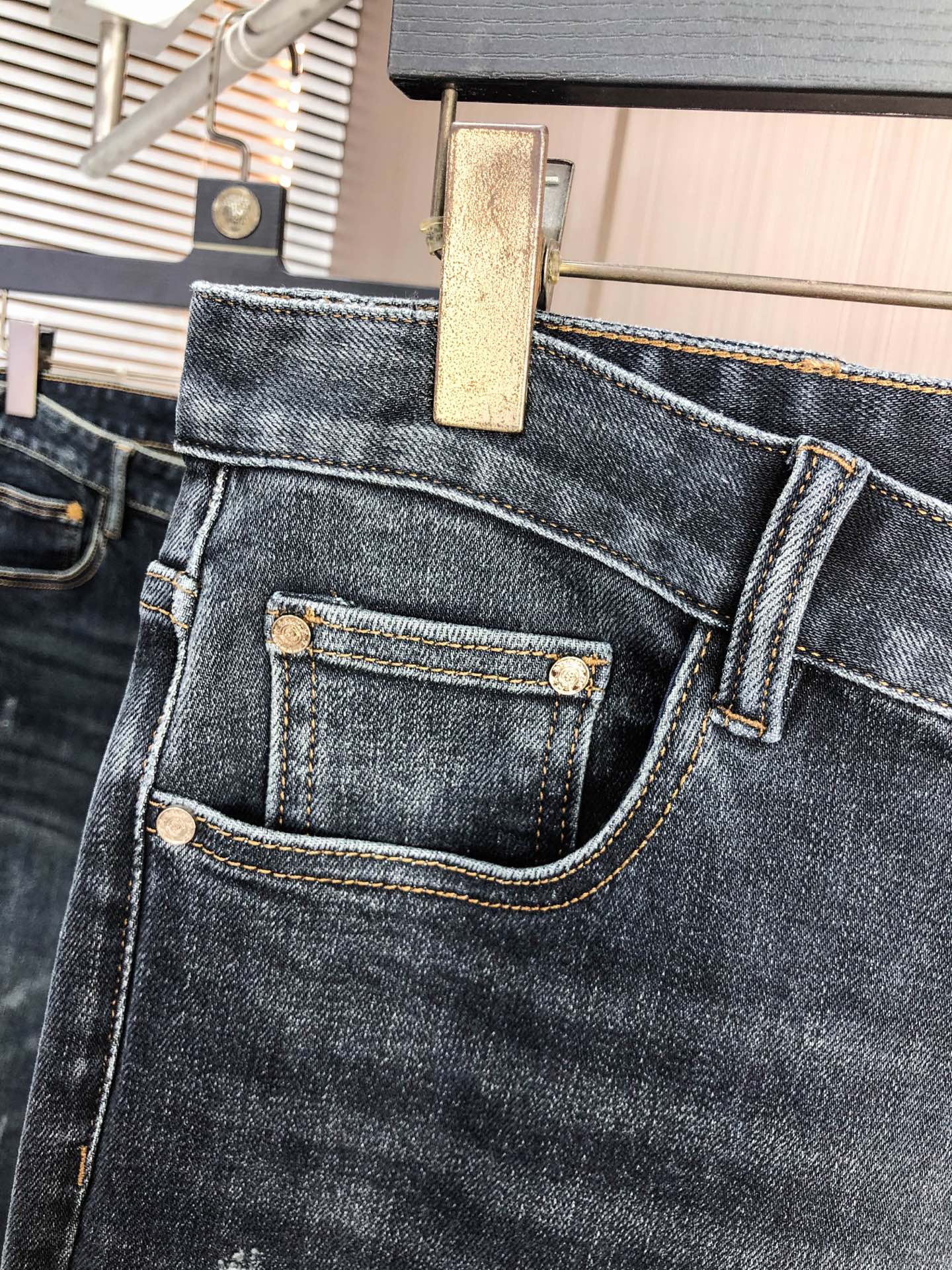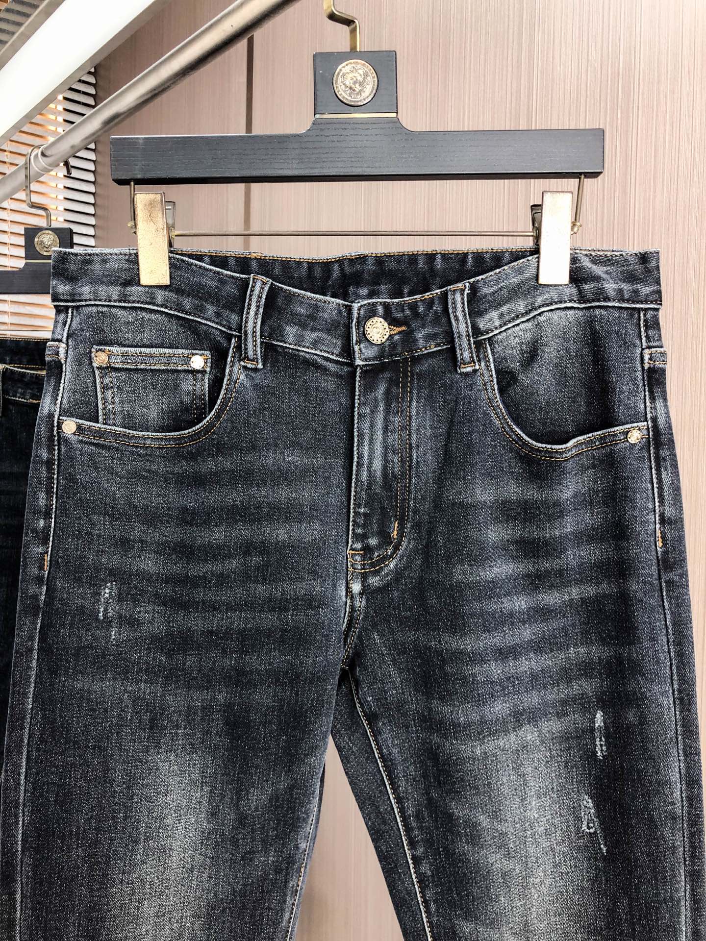 LV Thin Denim Jeans. 2025 latest style. 98% cotton, 2% spandex. Solid, slightly stretchy, comfortable. Simple design, hidden zipper, embossed pockets. Excellent fit.