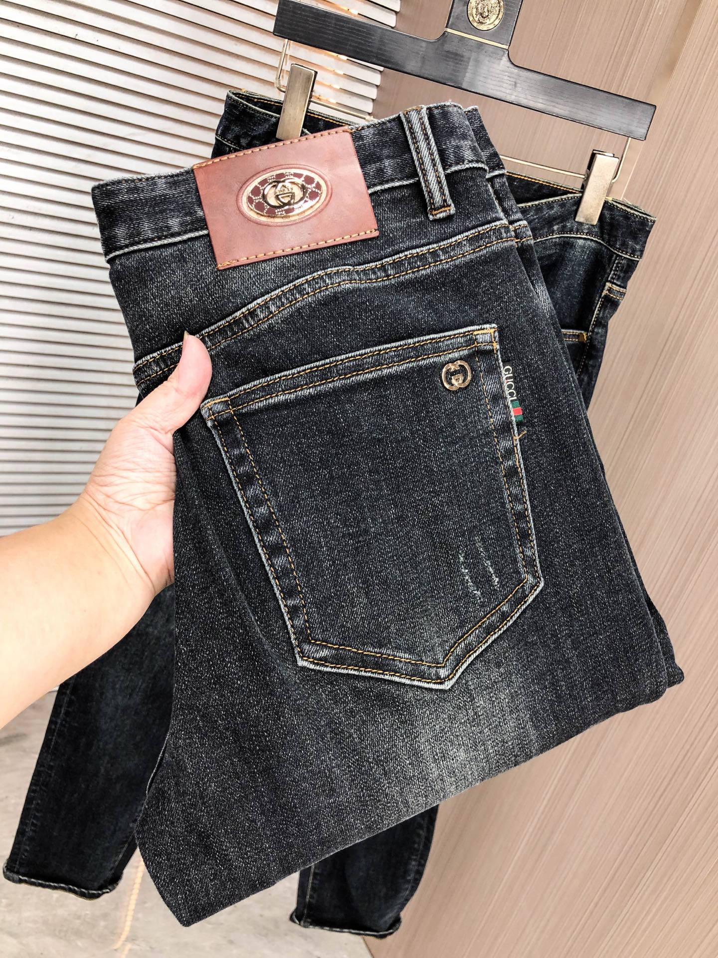 Gucci秋冬修身弹力牛仔裤。土耳其棉,水洗工艺,柔软舒适。直脚版型,尺码29-36,38。