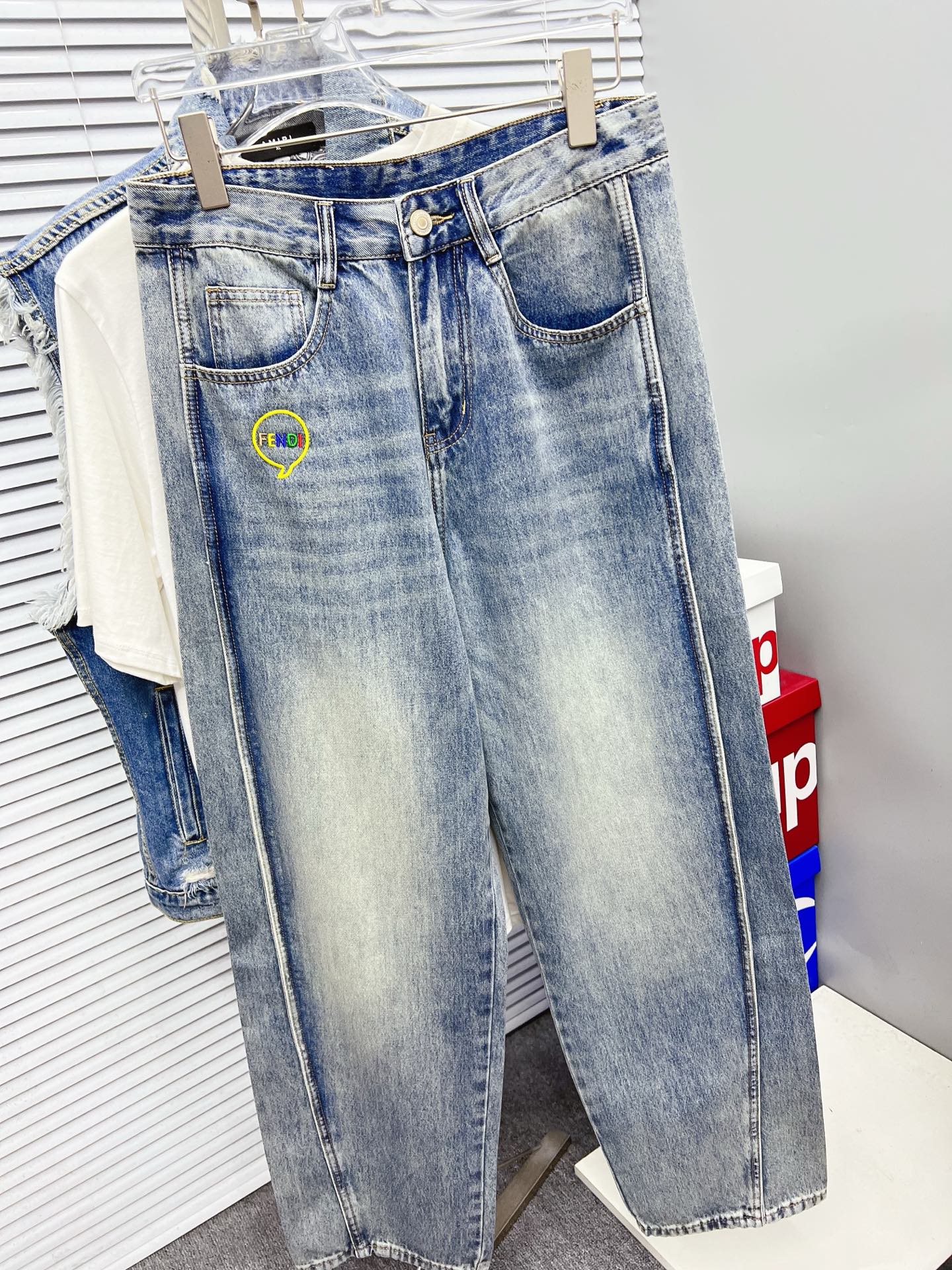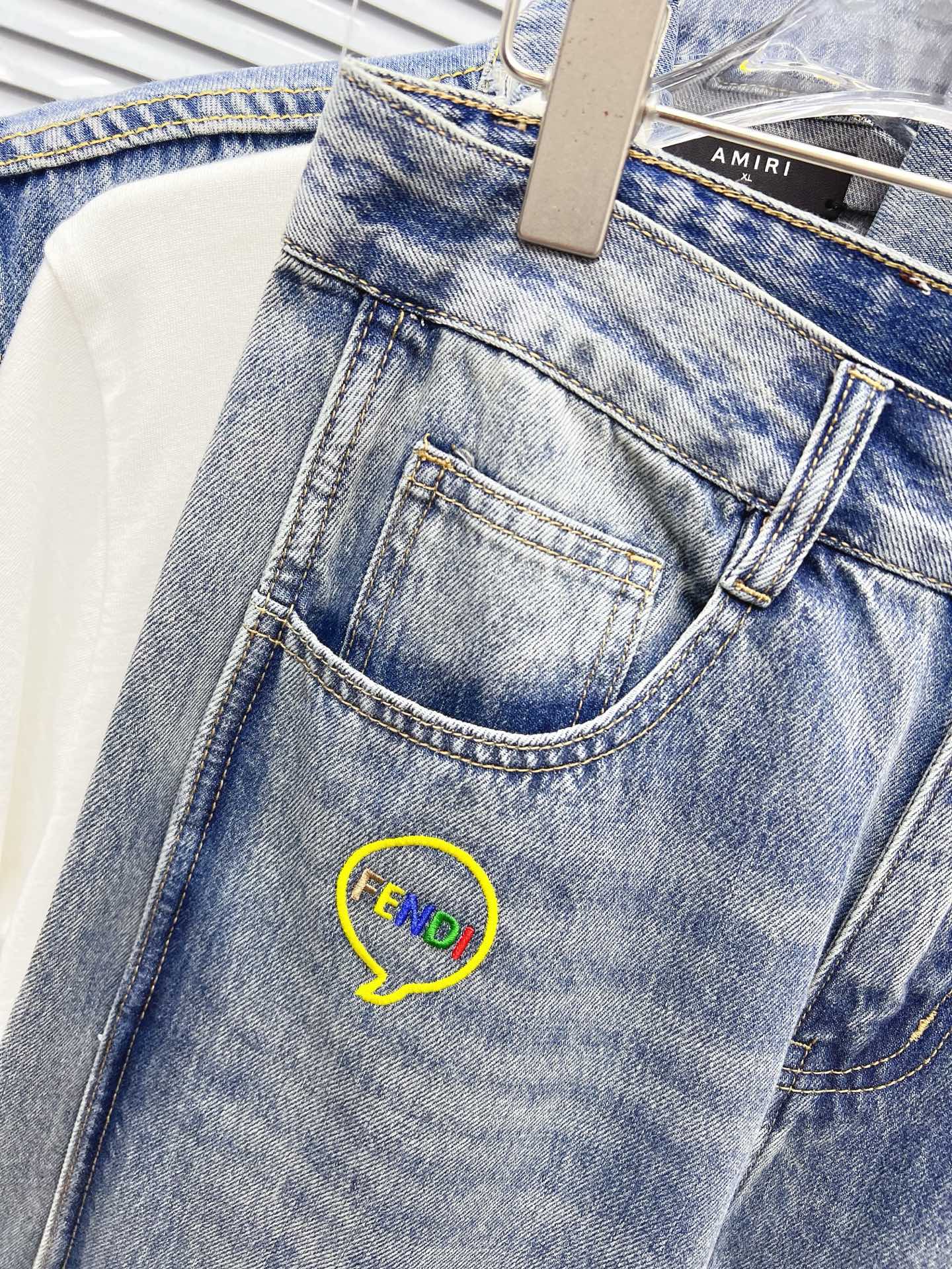 FENDI men's wide-leg jeans. Premium Japanese denim, 13oz, eco-enzyme wash for soft vintage look. Perfect fit, leather brand tag. Sizes: 29-38 excl 35,37.