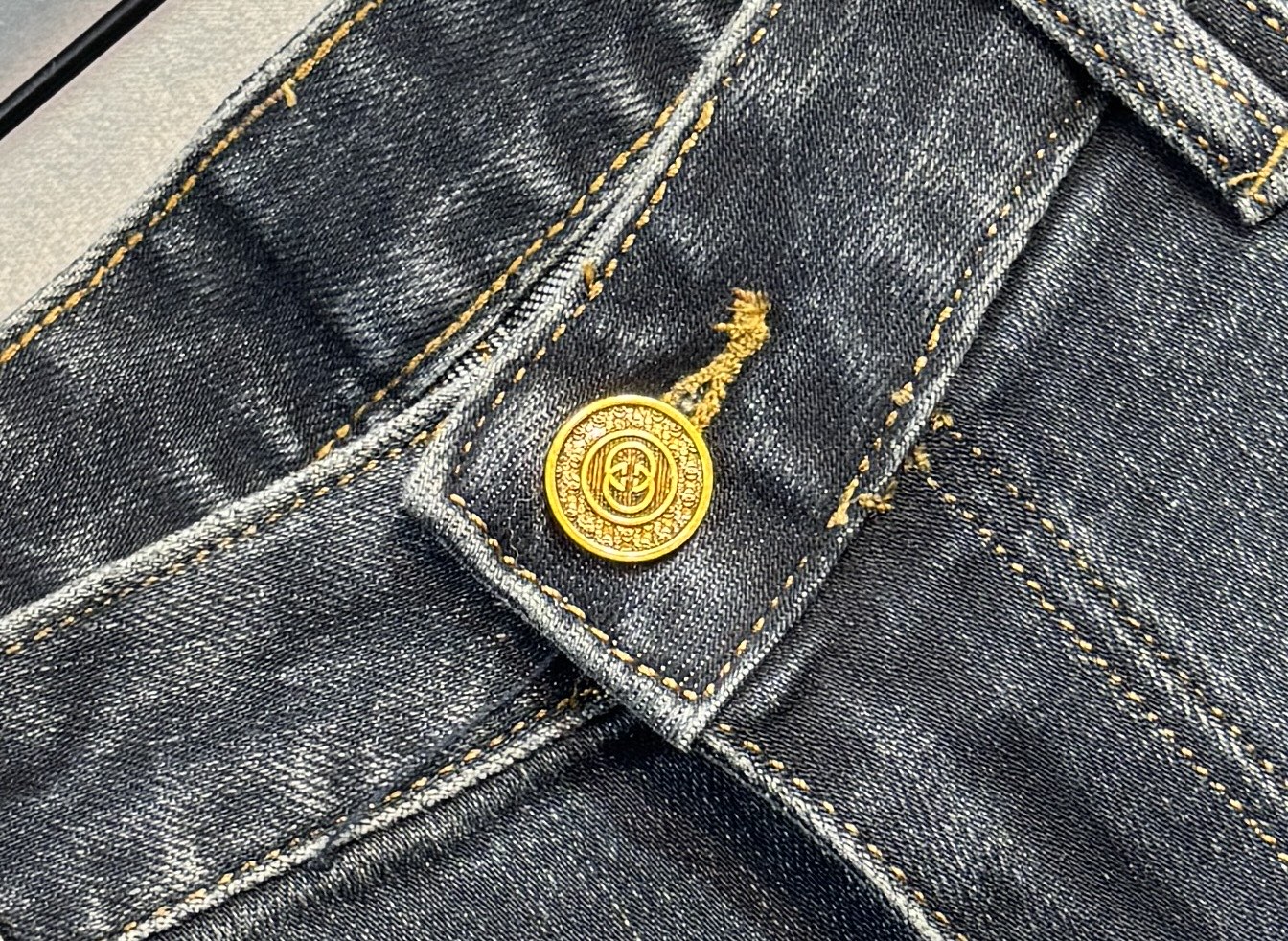 GUCCI 2025 Fall/Winter slightly flared jeans. Comfortable, luxurious, using Turkish cotton denim. Soft, straight-leg cut. Sizes 29-36, 38.