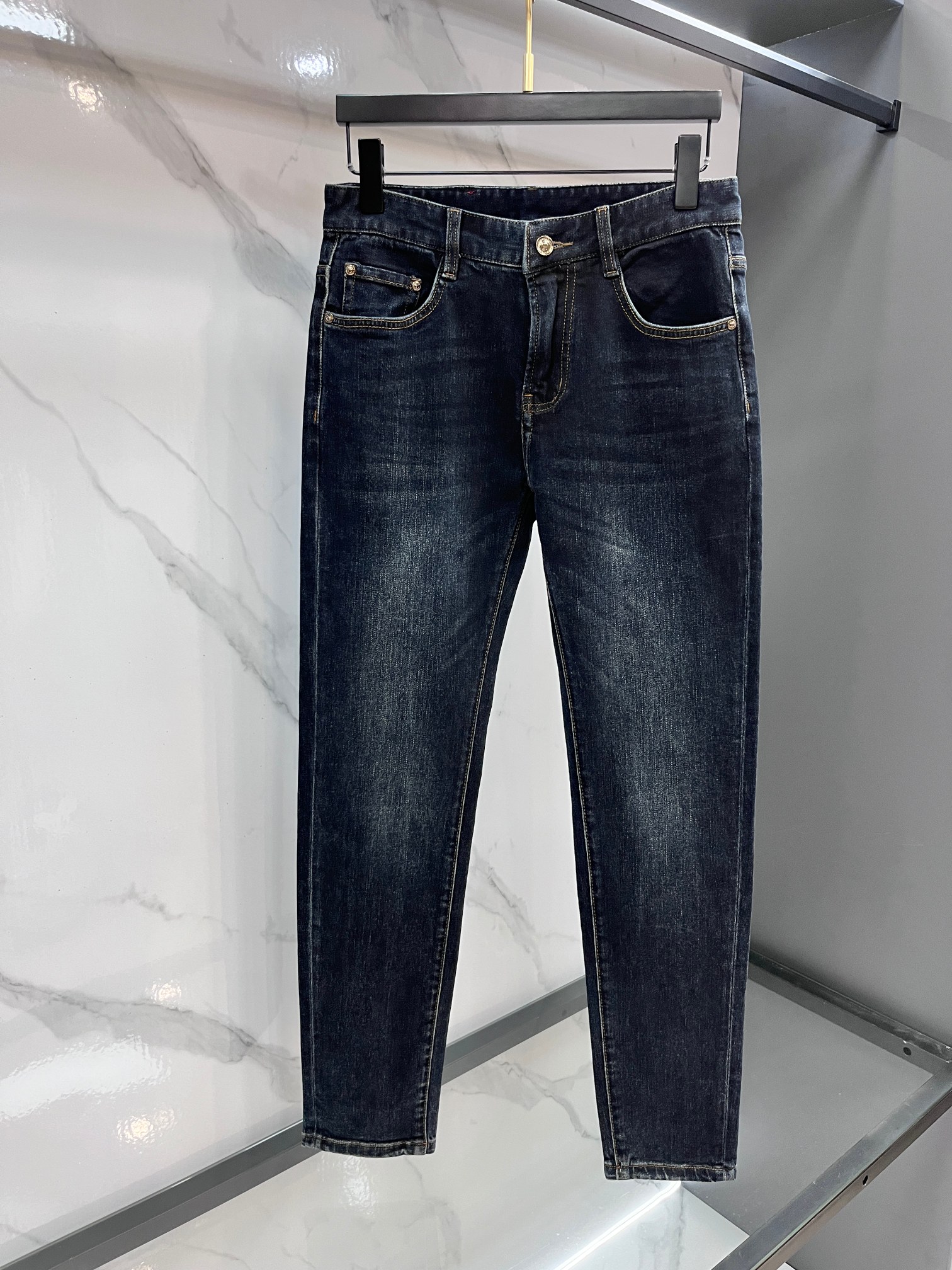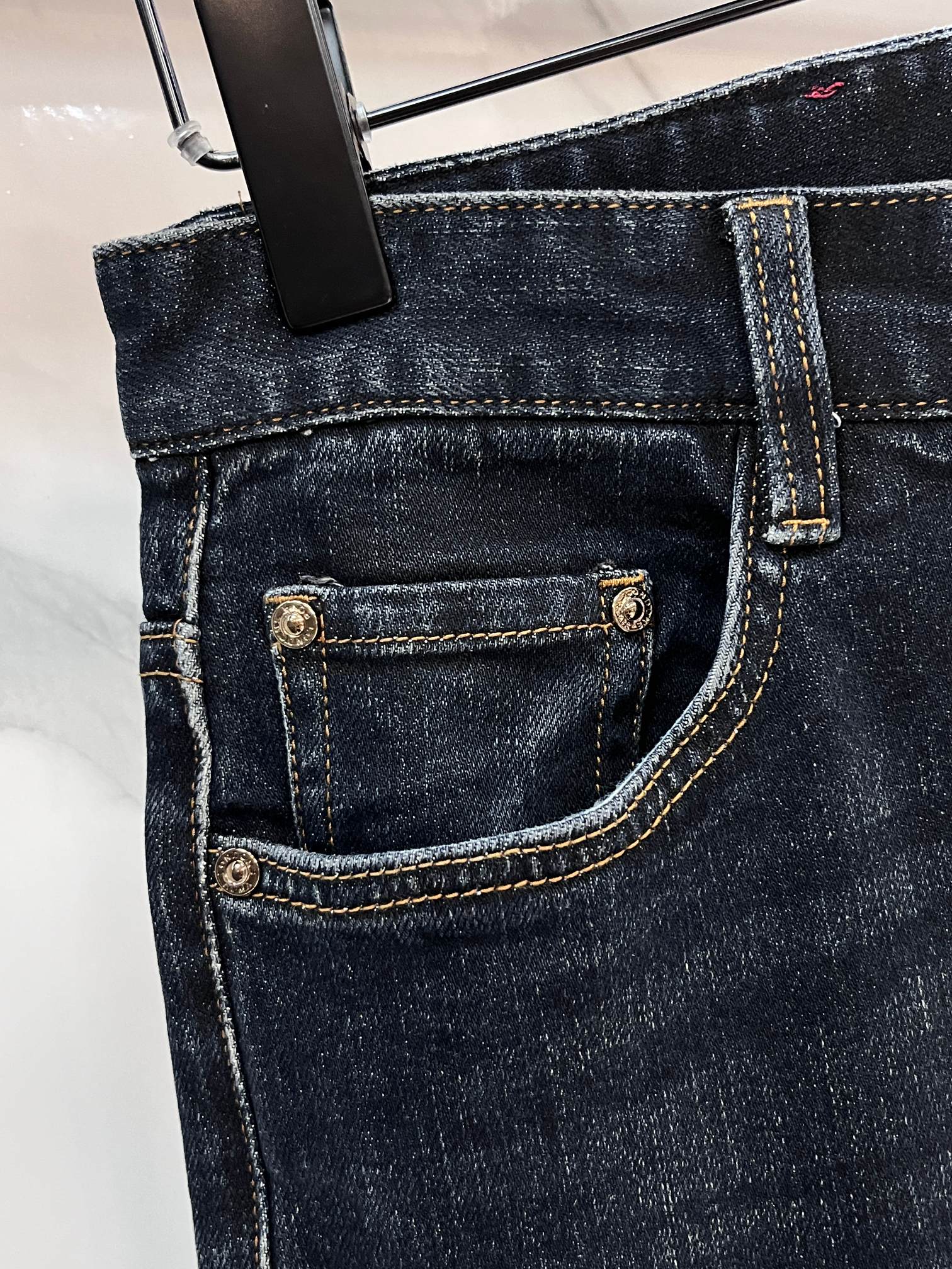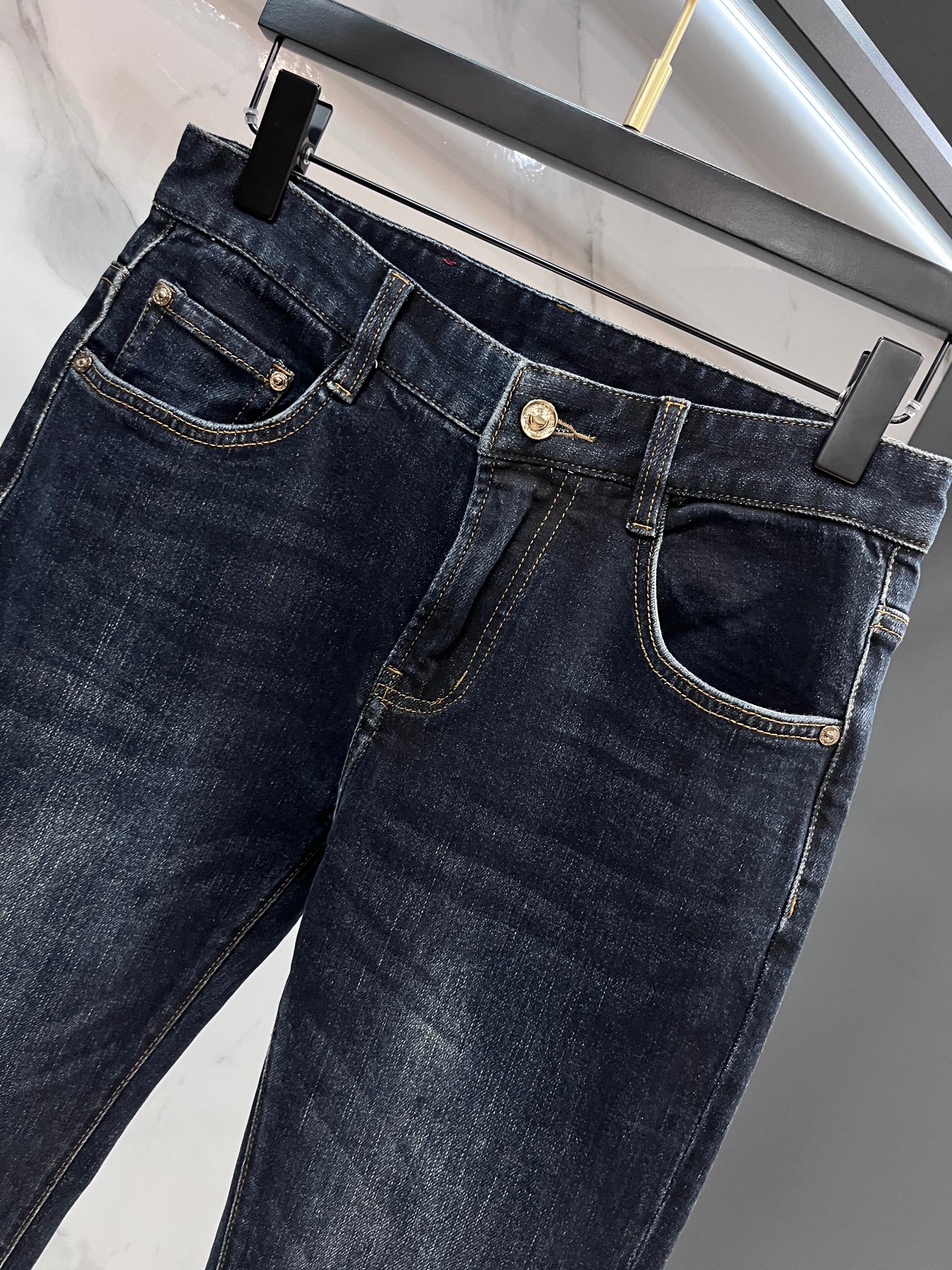 LV Thin Denim Jeans. 2025 latest style. 98% cotton, 2% spandex. Solid, slightly stretchy, comfortable. Simple design, hidden zipper, embossed pockets. Excellent fit.