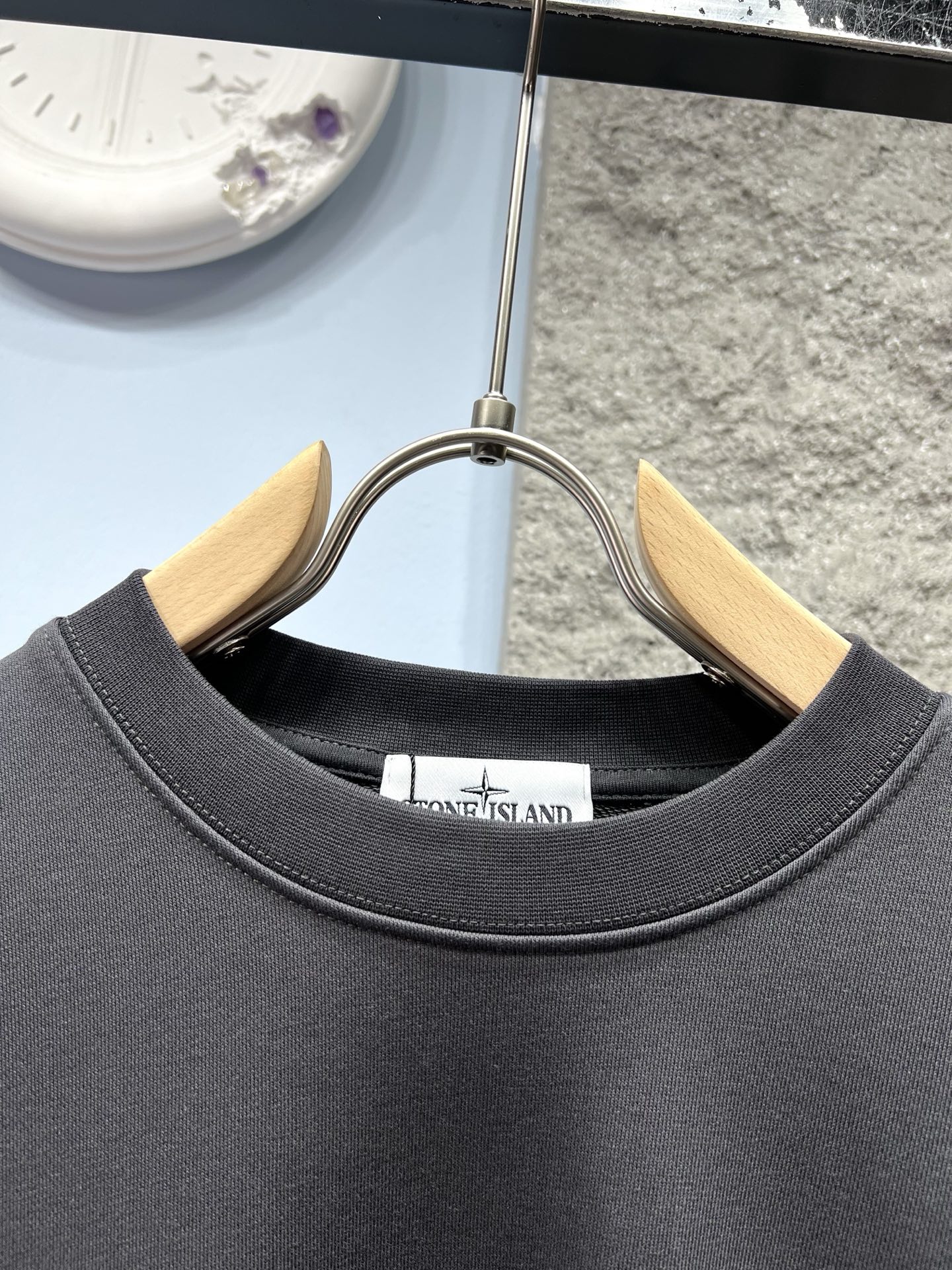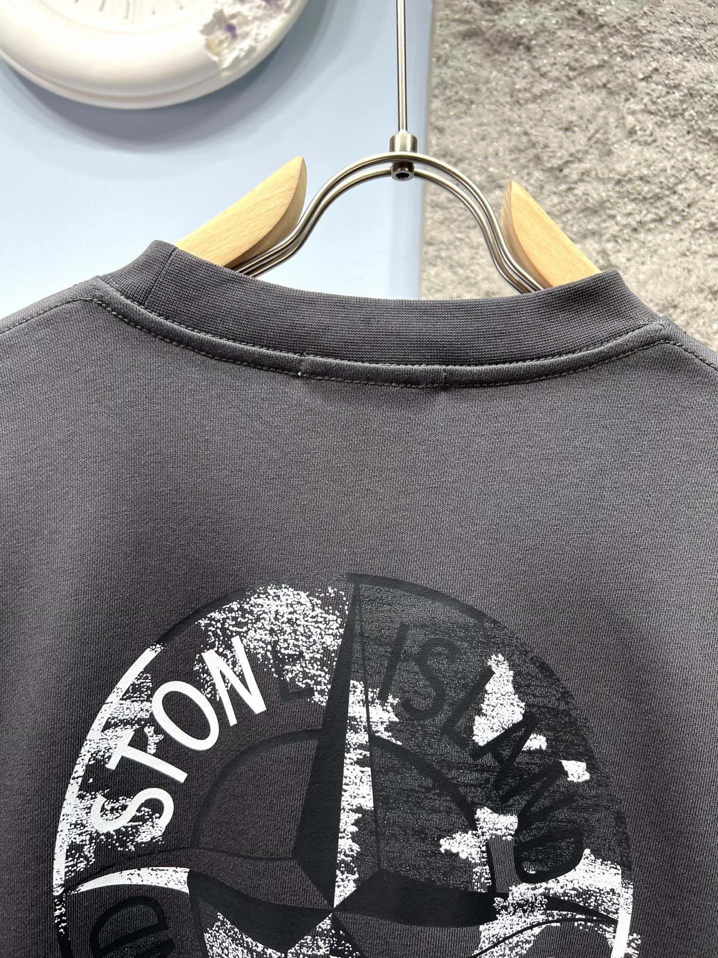 Stone Island compass logo sweatshirt. 380g cotton, OS fit. Colors: White, Grey Green, Dark Green, Charcoal, Black. Sizes S-XXL. Dry clean or machine wash cold.