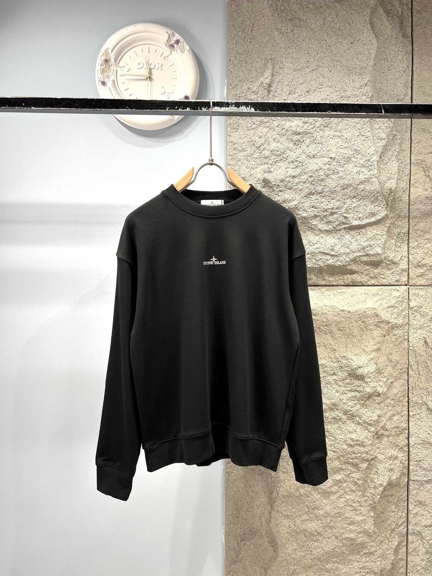 Stone Island compass logo sweatshirt. 380g cotton, OS fit. Colors: White, Grey Green, Dark Green, Charcoal, Black. Sizes S-XXL. Dry clean or machine wash cold.