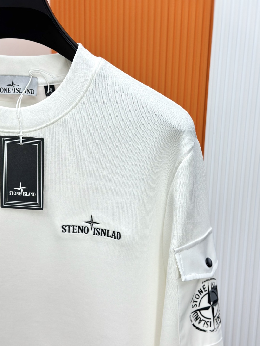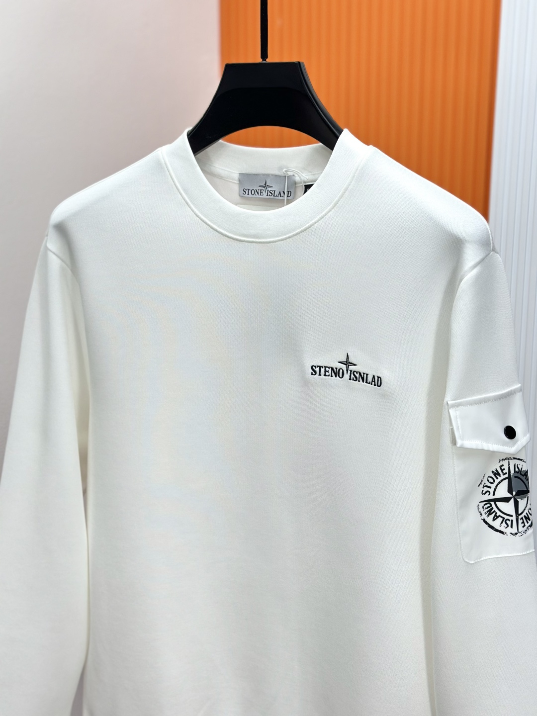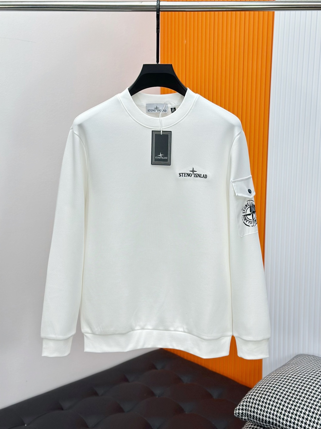 Stone Island 25FW black/white hoodie. Classic embroidered logo. 400g air-layer cotton, warm & breathable. Sizes 48/M-56/3XL. Versatile daily wear.