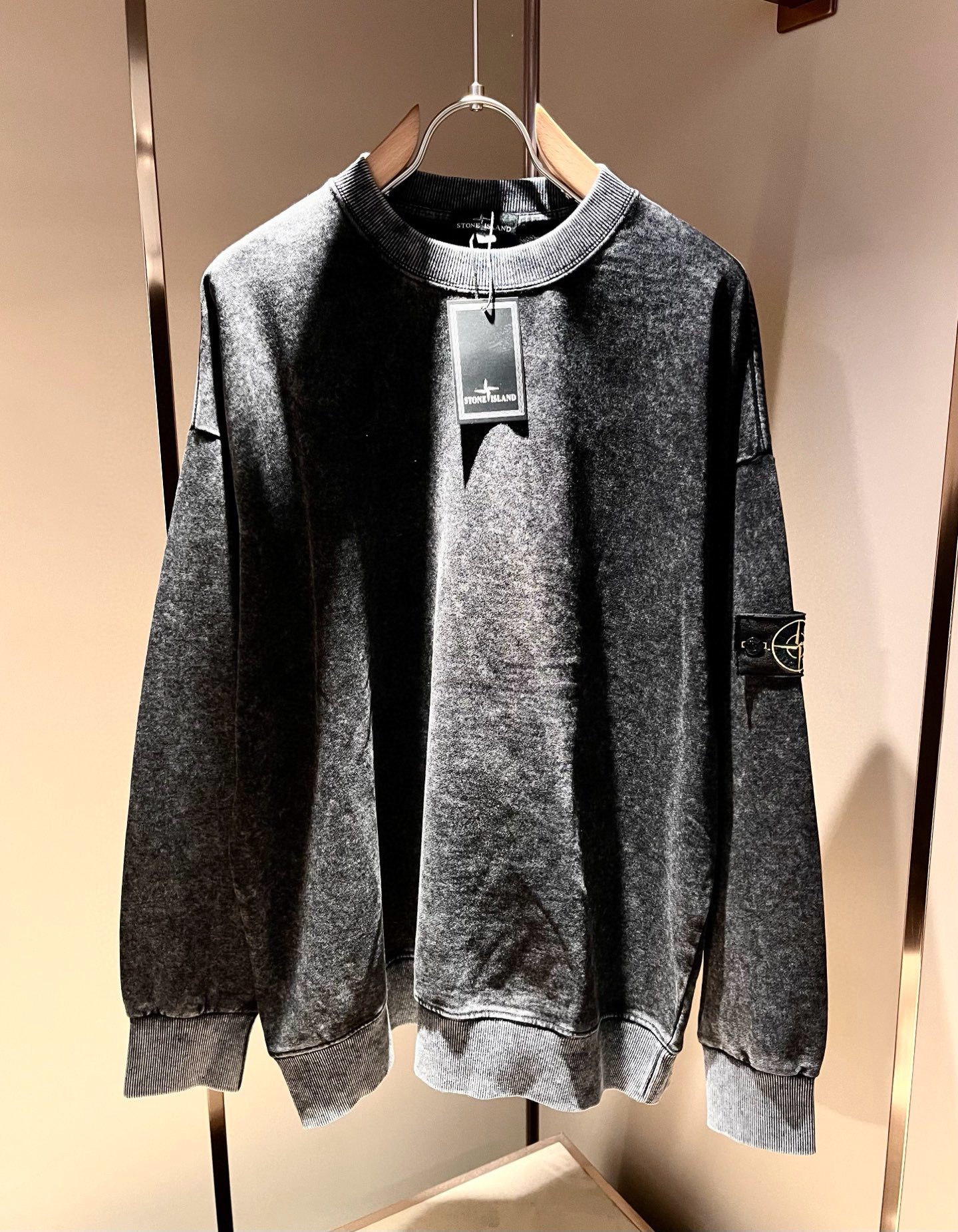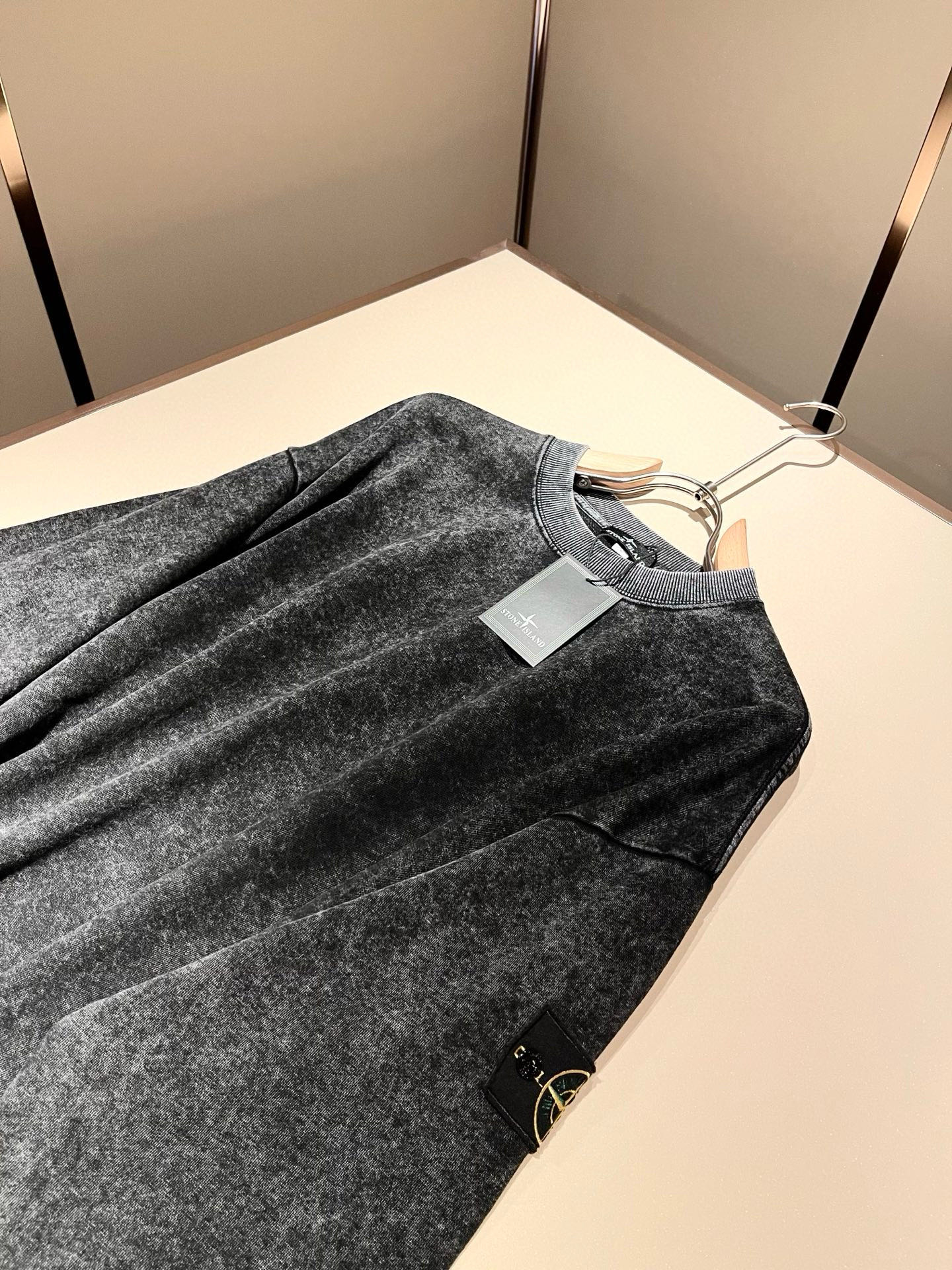 StoneIsland 2025 FW distressed unisex hoodie. Custom imported cotton, 3D texture, logo badge sleeves. Minimalist elegant design. Sizes M-4XL.
