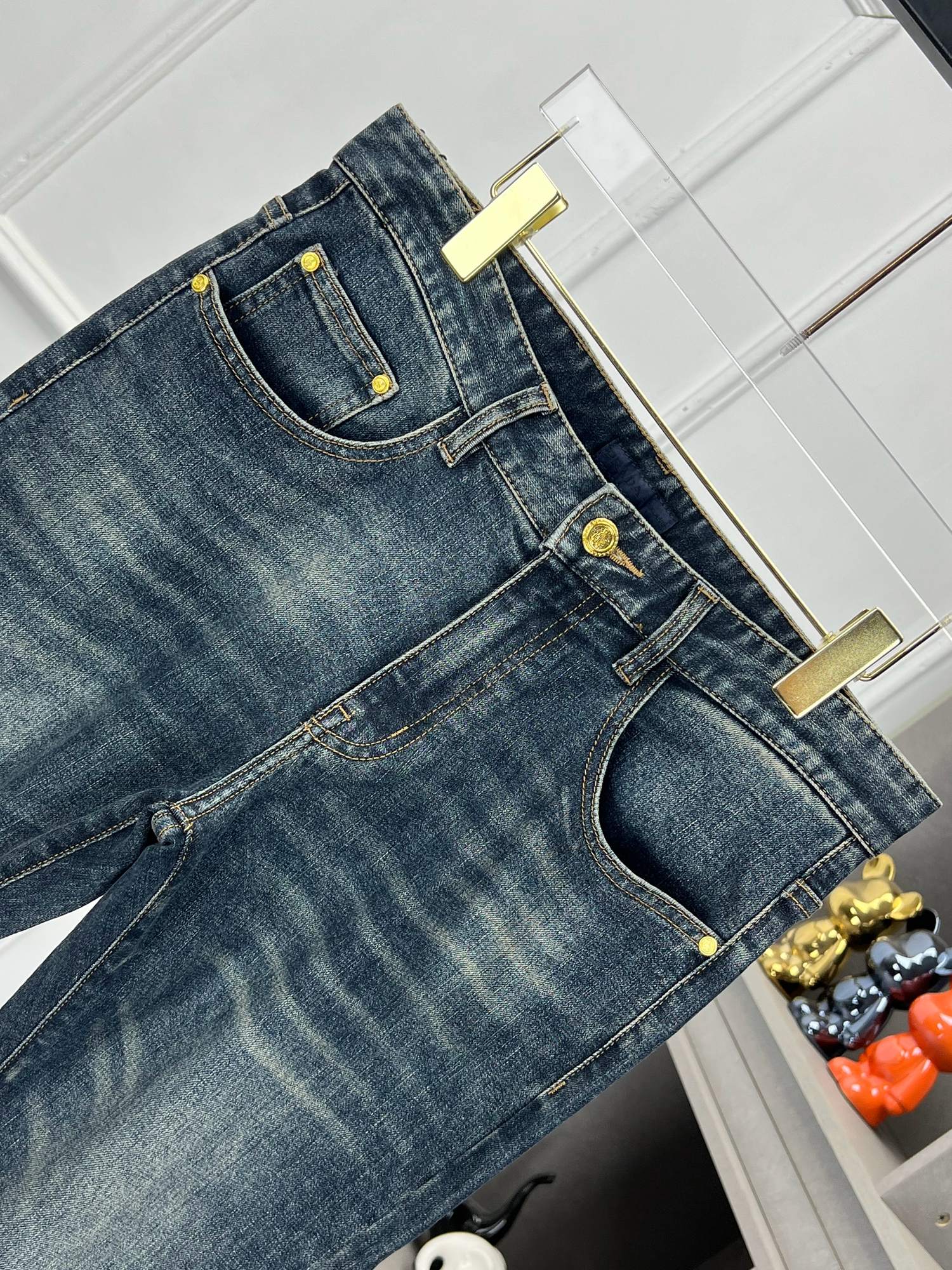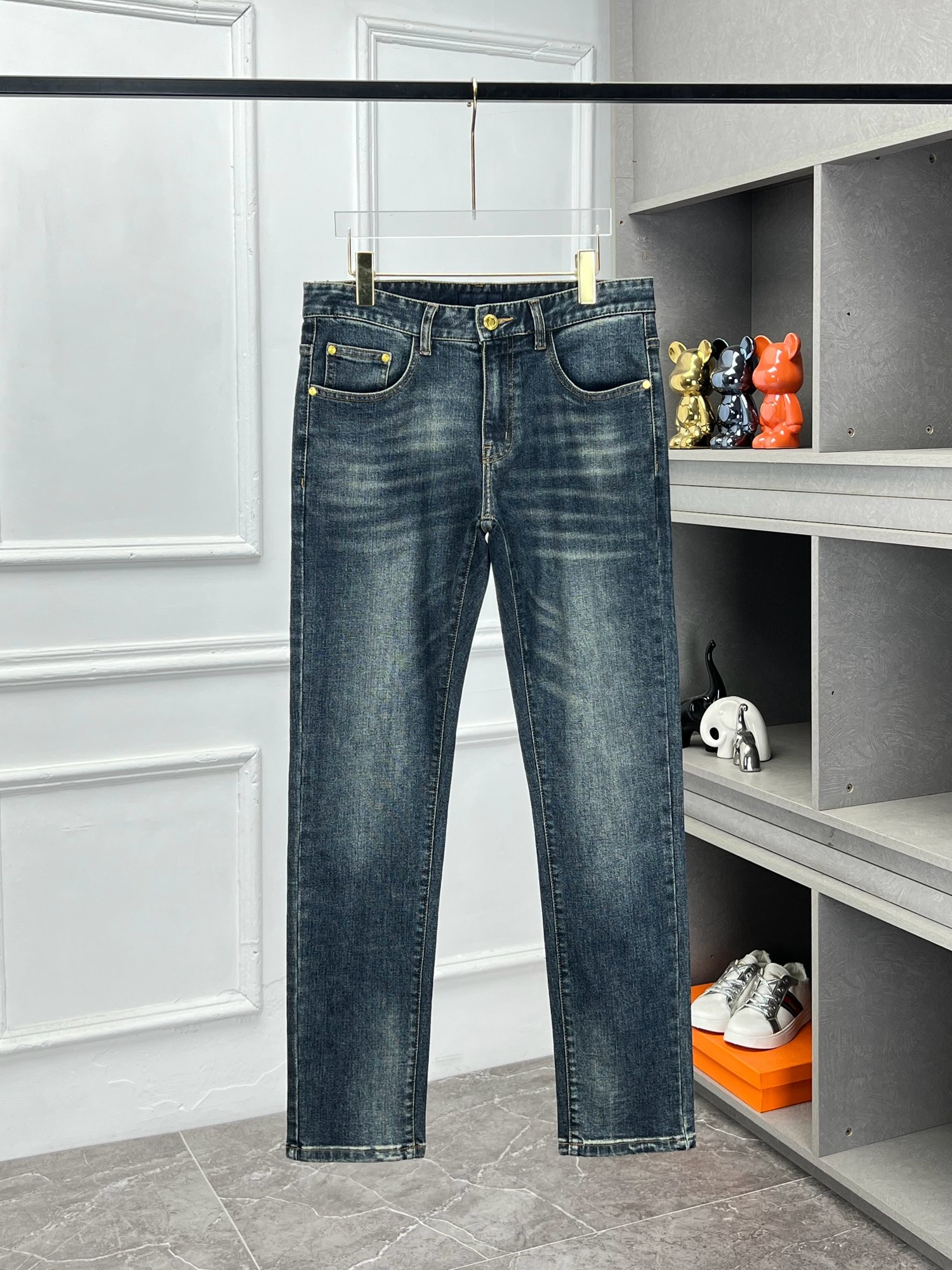 LV Thin Denim Jeans. 2025 latest style. 98% cotton, 2% spandex. Solid, slightly stretchy, comfortable. Simple design, hidden zipper, embossed pockets. Excellent fit.