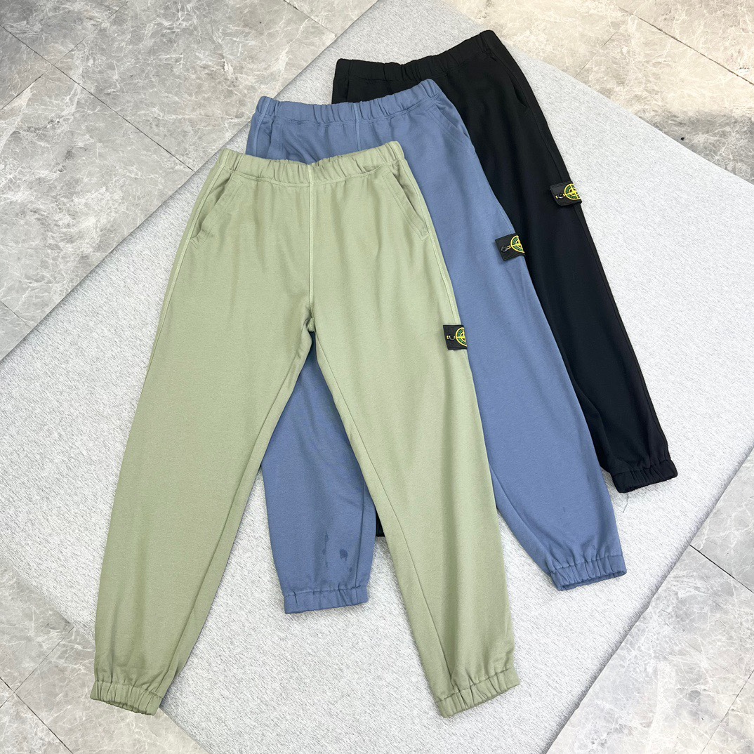 Stone Island new pants with classic embroidered logo, terry fabric, magnetic back pocket, comfortable fit. Sizes M-3XL.