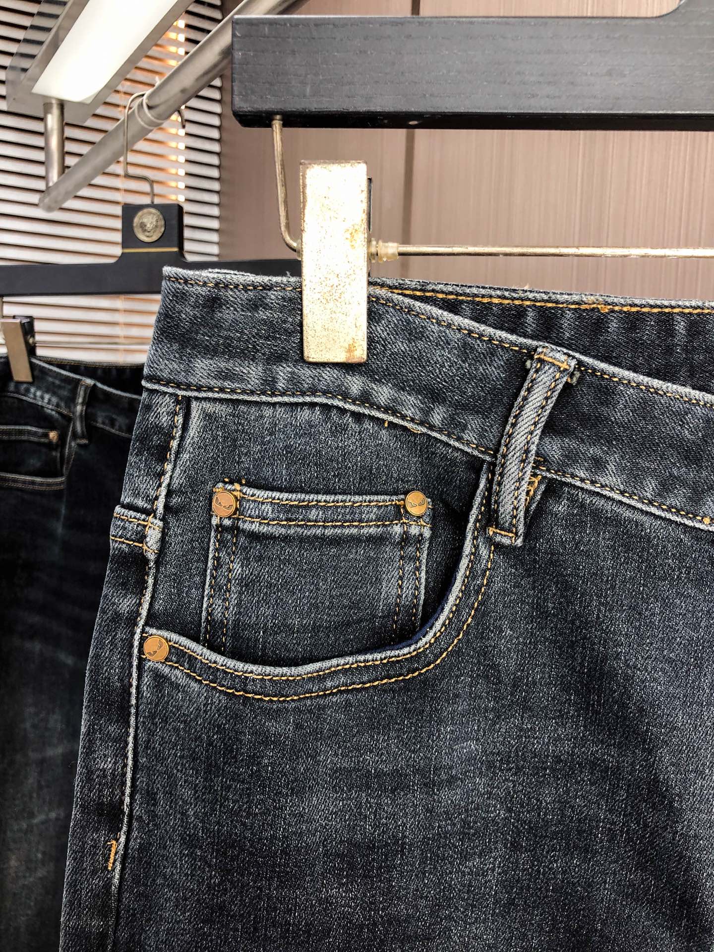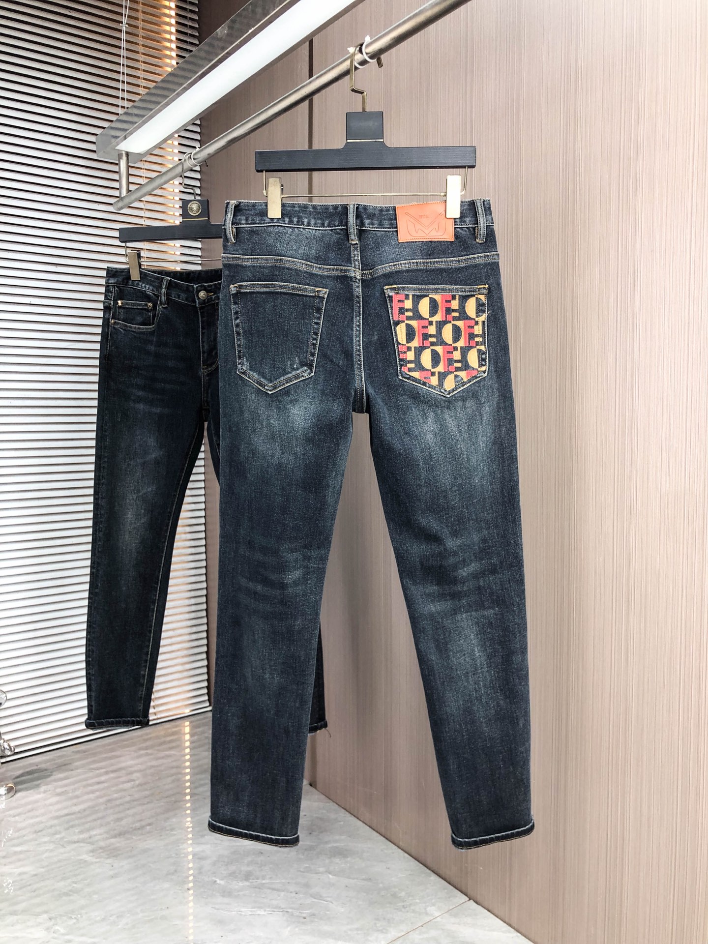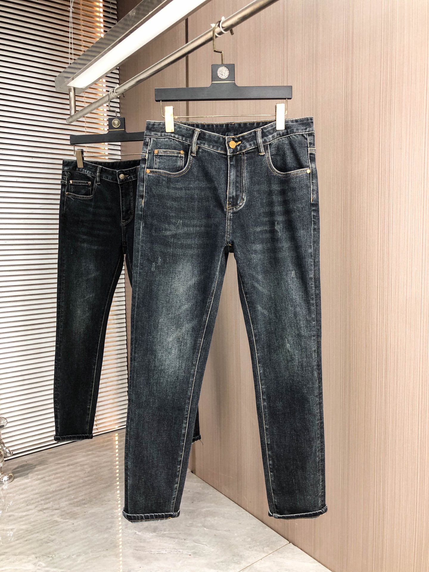 LV Thin Denim Jeans. 2025 latest style. 98% cotton, 2% spandex. Solid, slightly stretchy, comfortable. Simple design, hidden zipper, embossed pockets. Excellent fit.