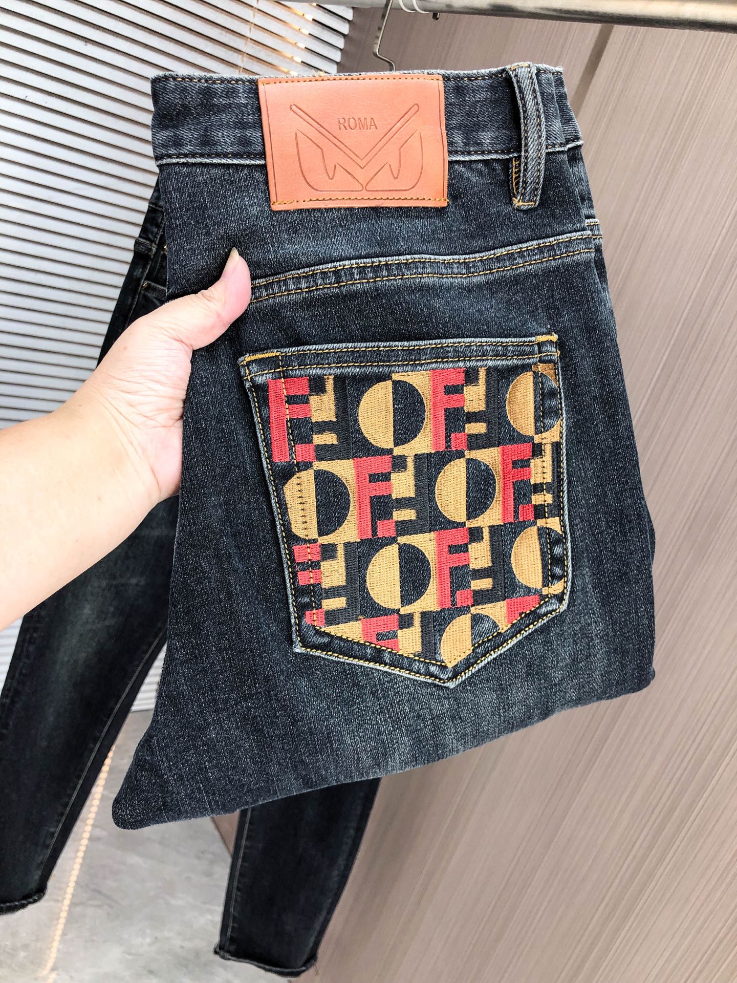 FENDI autumn-winter slim straight jeans. Stretch fabric, comfortable fit. High-quality Turkish denim, enzyme washed for softness. Sizes 29-38 available.