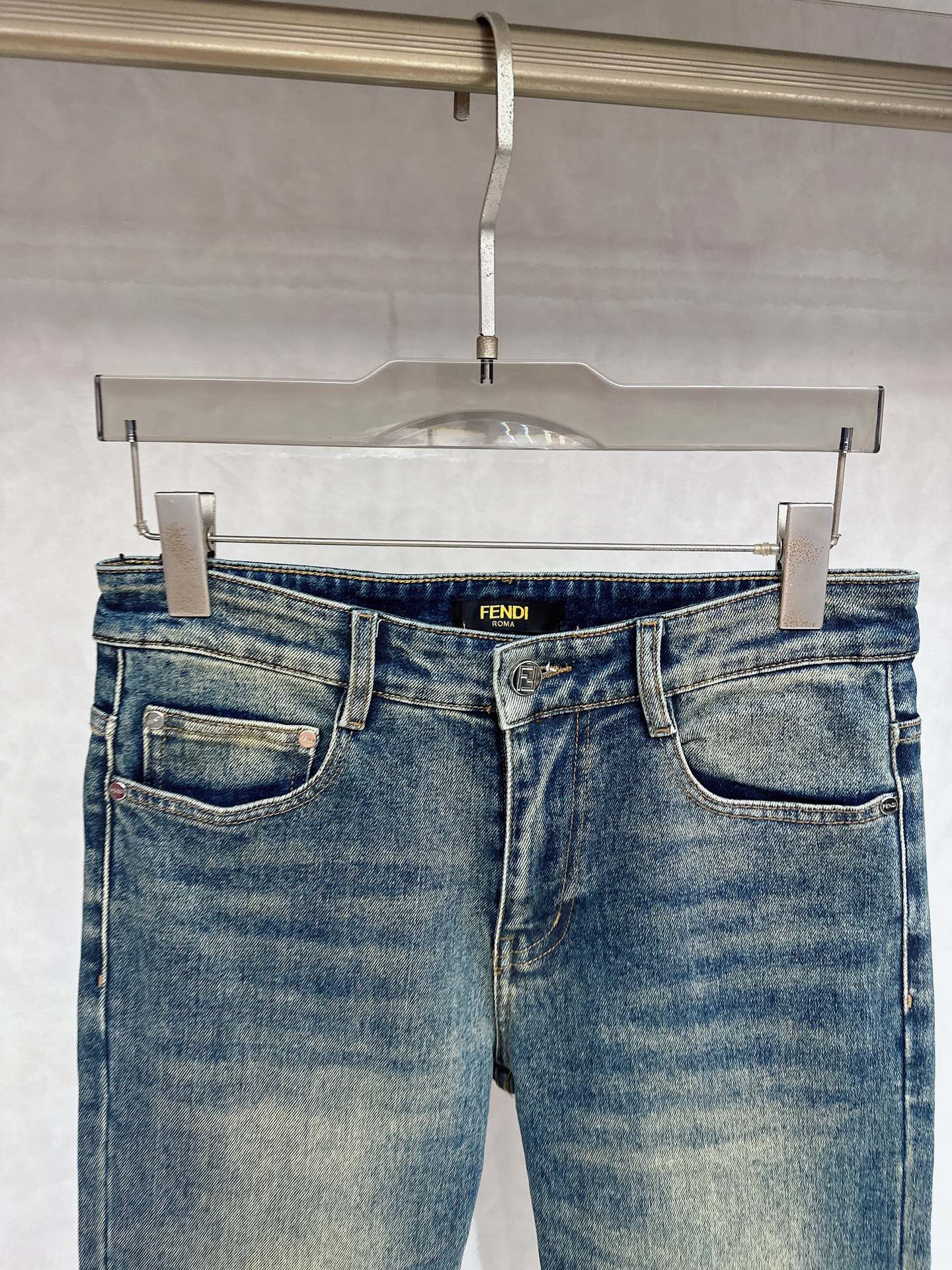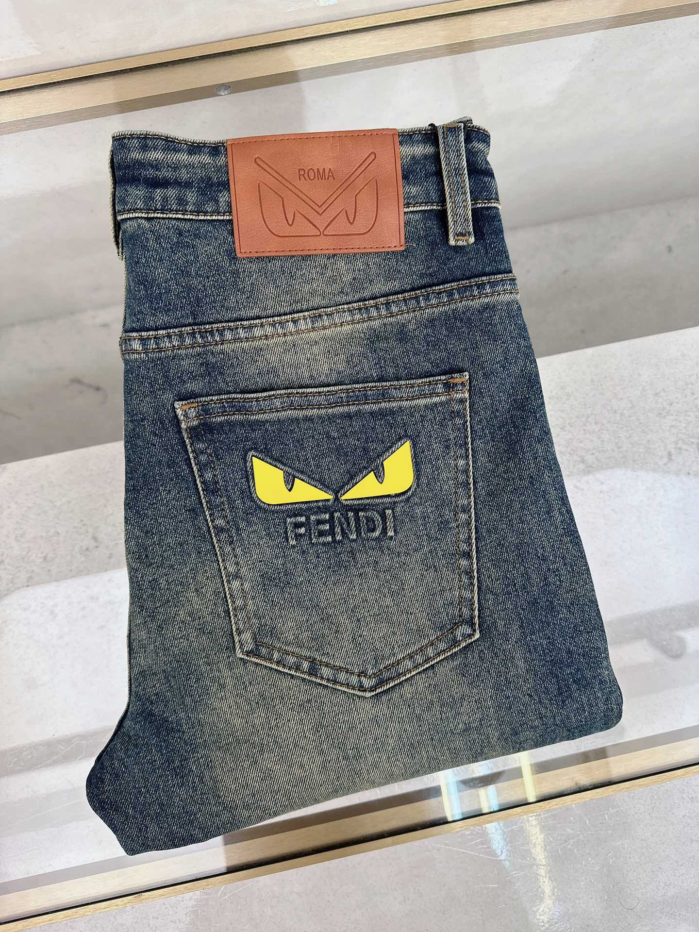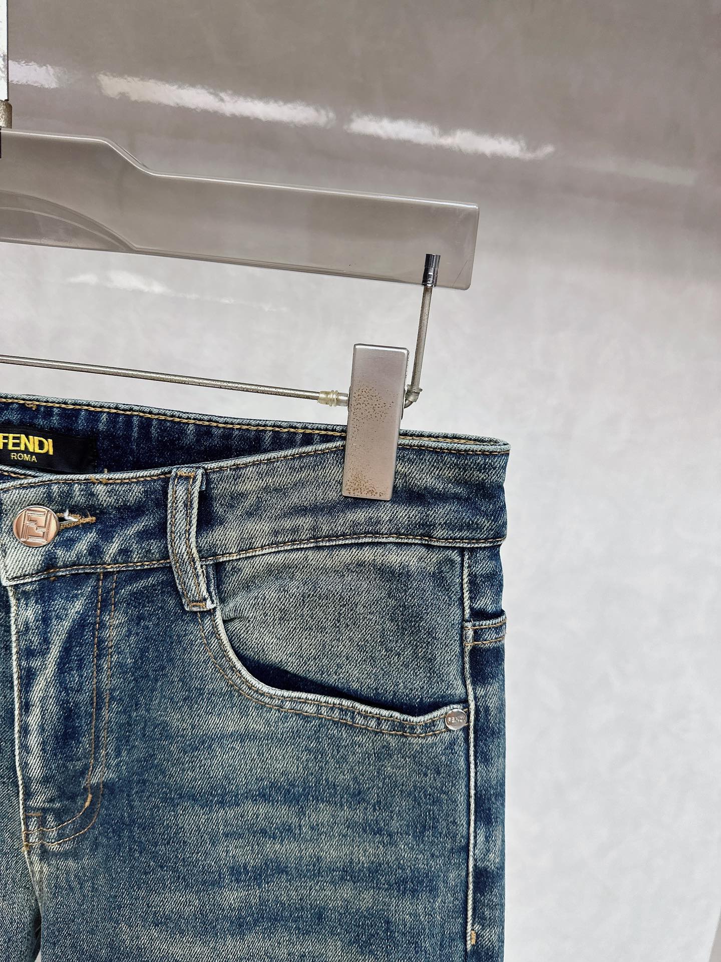Fendi 2025 Fall/Winter high-quality jeans, slim fit, stretchy, comfortable. Classic logo, minimalist European style, sizes 29-38.