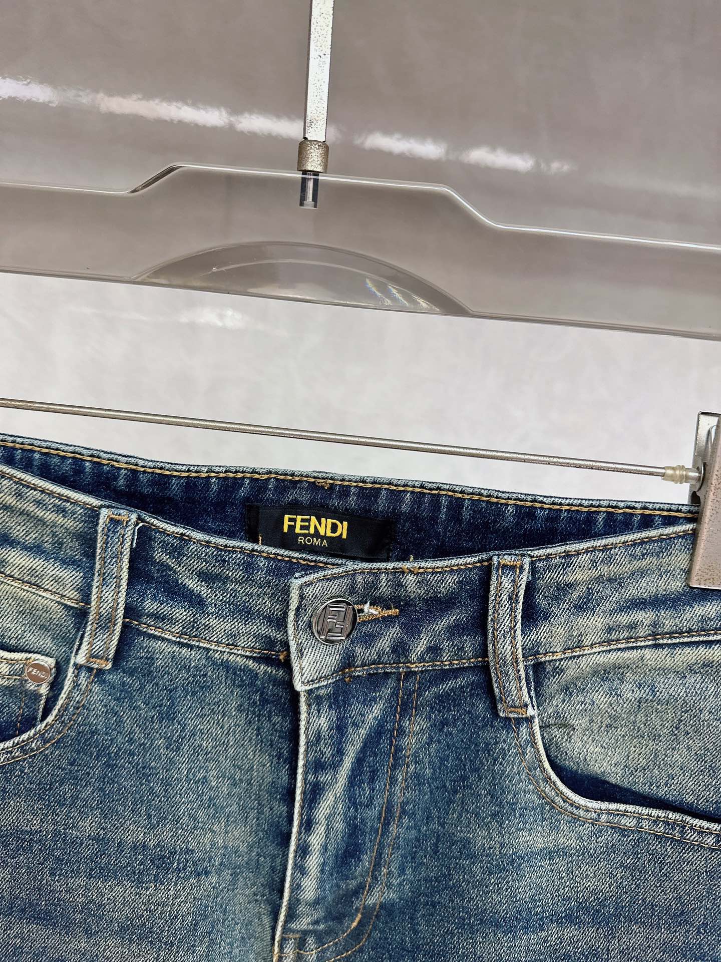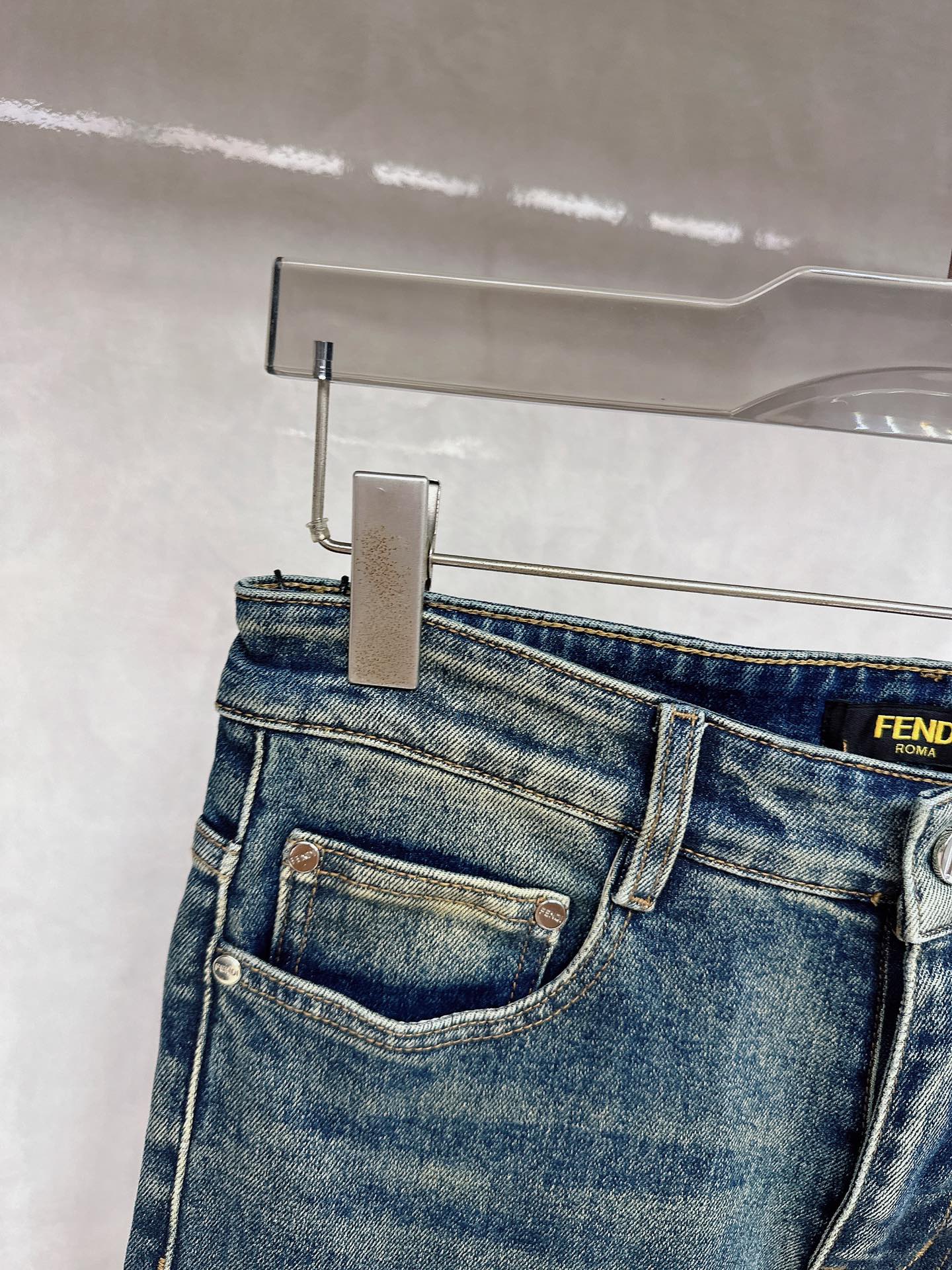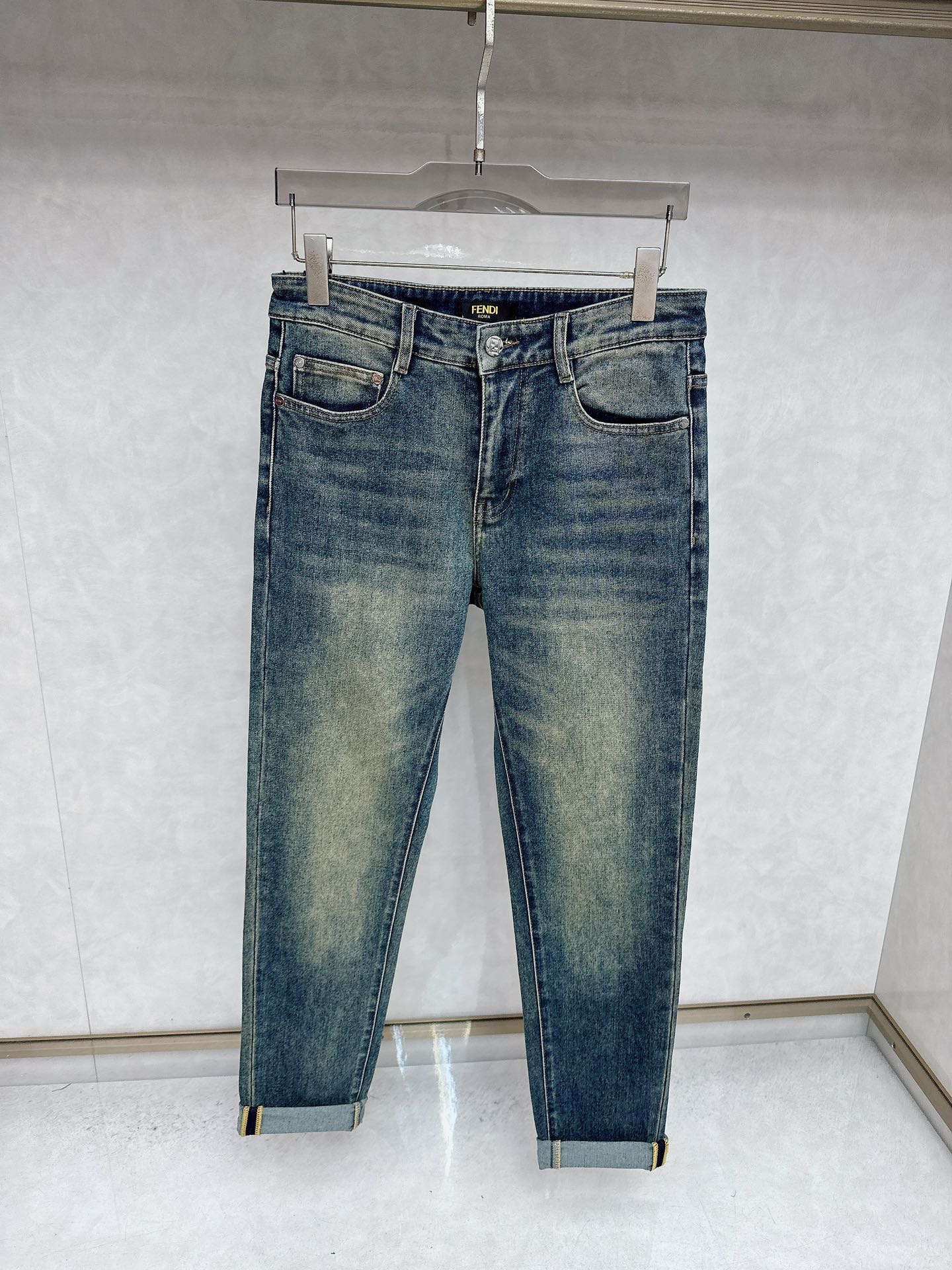 Fendi 2025 Fall/Winter high-quality jeans, slim fit, stretchy, comfortable. Classic logo, minimalist European style, sizes 29-38.