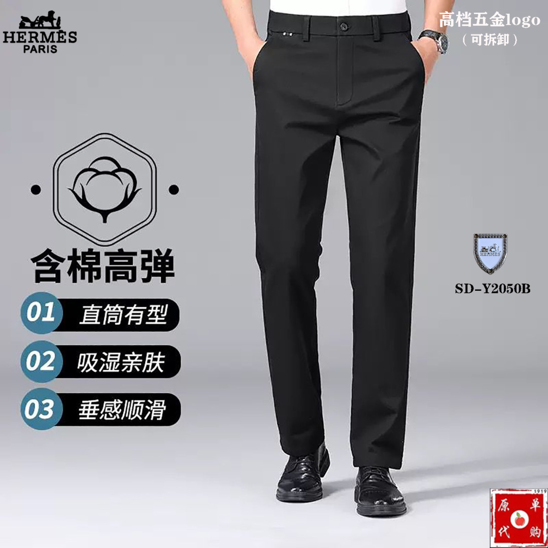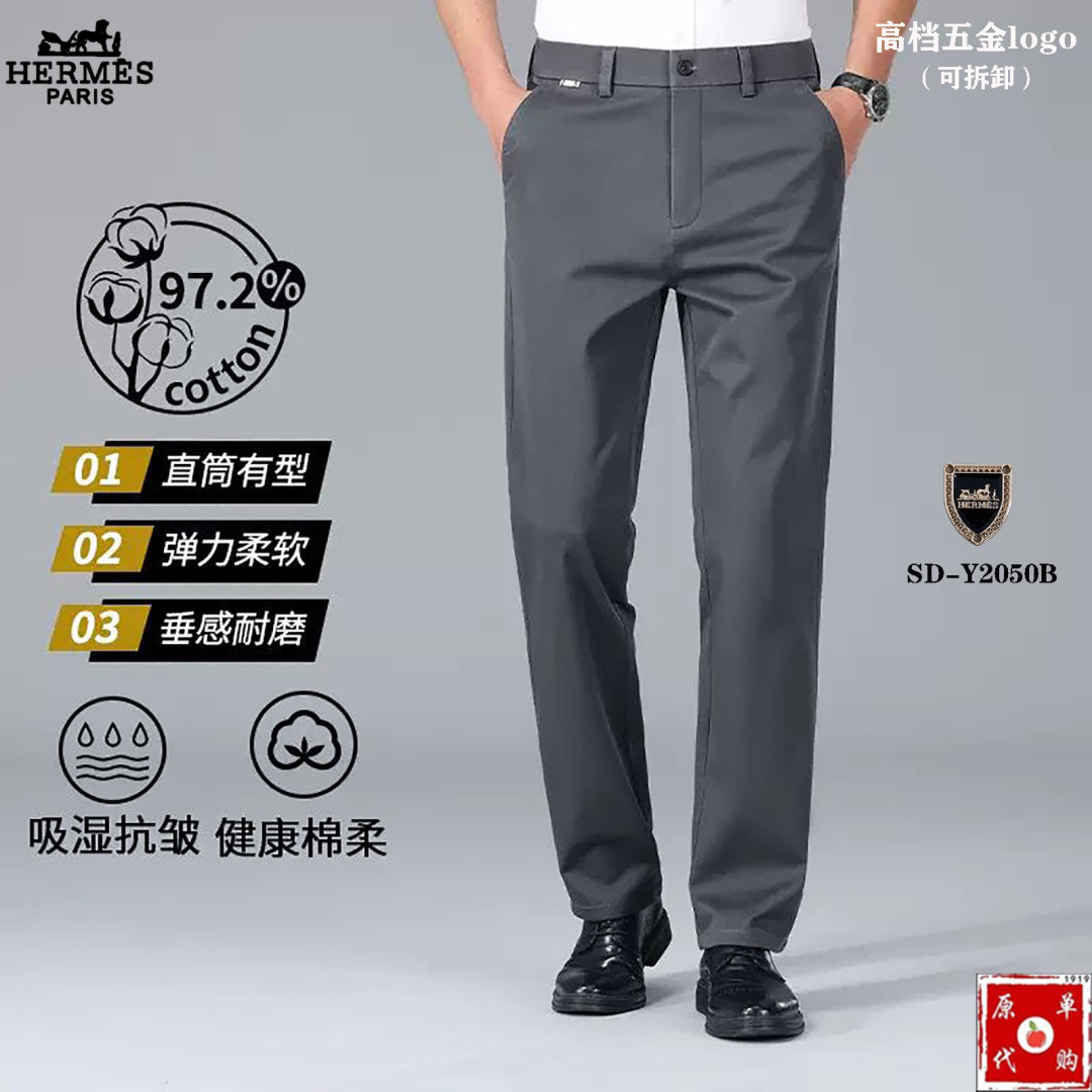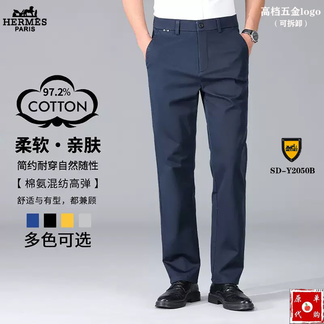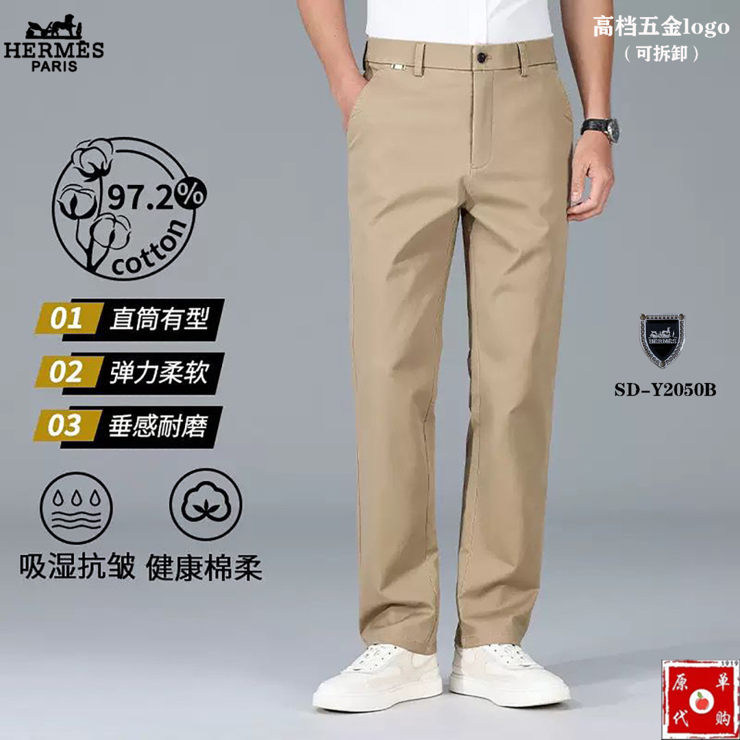 Hermes 2025 summer casual pants. Comfortable, low-key luxury. Premium Turkish cotton, heavy wash for softness. Straight leg, versatile fit. Sizes 29-40.