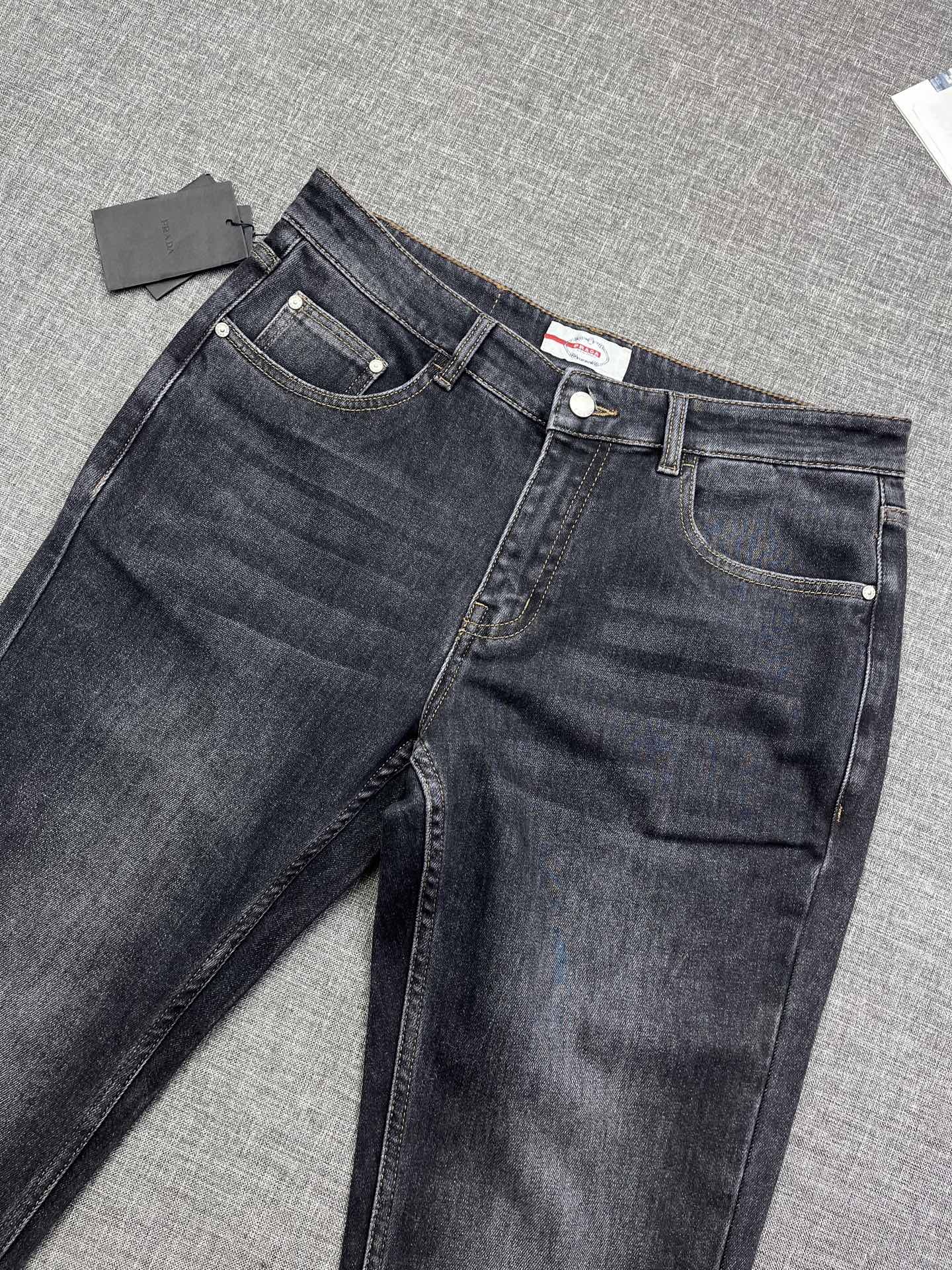 PRADA soft washed jeans. Slim fit, stretchy vintage style. Unisex, sizes 29-38. Limited stock.