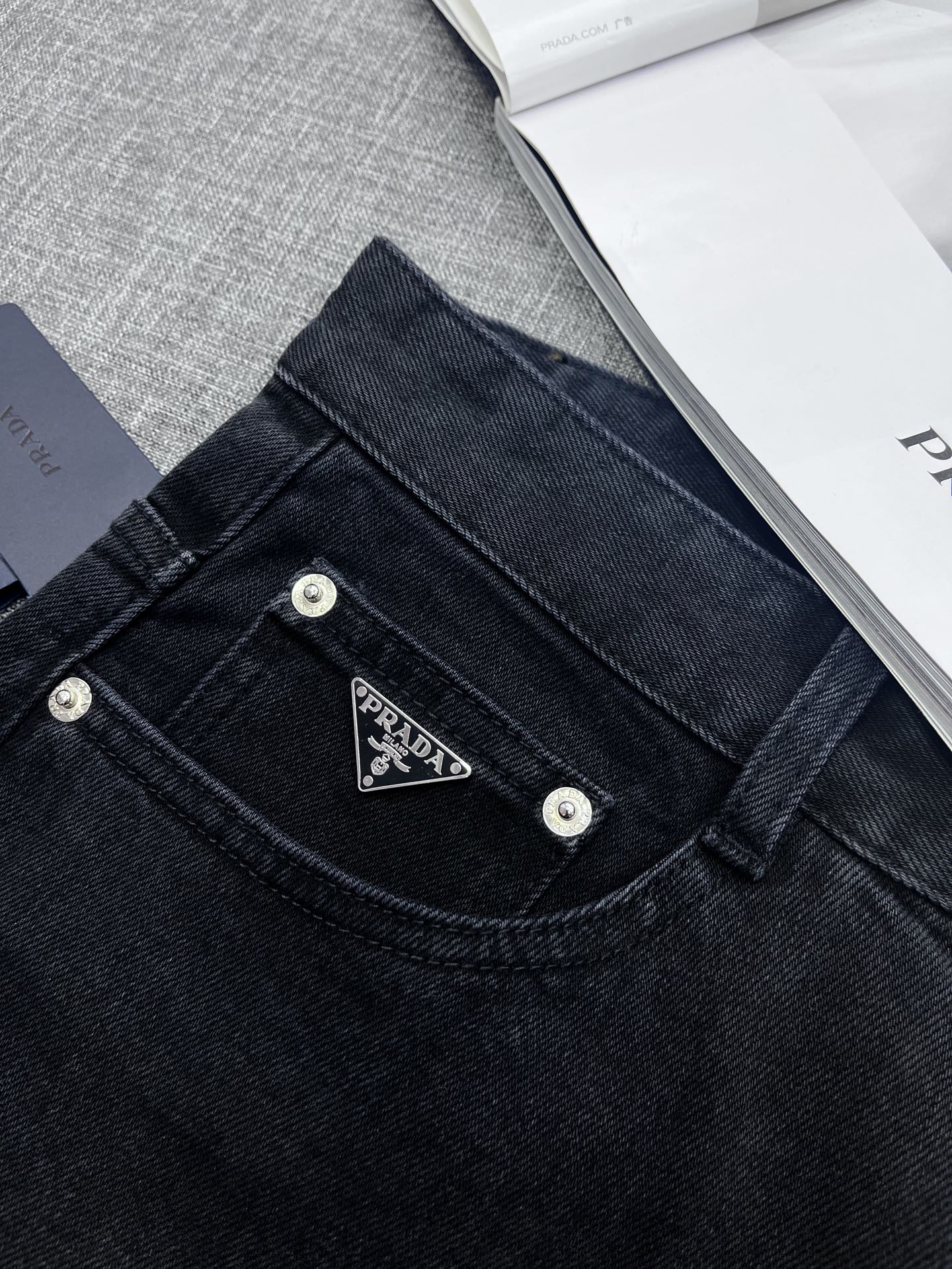 PRADA soft washed jeans. Slim straight cut, stretchy vintage denim. Versatile, comfortable, limited stock. Sizes 29-38.