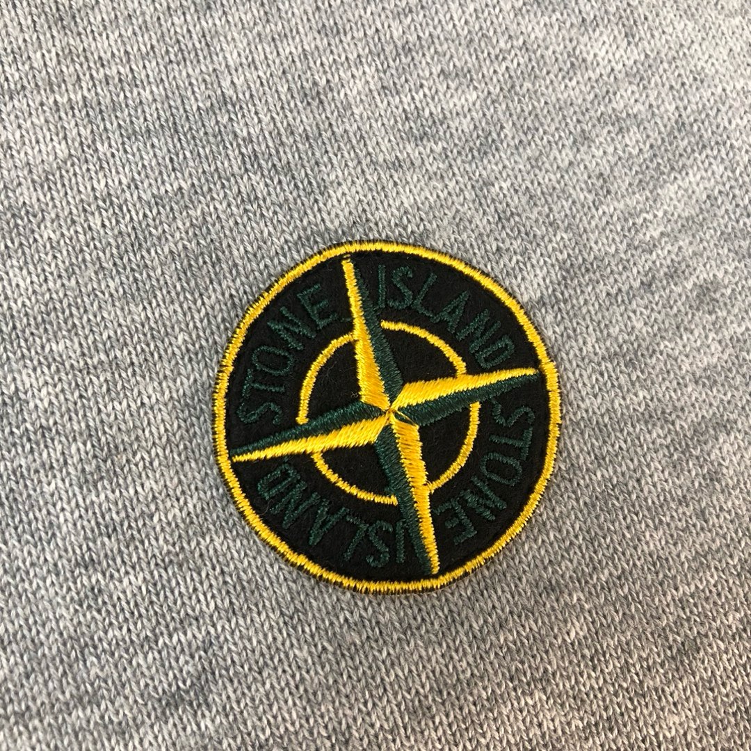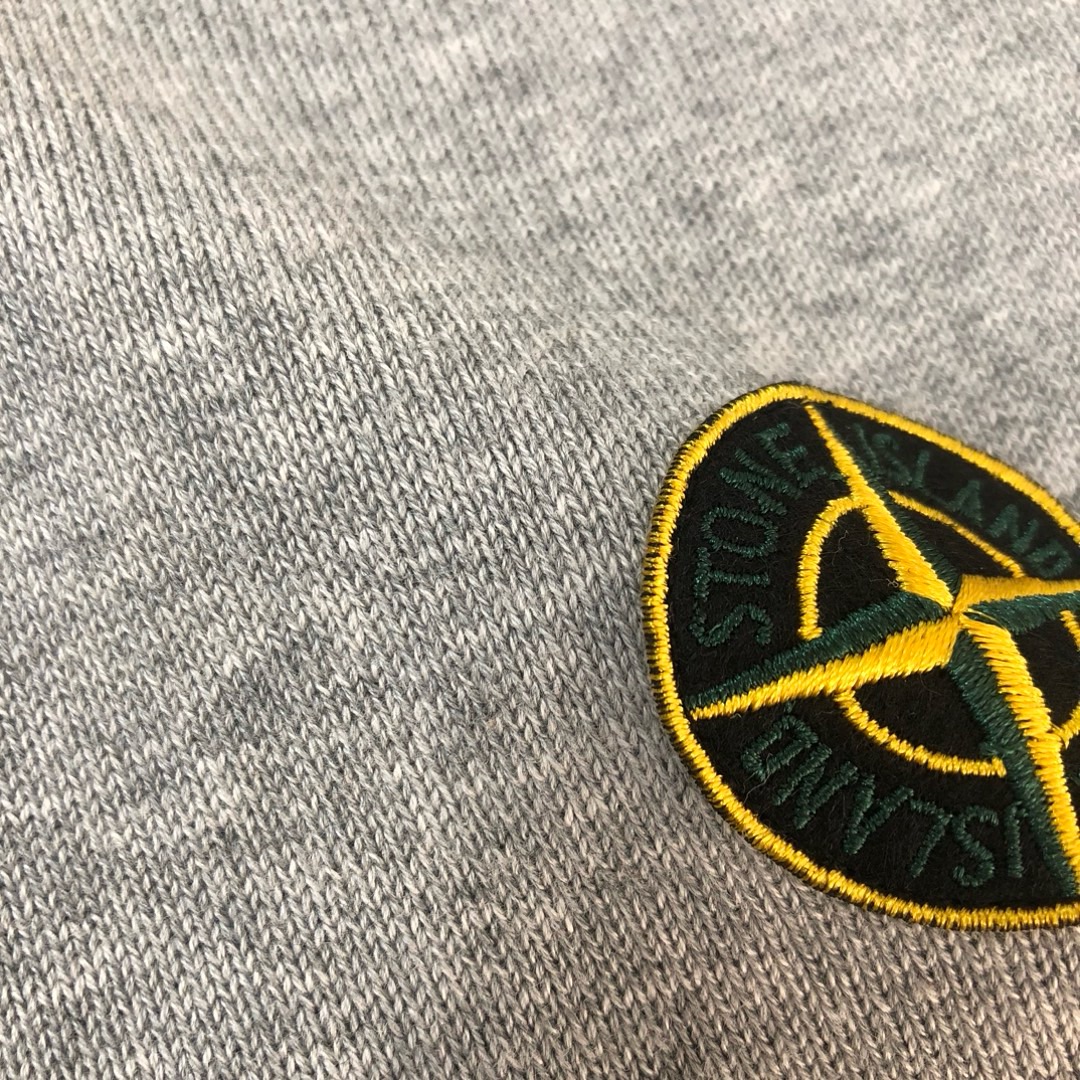 STONE ISLAND men's knit sweater. Round neck, versatile design. Imported soft fabric. Colors: black, off-white, gray. Sizes: M-3XL.