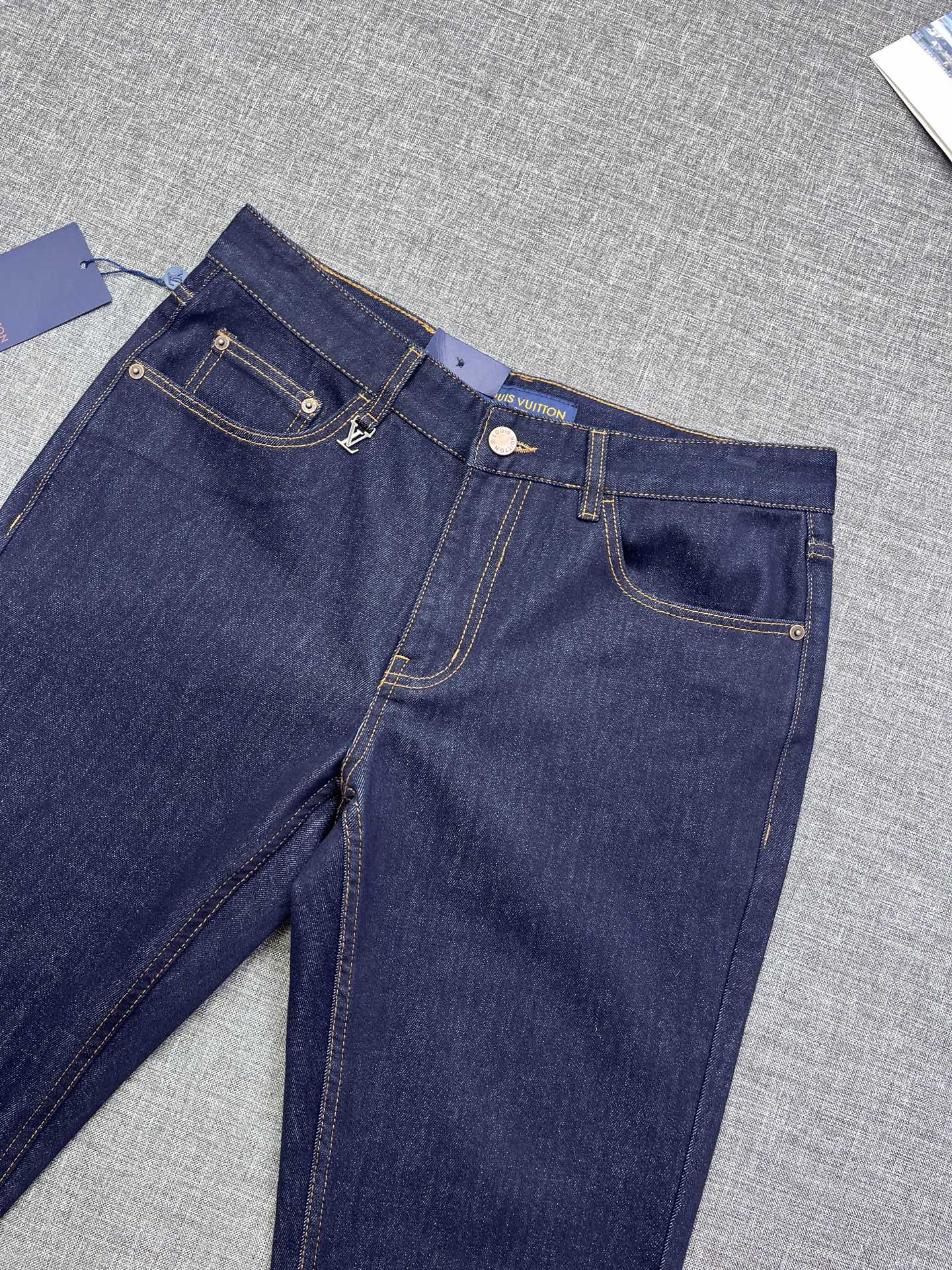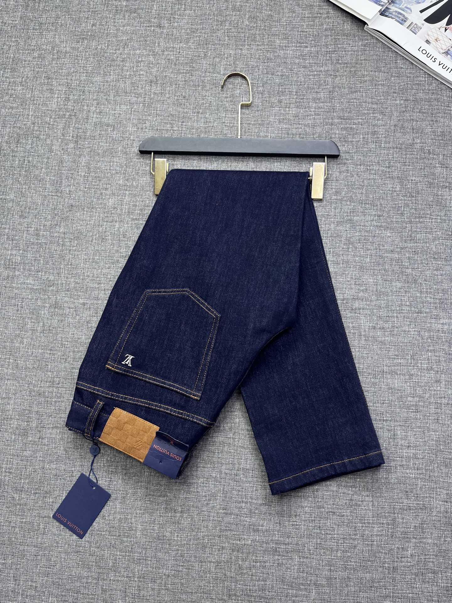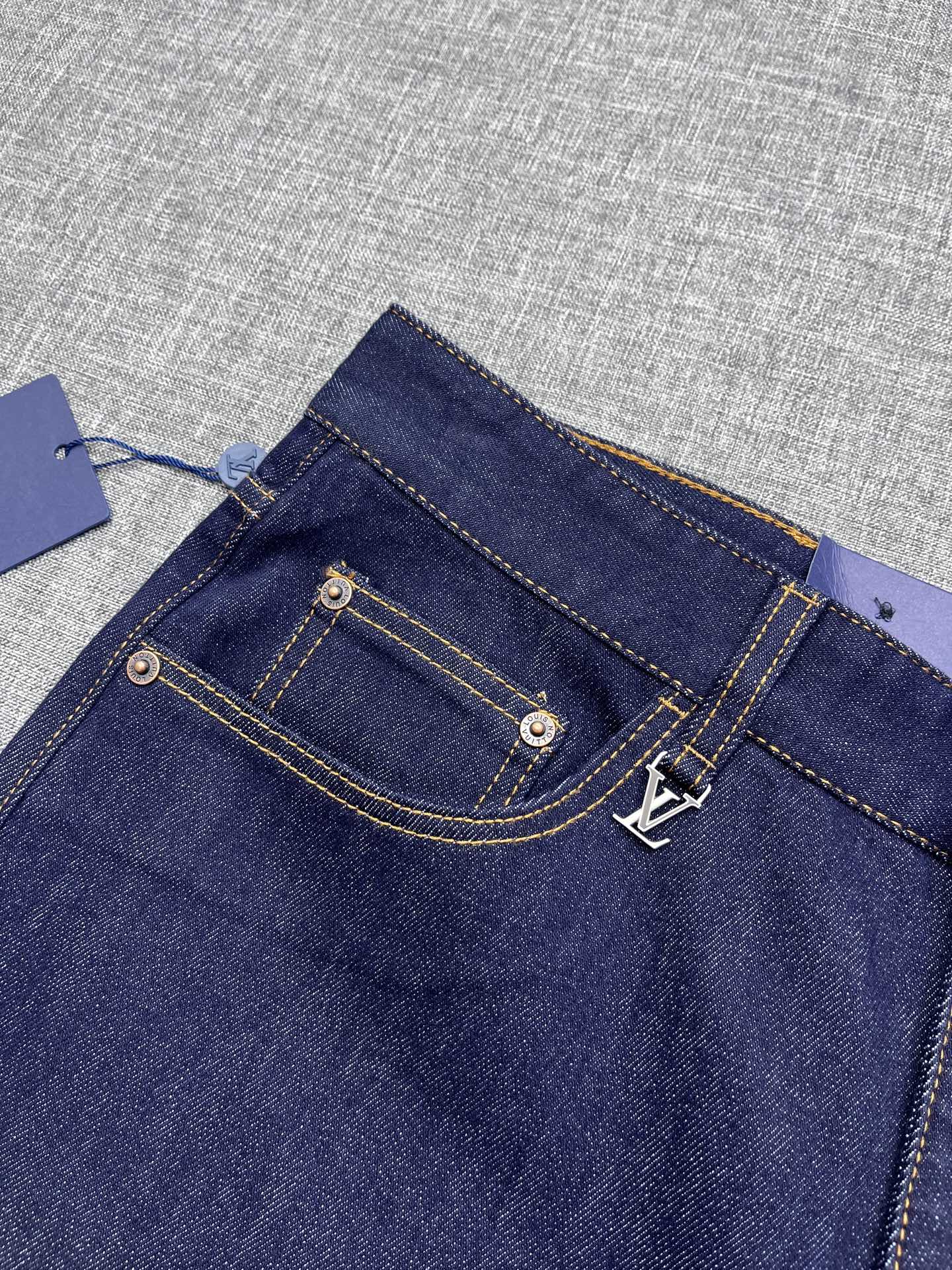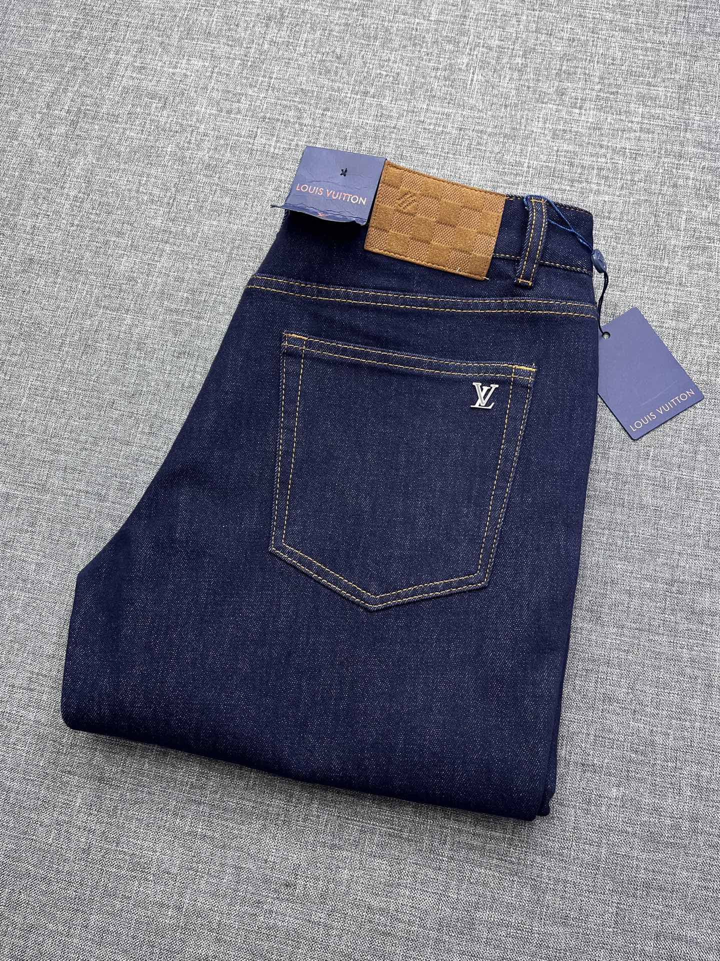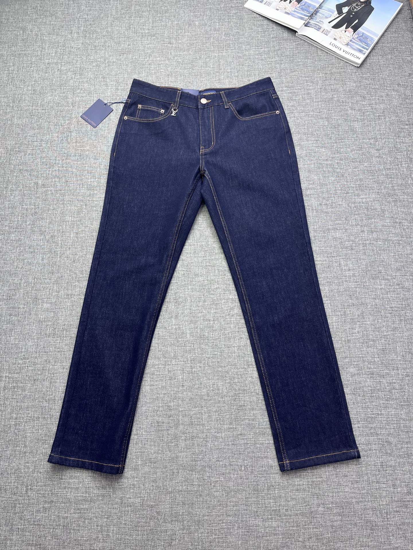 Louis Vuitton men's 2025 straight-leg jeans. Premium denim, eco wash, vintage tones. Soft, structured, slight stretch. Perfect fit, versatile. Sizes 29-38.