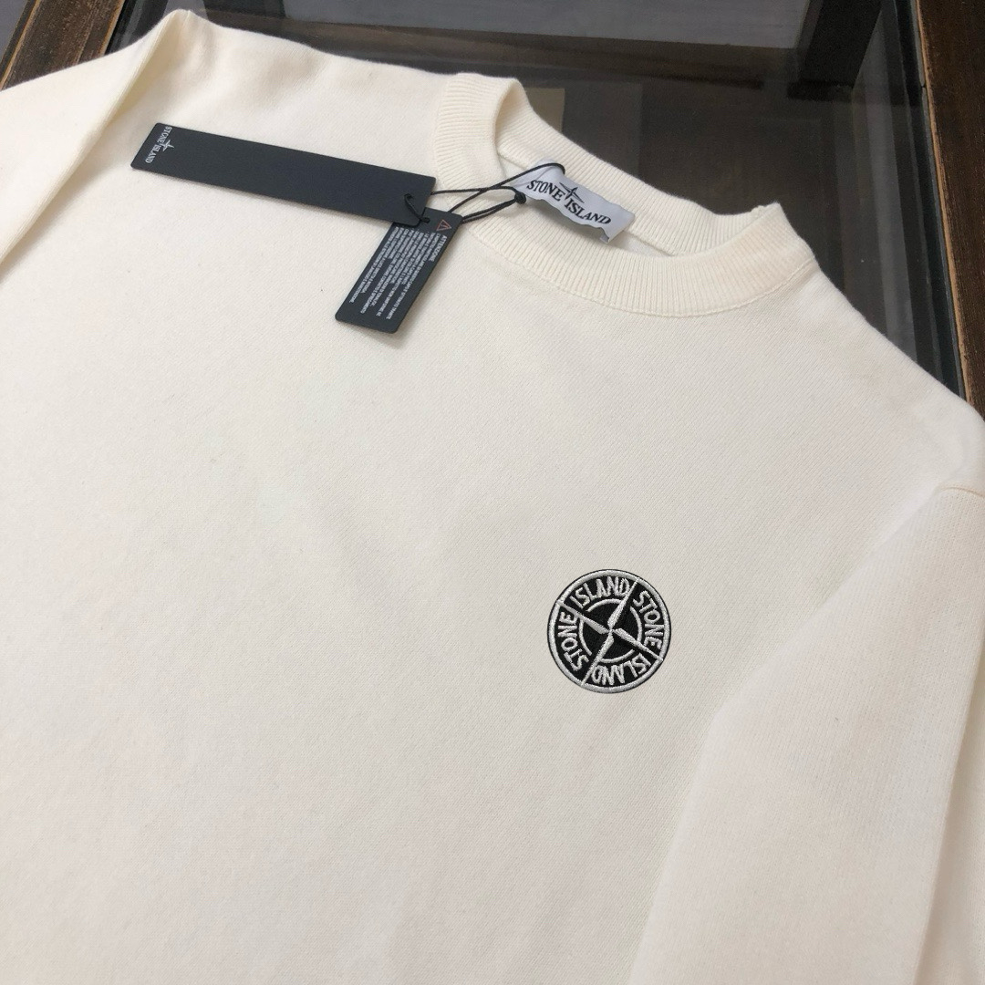 STONE ISLAND men's knit sweater. Imported fabric, soft, comfortable. Minimalist design with compass logo. Colors: black, beige, gray. Sizes: M-3XL.