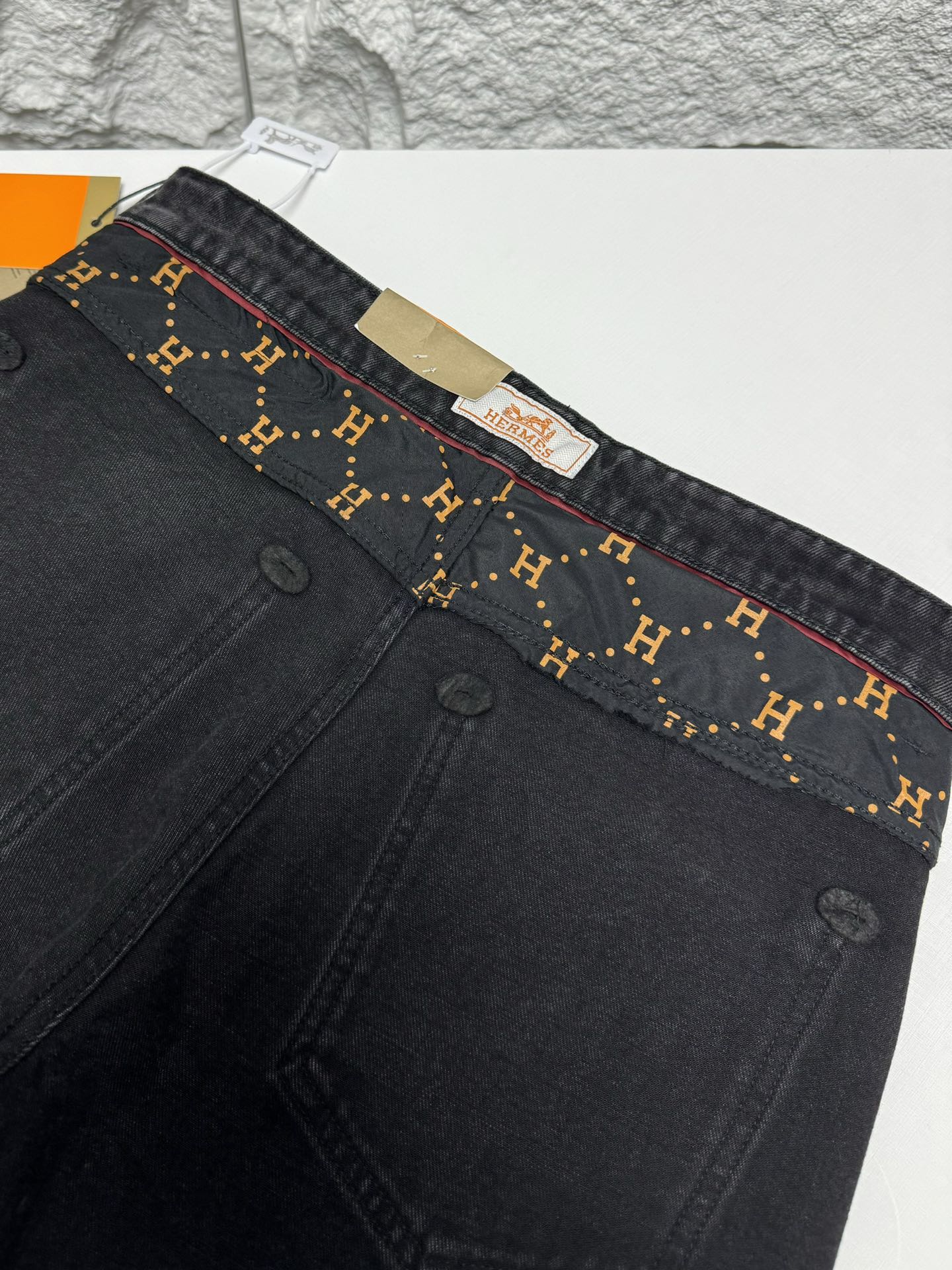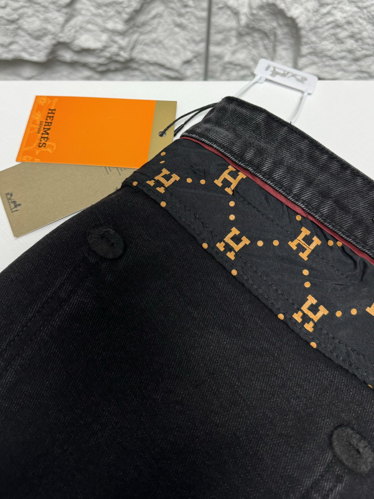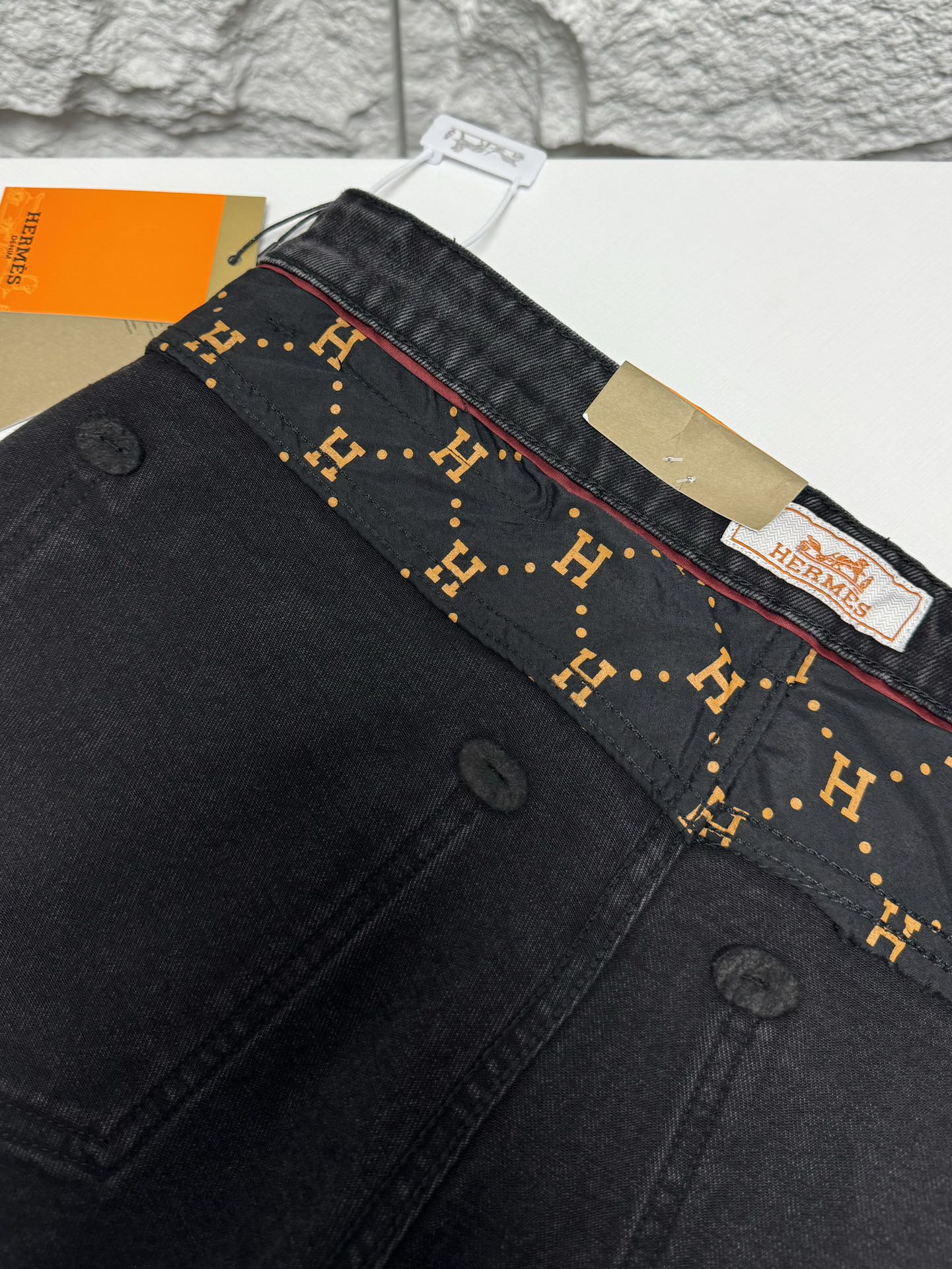 Hermes 2025 autumn winter men's casual jeans. High quality cotton, soft skin friendly fabric, excellent drape. Classic logo waistband, versatile stylish design.