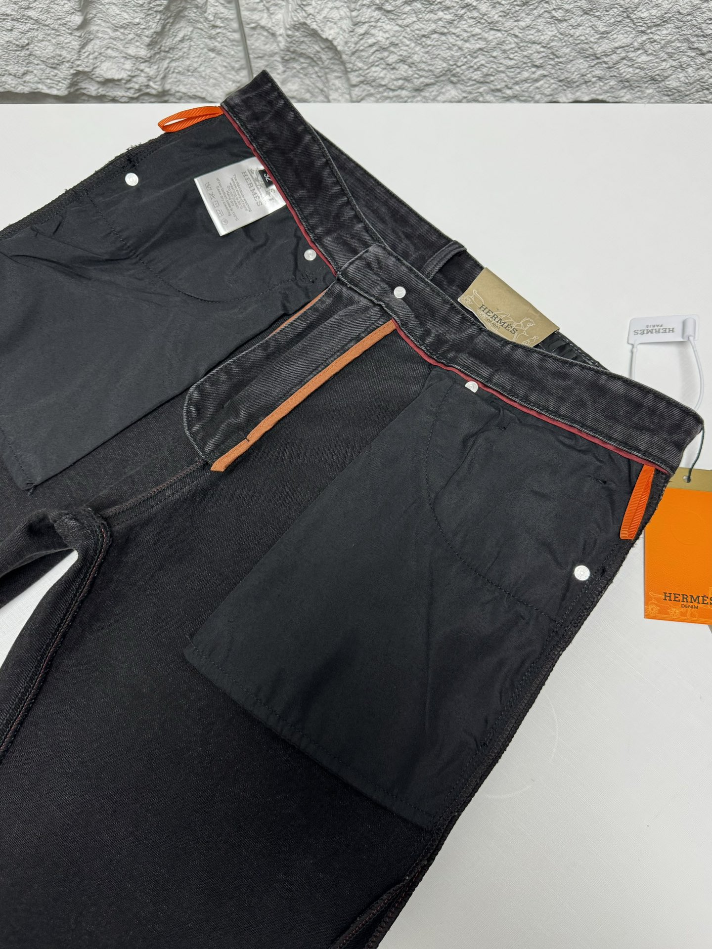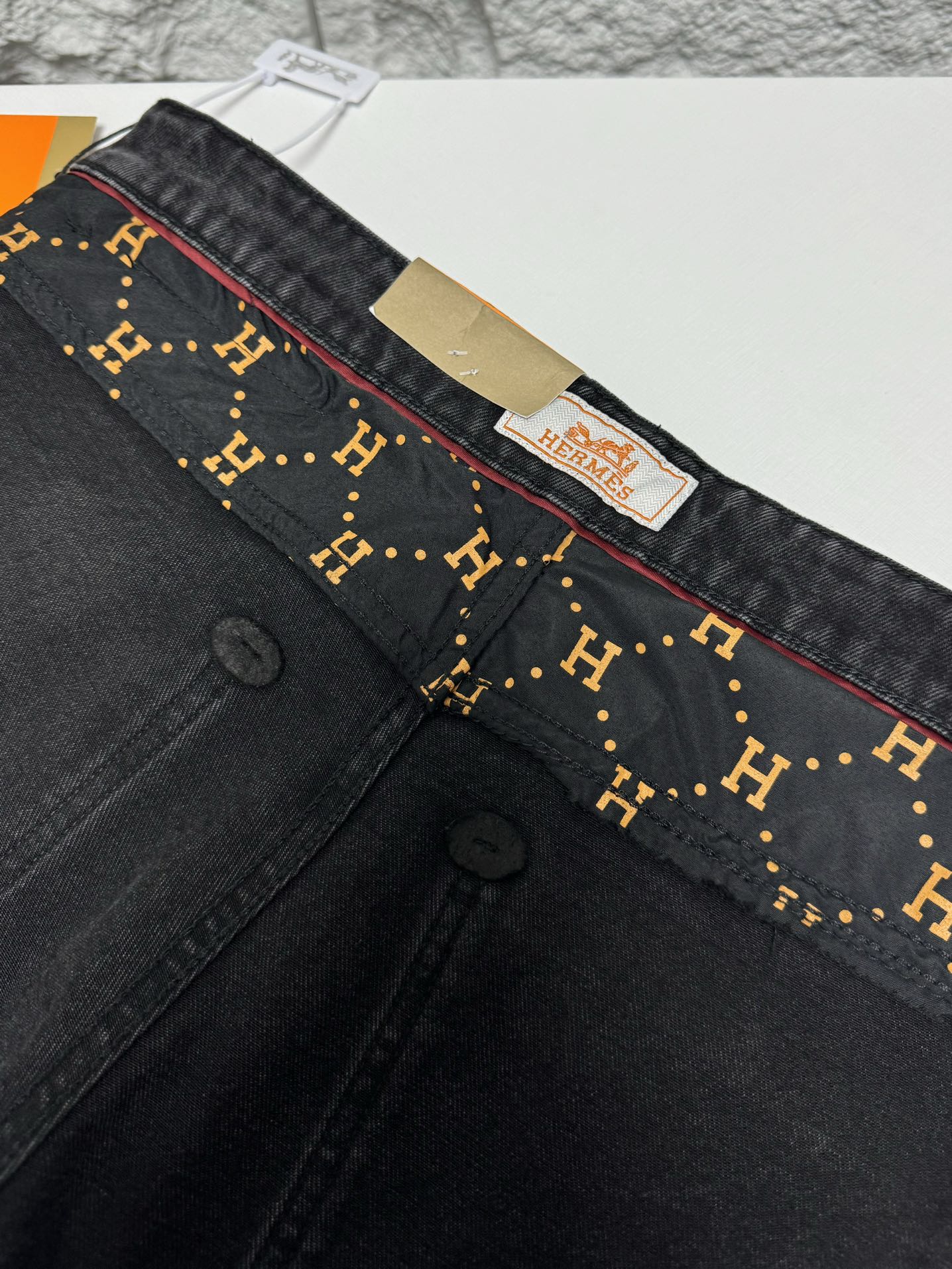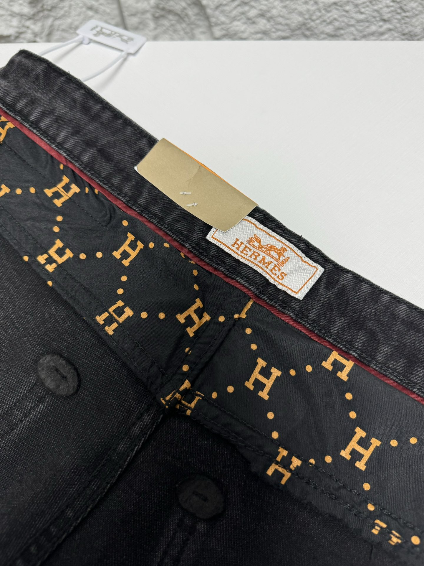 Hermes 2025 autumn winter men's casual jeans. High quality cotton, soft skin friendly fabric, excellent drape. Classic logo waistband, versatile stylish design.
