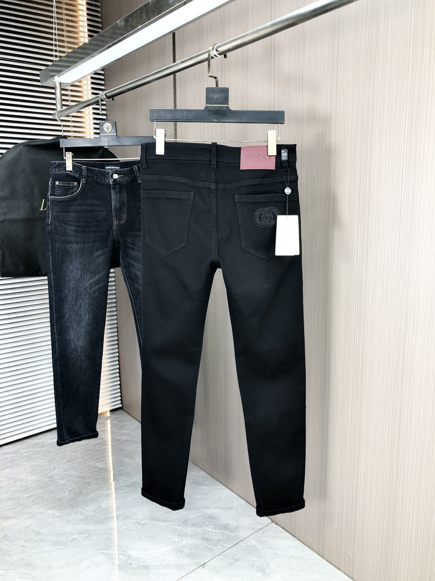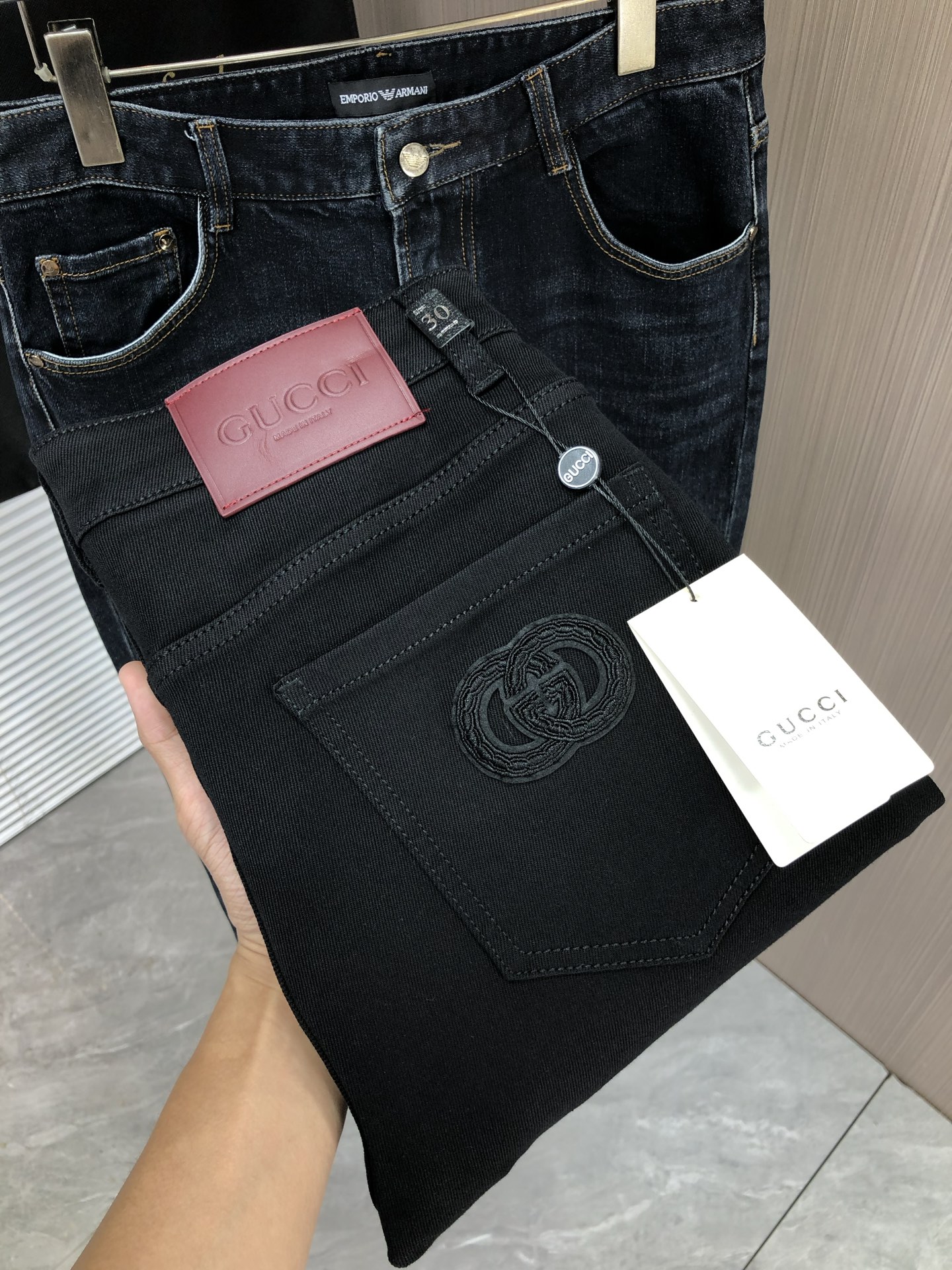Home•Apparel•Jeans•GUCCI slim straight-leg jeans for autumn and winter. Stretch fabric, comfortable fit, high recognition. Made from Turkish cotton, soft after washing. Sizes 29-36, 38 available.