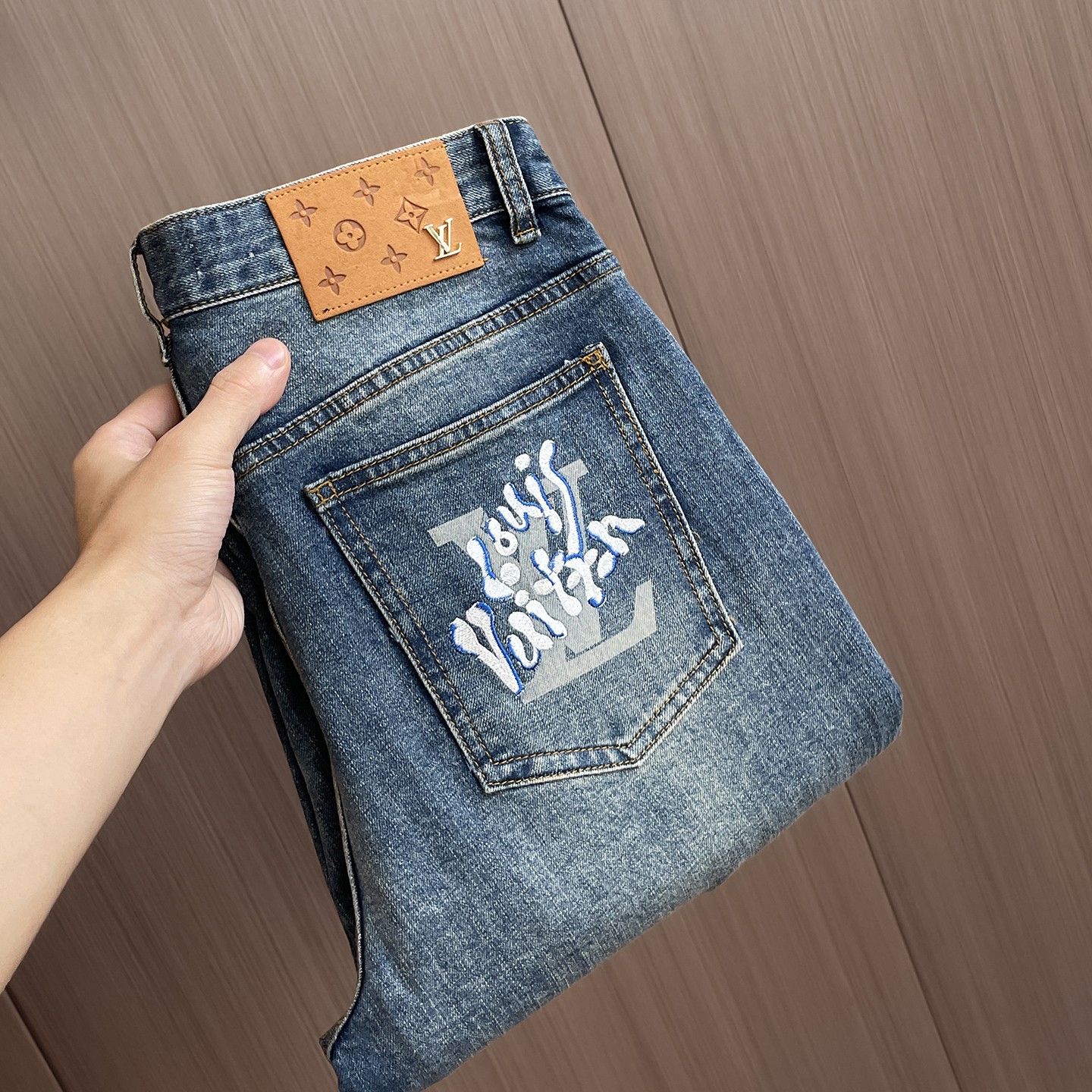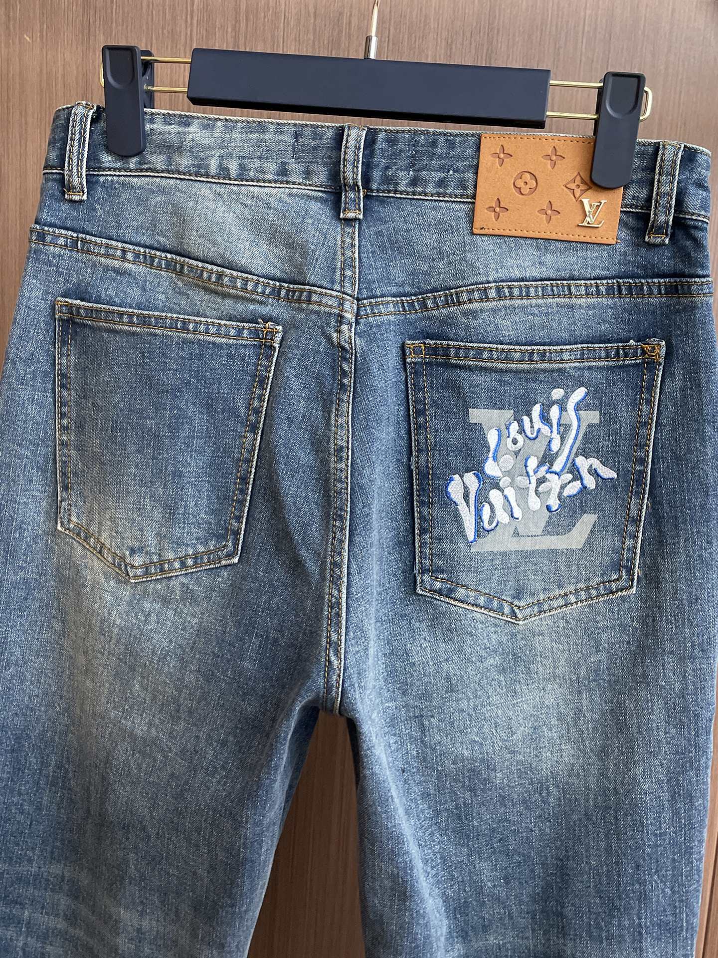 LV 65ss autumn/winter new high-end washed jeans. Original design, custom hardware logo, embroidery. Soft, resilient denim, comfortable fit. Sizes S-XL.