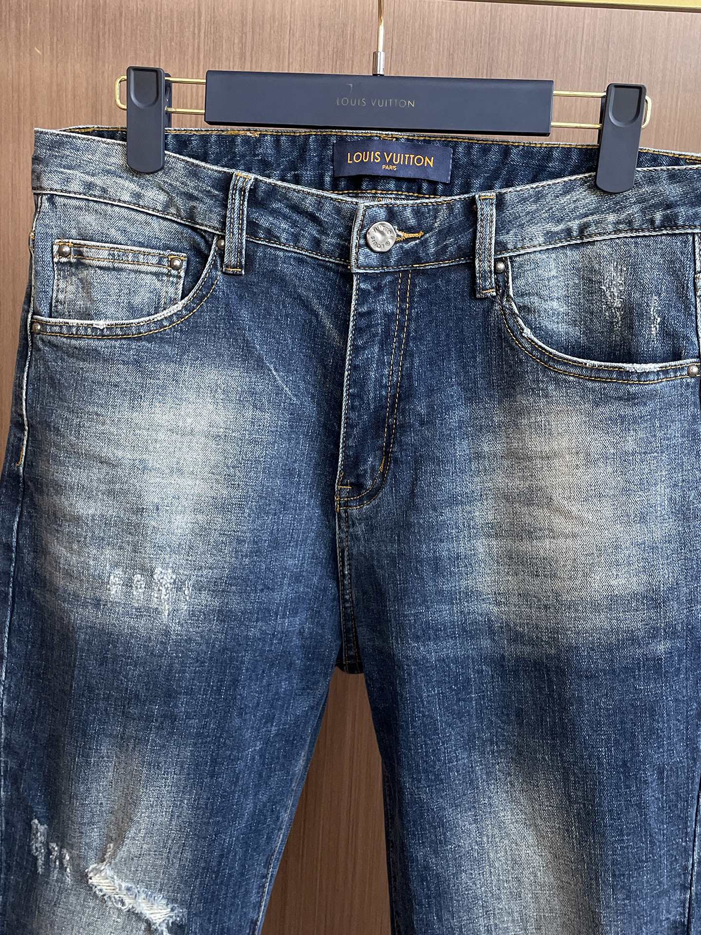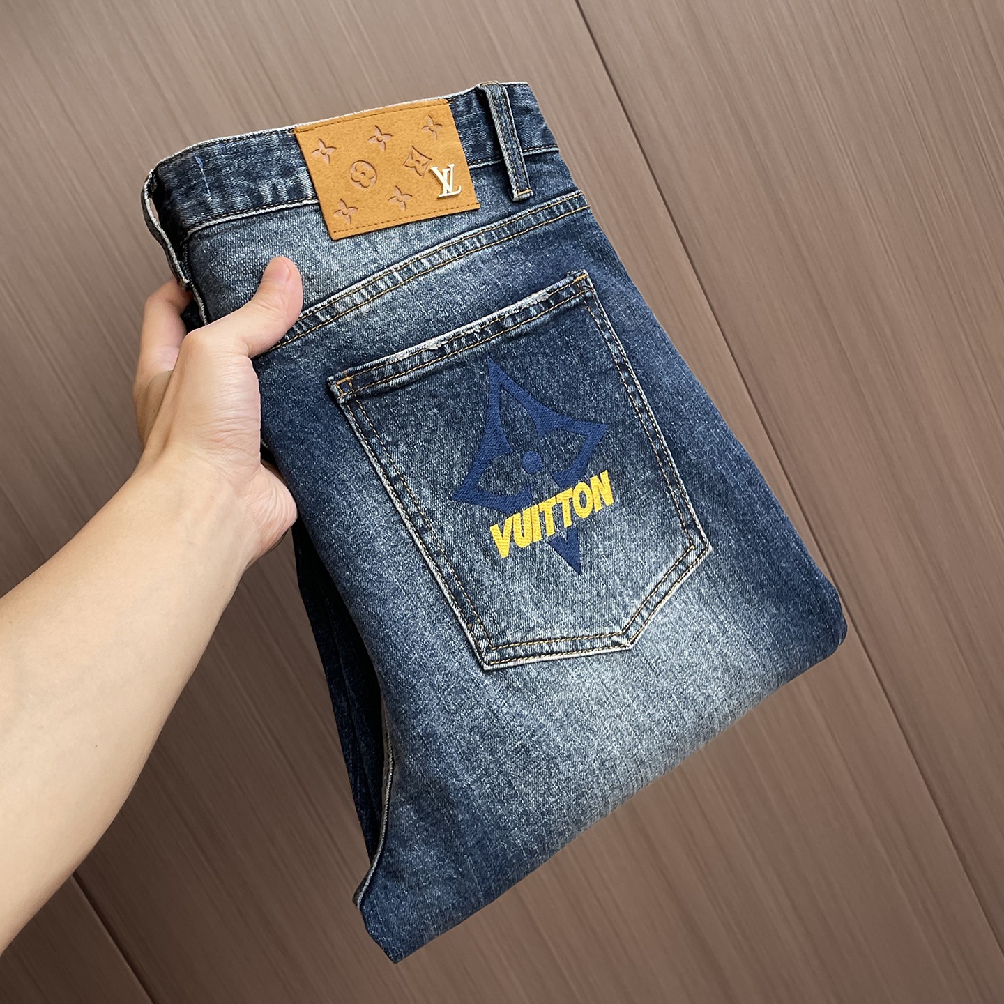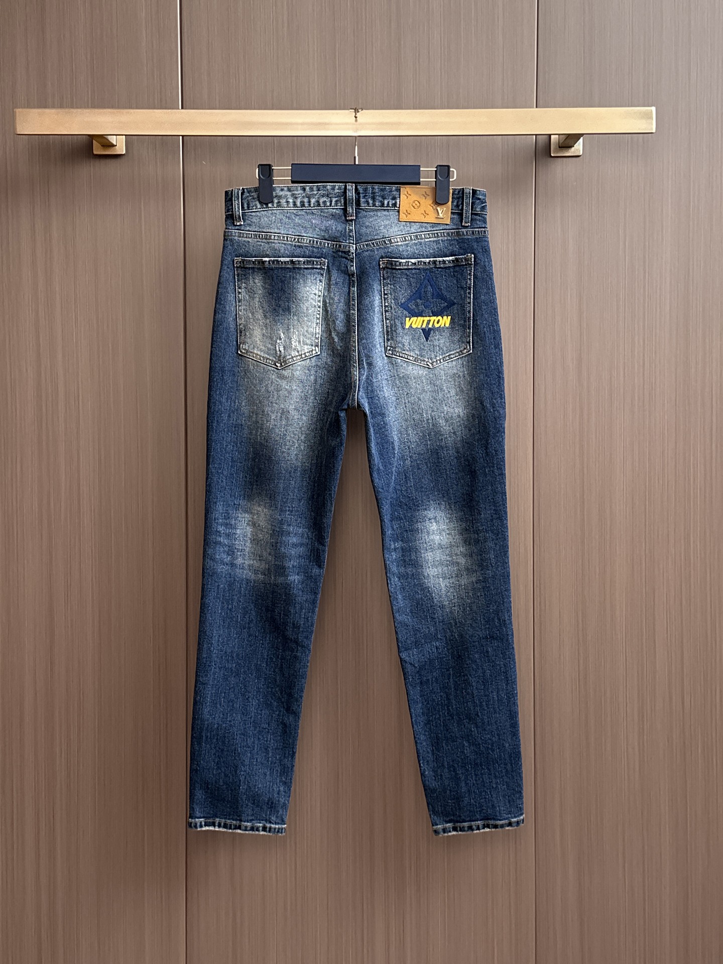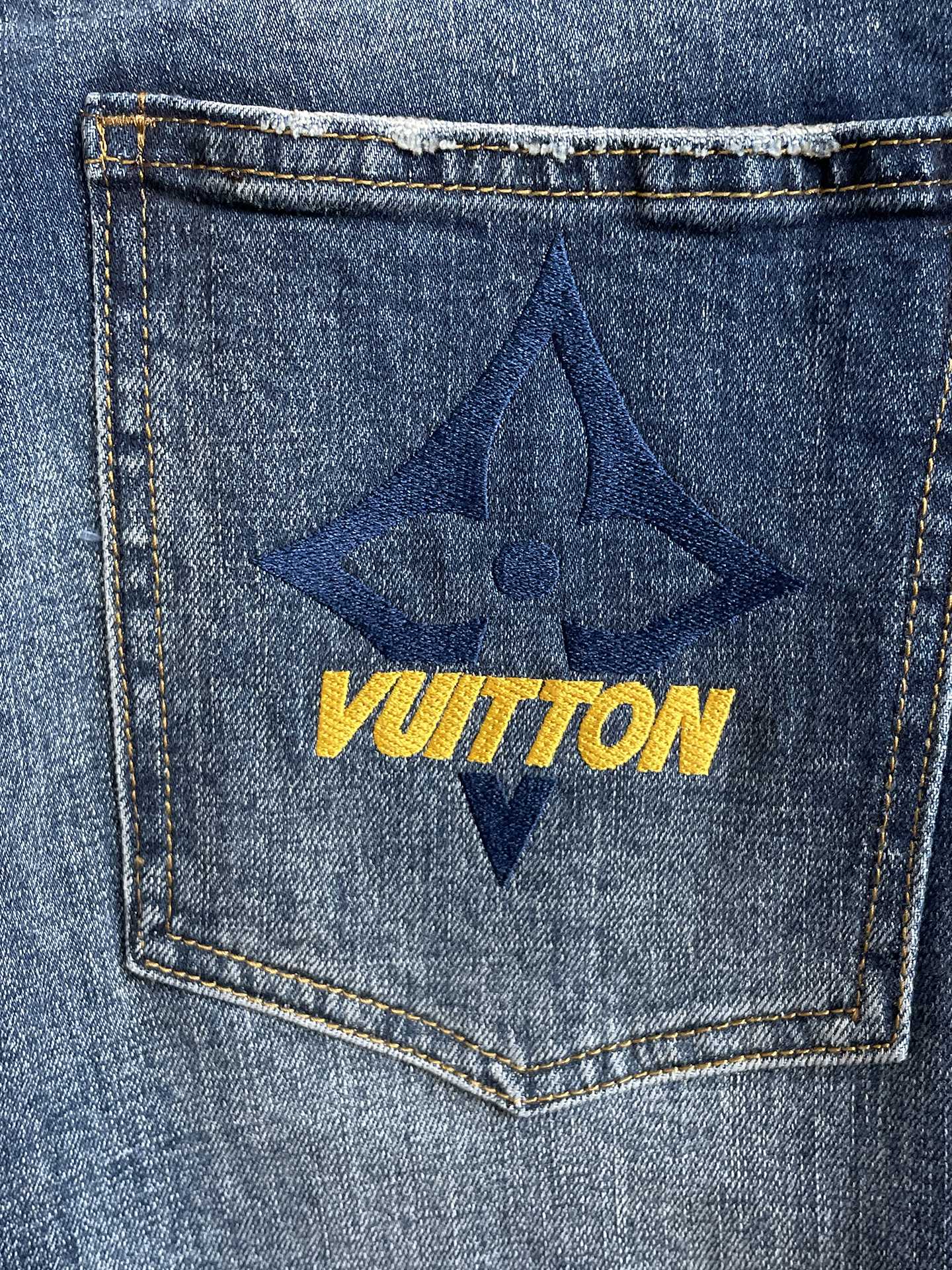 LV 65ss autumn-winter new high-end washed jeans. Original design, custom hardware logo, embroidery. Soft, resilient denim, comfortable fit. Trendy men's style. Sizes S-XL.