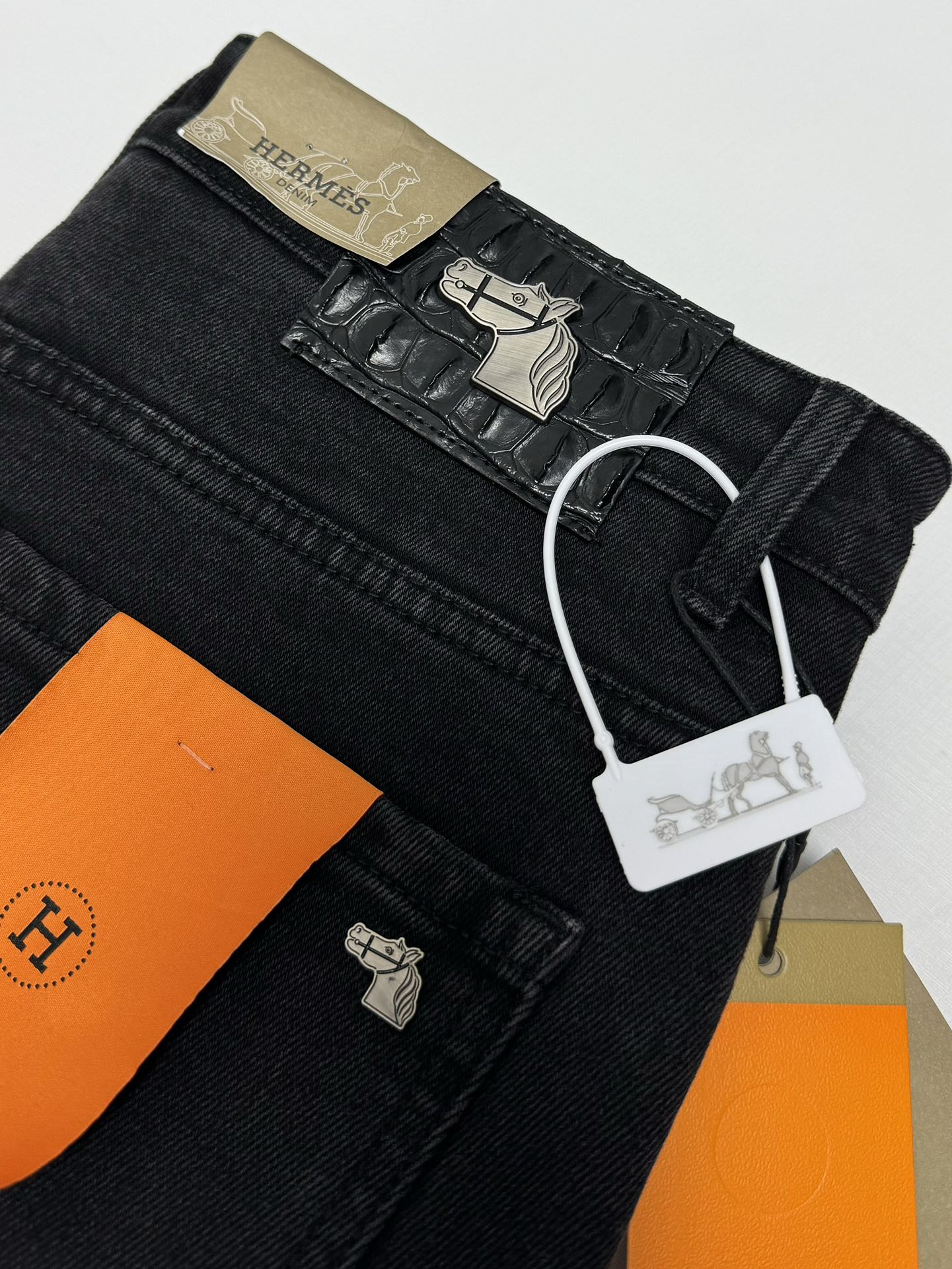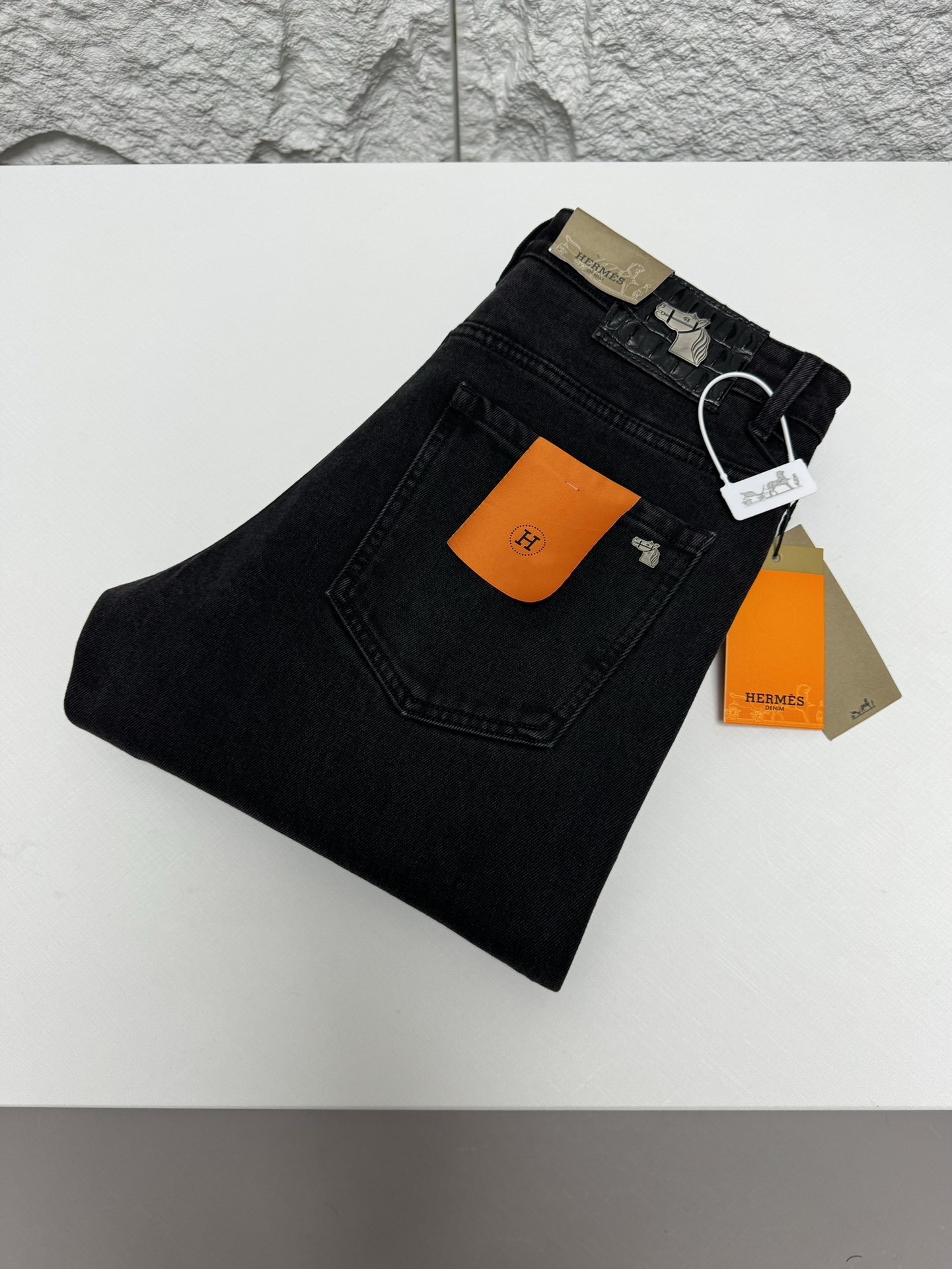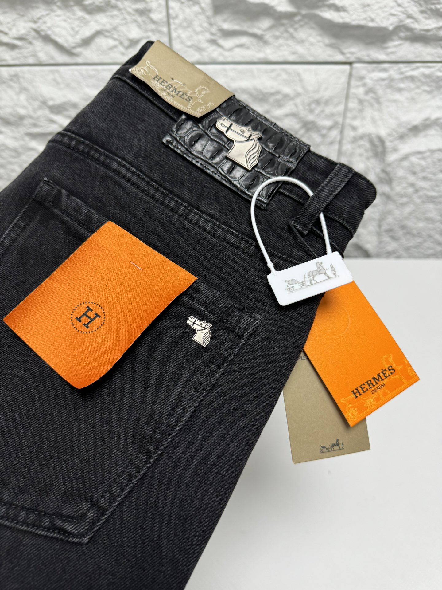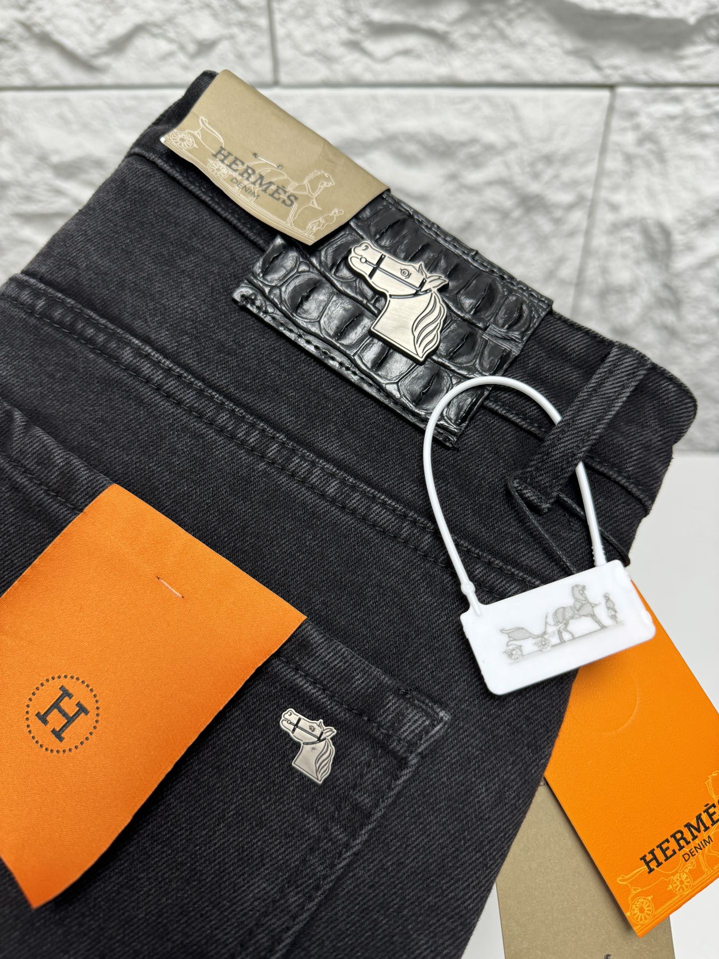 Home • Apparel • Jeans • Hermes 2025 autumn-winter men's casual jeans, high-end quality. Simple, stylish design with soft cotton fabric and custom logo waistband. Versatile and classic.