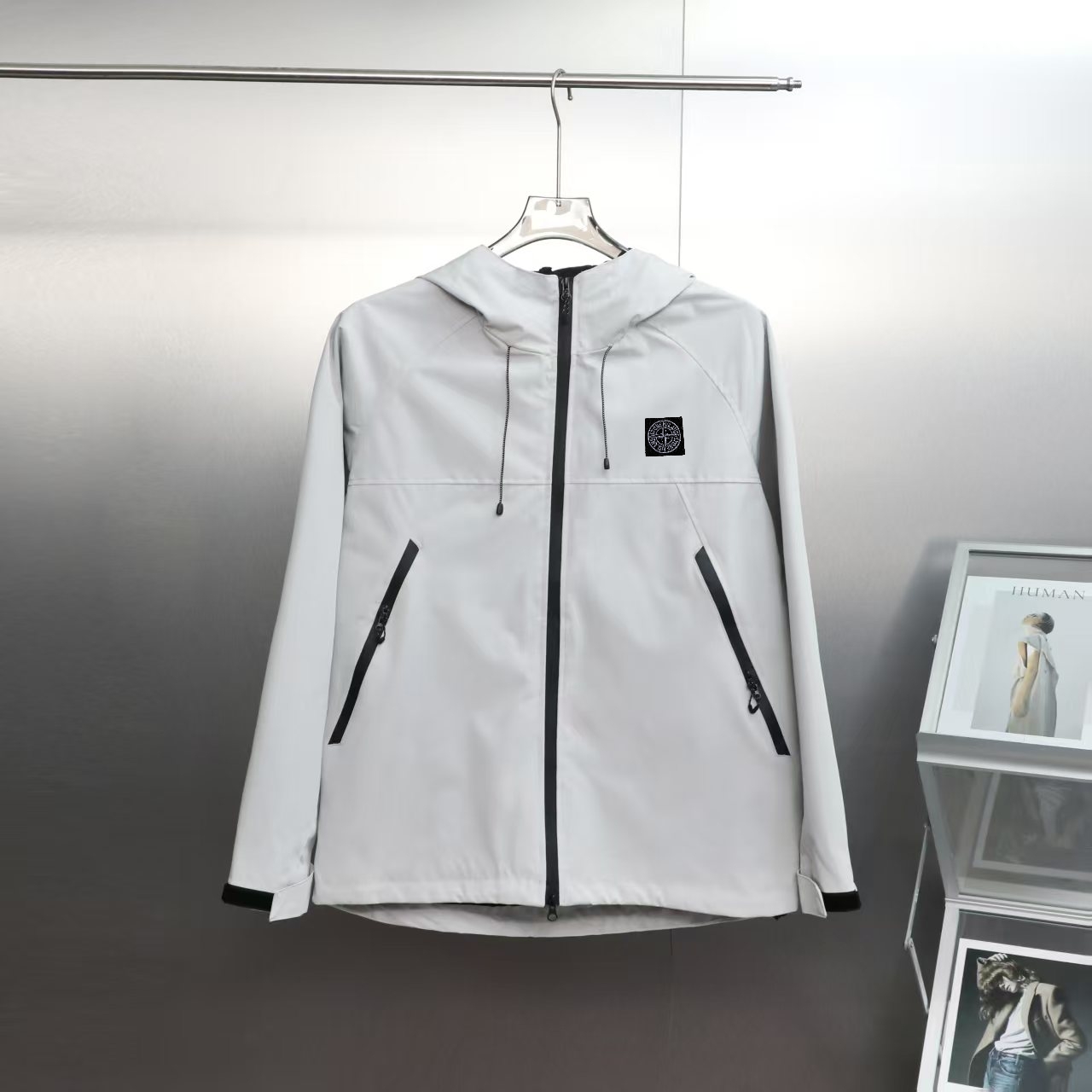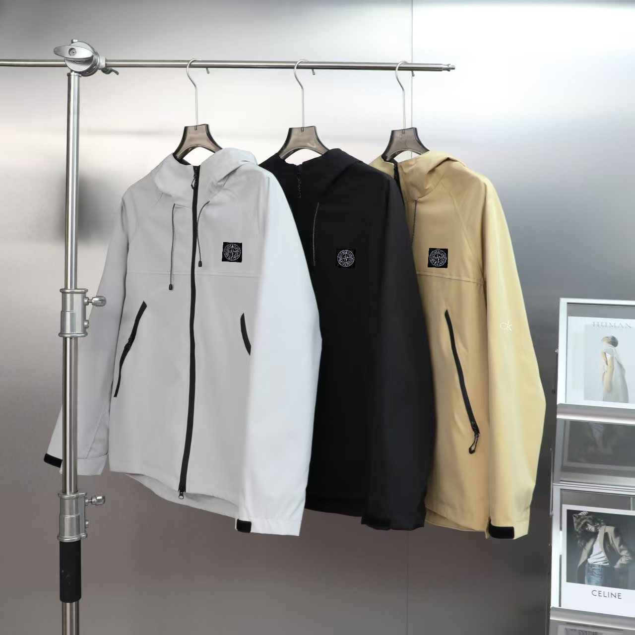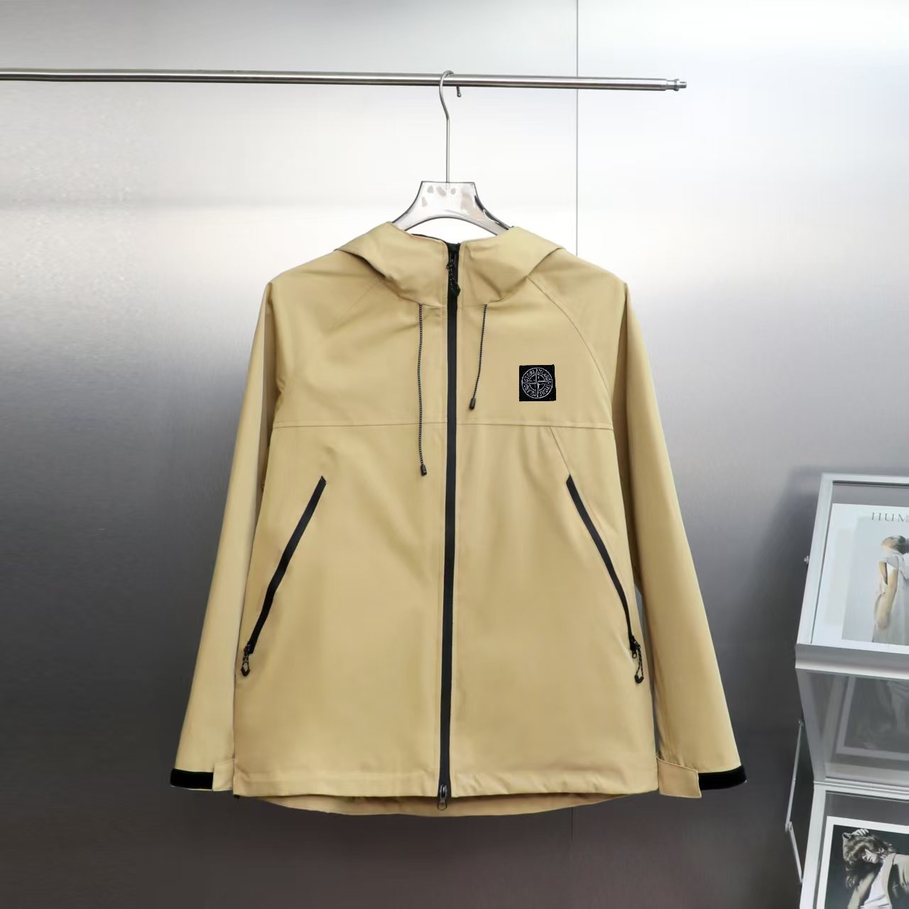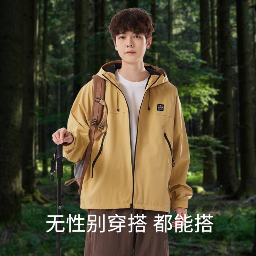 Stone Island high-end waterproof冲锋衣. 2025秋季新款. 防风防雨耐磨. 适合登山徒步. Gore-Tex面料. 颜色: 黑色, 砺石灰, 杏色. 尺码: S-3XL.