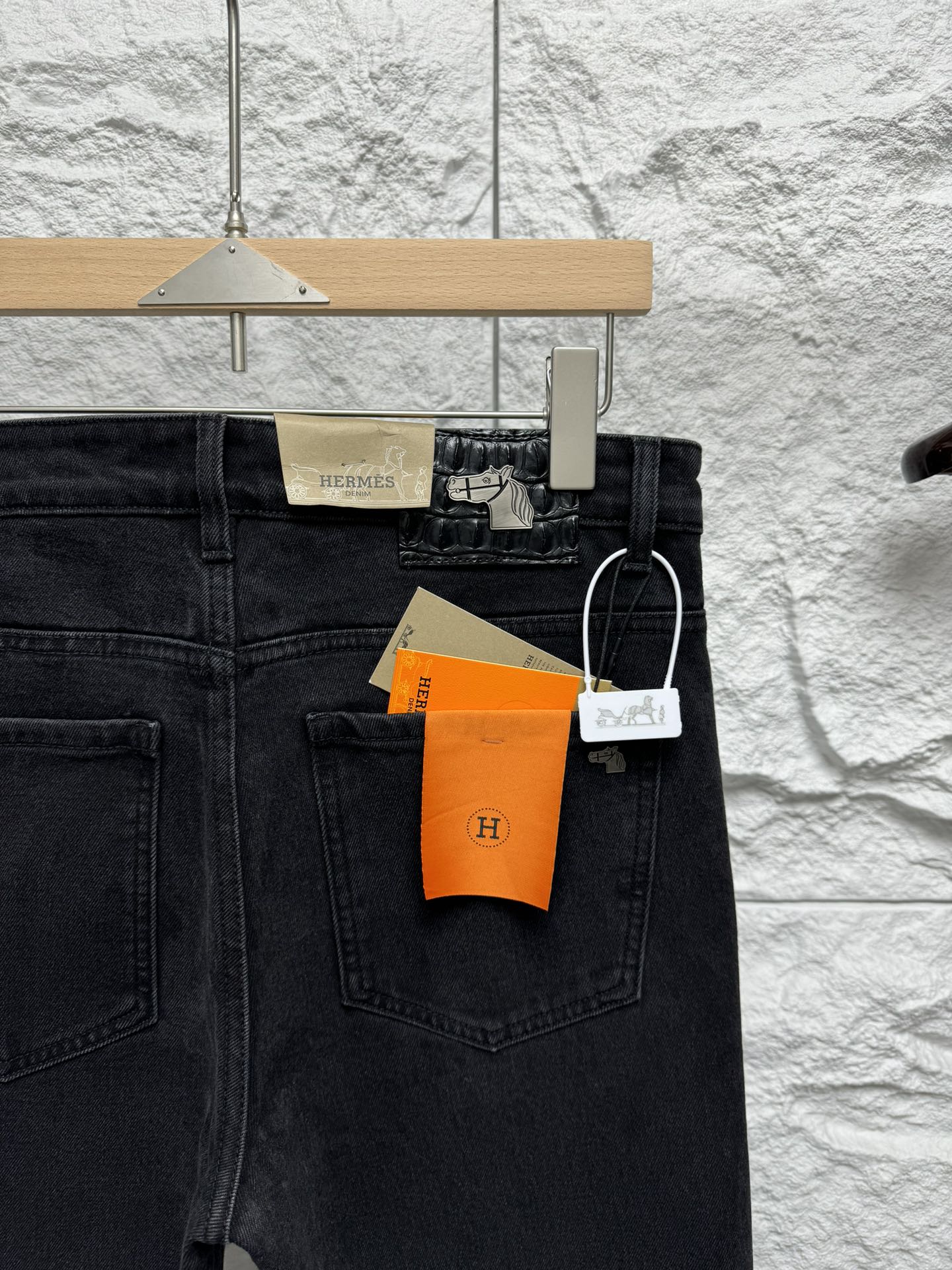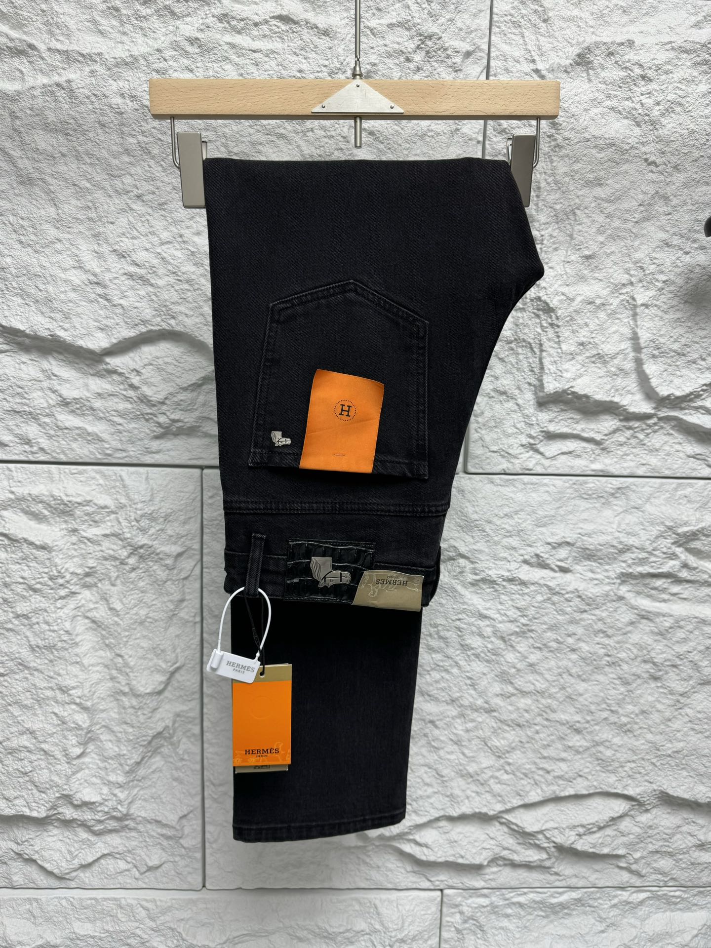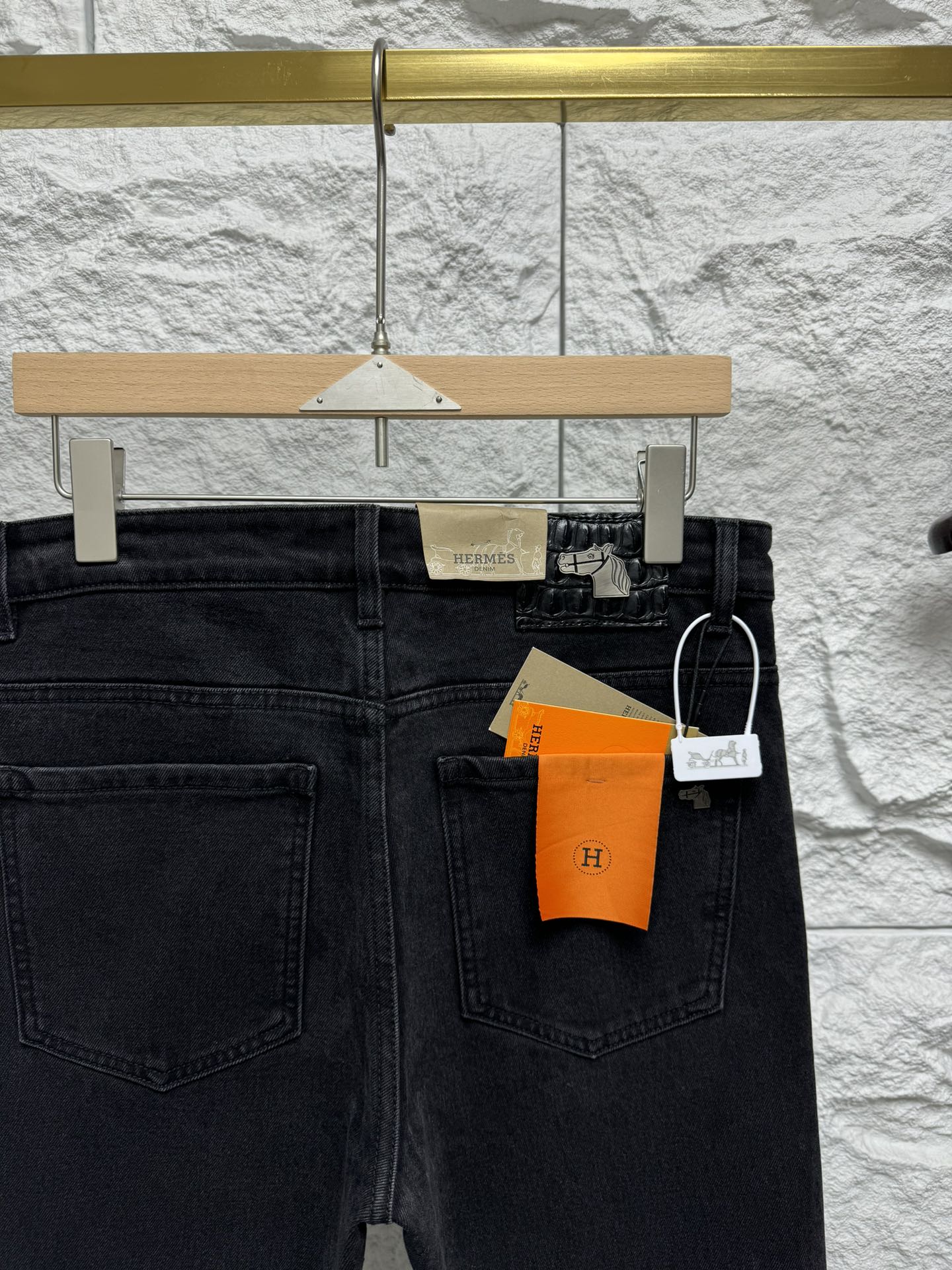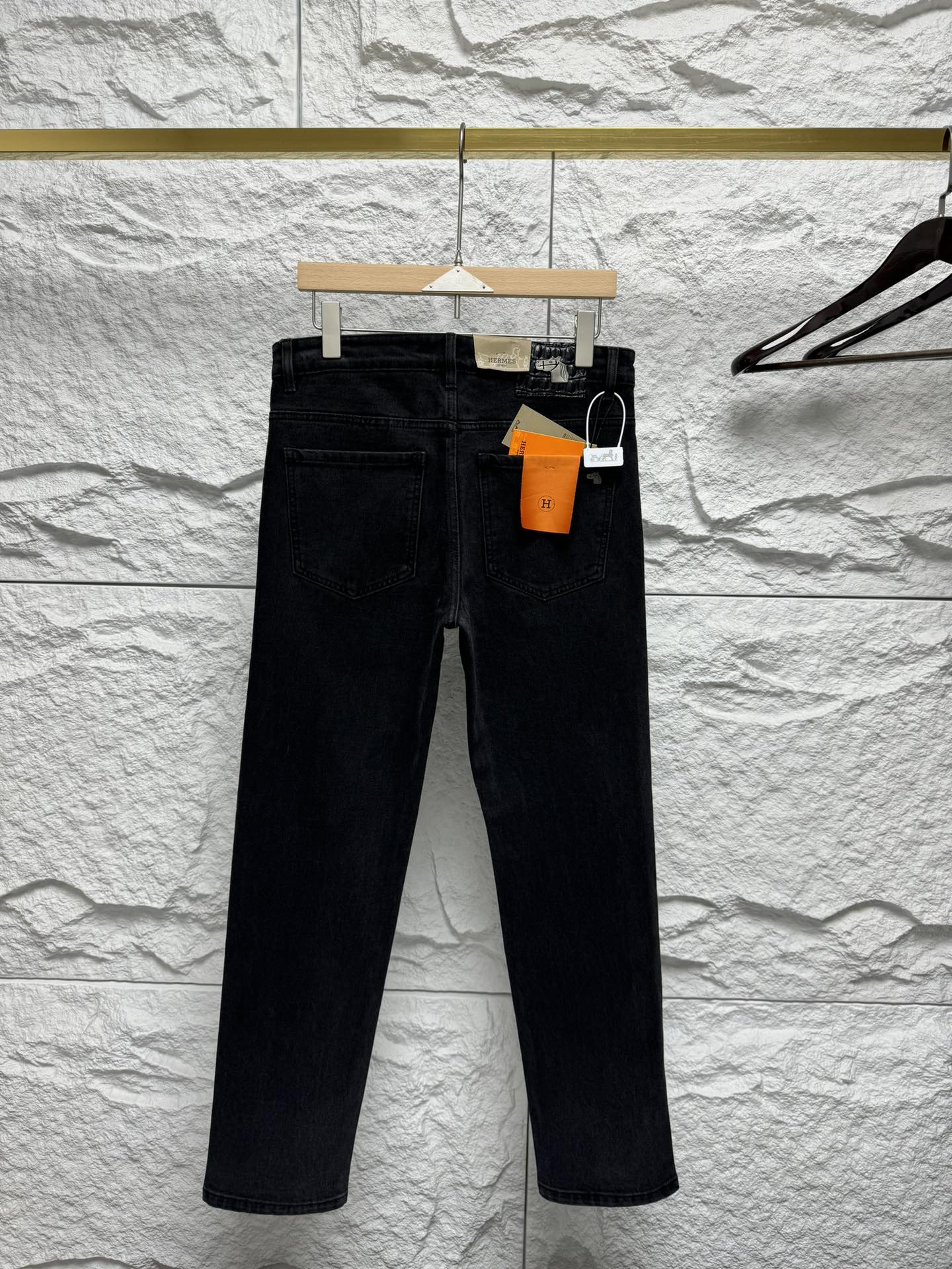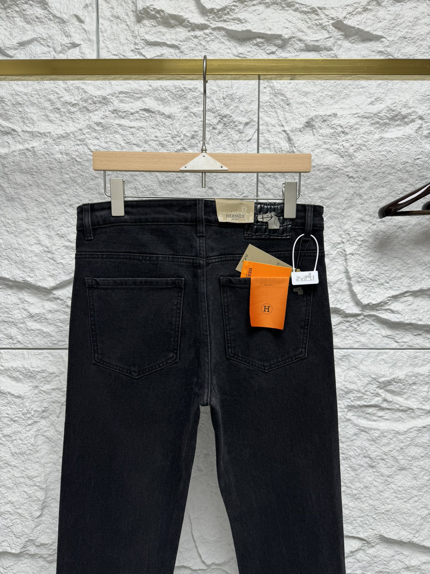Hermes 2025 autumn-winter men's casual jeans. High-quality cotton, soft skin-friendly fabric, excellent drape. Classic logo waistband, versatile and stylish design. Must-have for men's wardrobe.